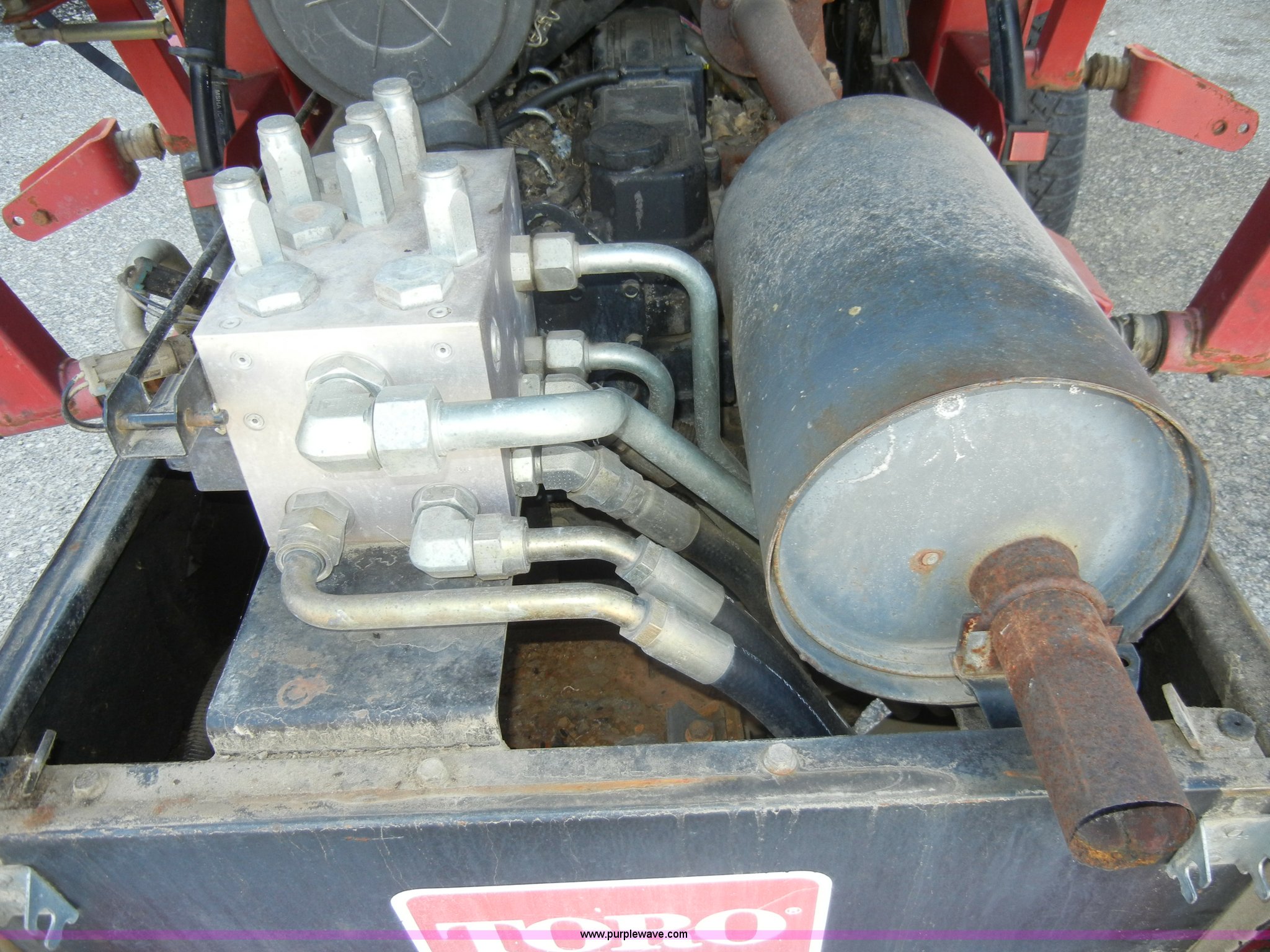 Purple Wave is selling a used Commercial Turf Mower in Kansas. This item is a Toro Grounds Master 580D mower with the following: 2,699 hours on meter, 164" overall cut, 92" front deck, 36" wings, Hydraulics, 31x3.50-15 tires, Most deck and wing tires off but present, Needs new injectors, Non-operational, Cosmetic damage to seat, Serial 90499
