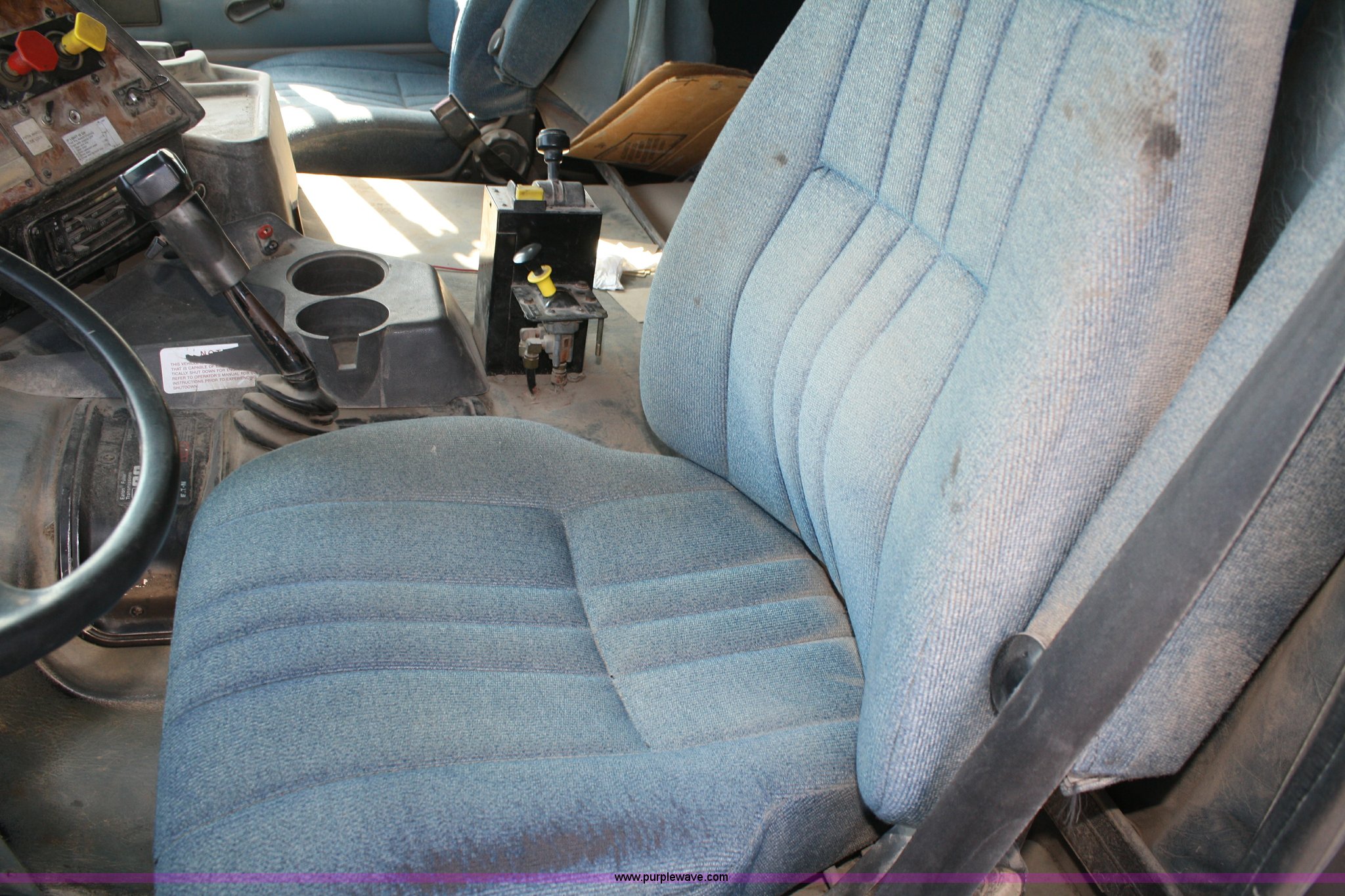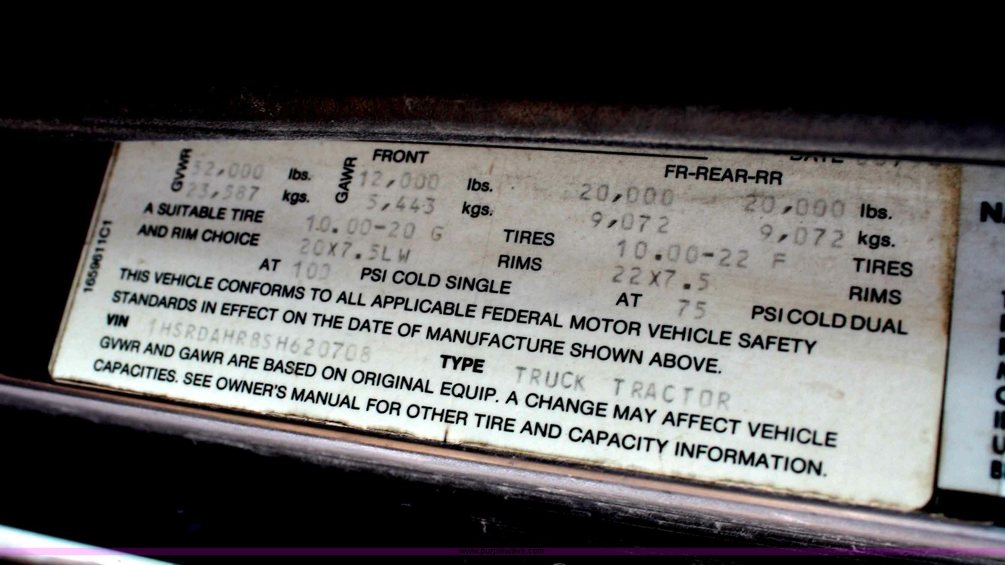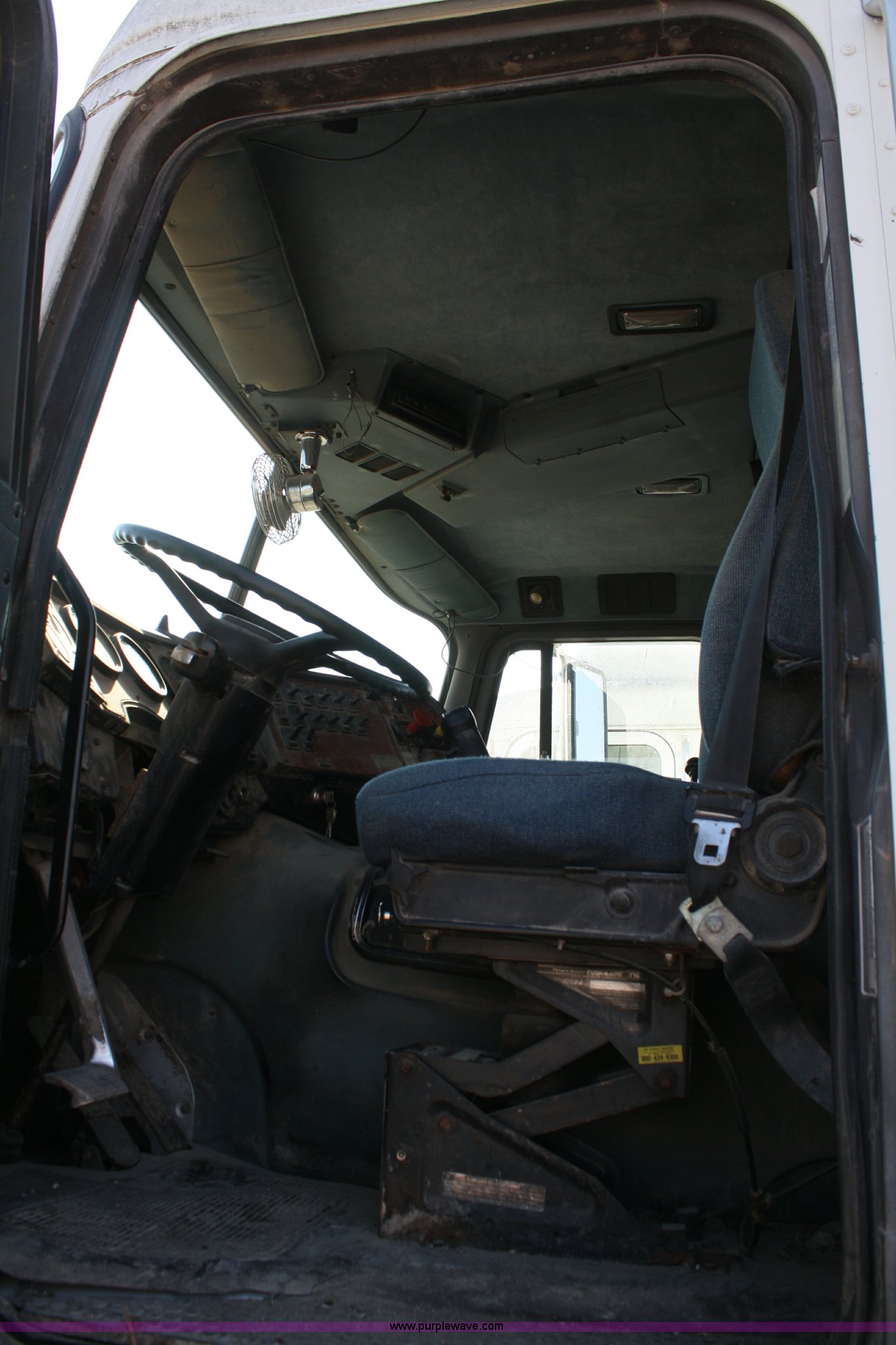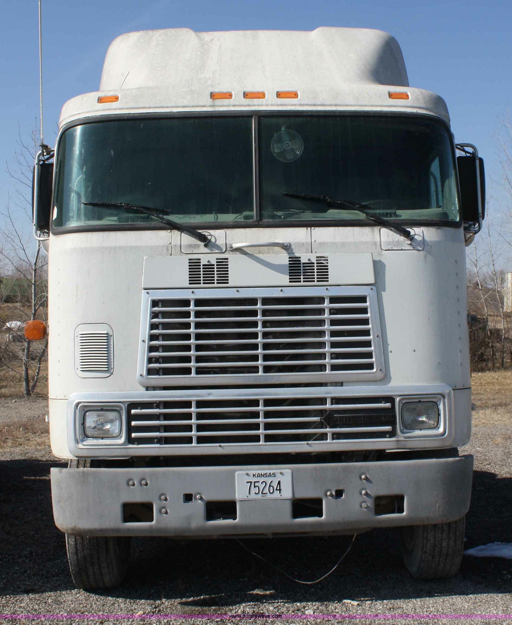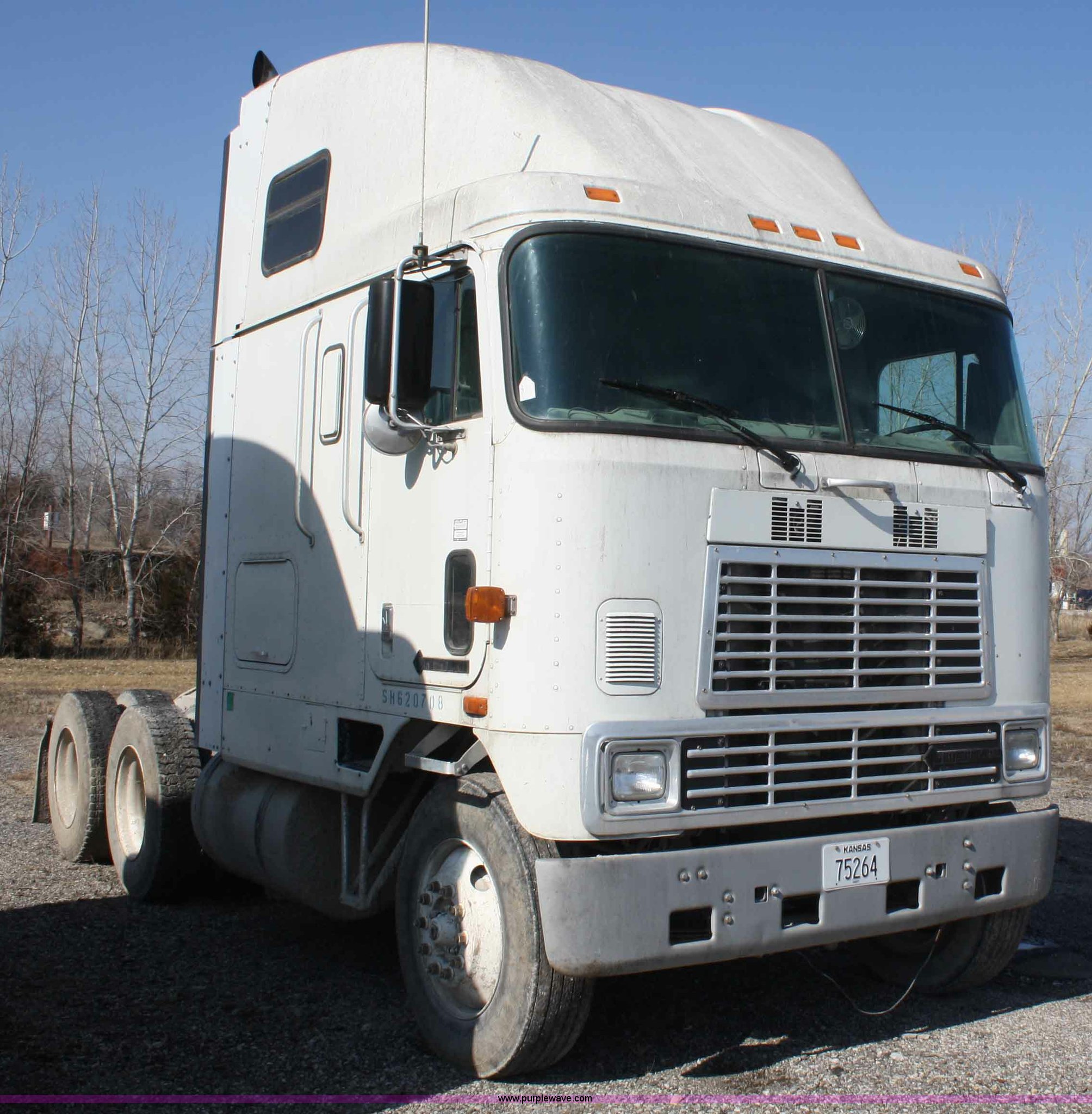 Purple Wave is selling a used Truck Tractor in Kansas. This item is a 1995 International 9600 semi truck with the following: 216,676 miles on odometer, Cummins M11 10.8L diesel engine, 330 HP, Nine speed manual transmission, Twin screw, Heater, Cruise, AM/FM/Cassette, Passenger daylight door, Air ride seat, Heated mirrors, 55" sleeper, Storage, Bumper, Dual 100 gallon fuel tanks, PTO, Air suspension, Air brakes, 295/75R22.5 tires, GVWR 52,000 lbs, FAWR 12,000 lbs, IAWR 20,000 lbs, RAWR 20,000 lbs, 166" wheelbase, Cracked windshield, Some suspension airbags need replaced