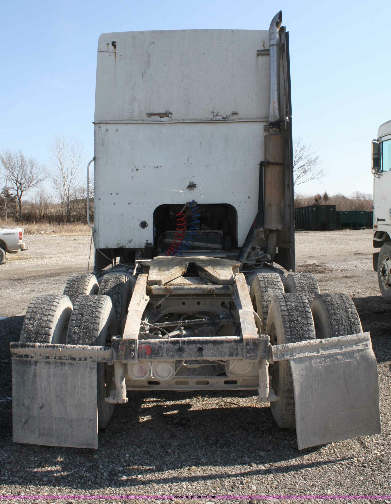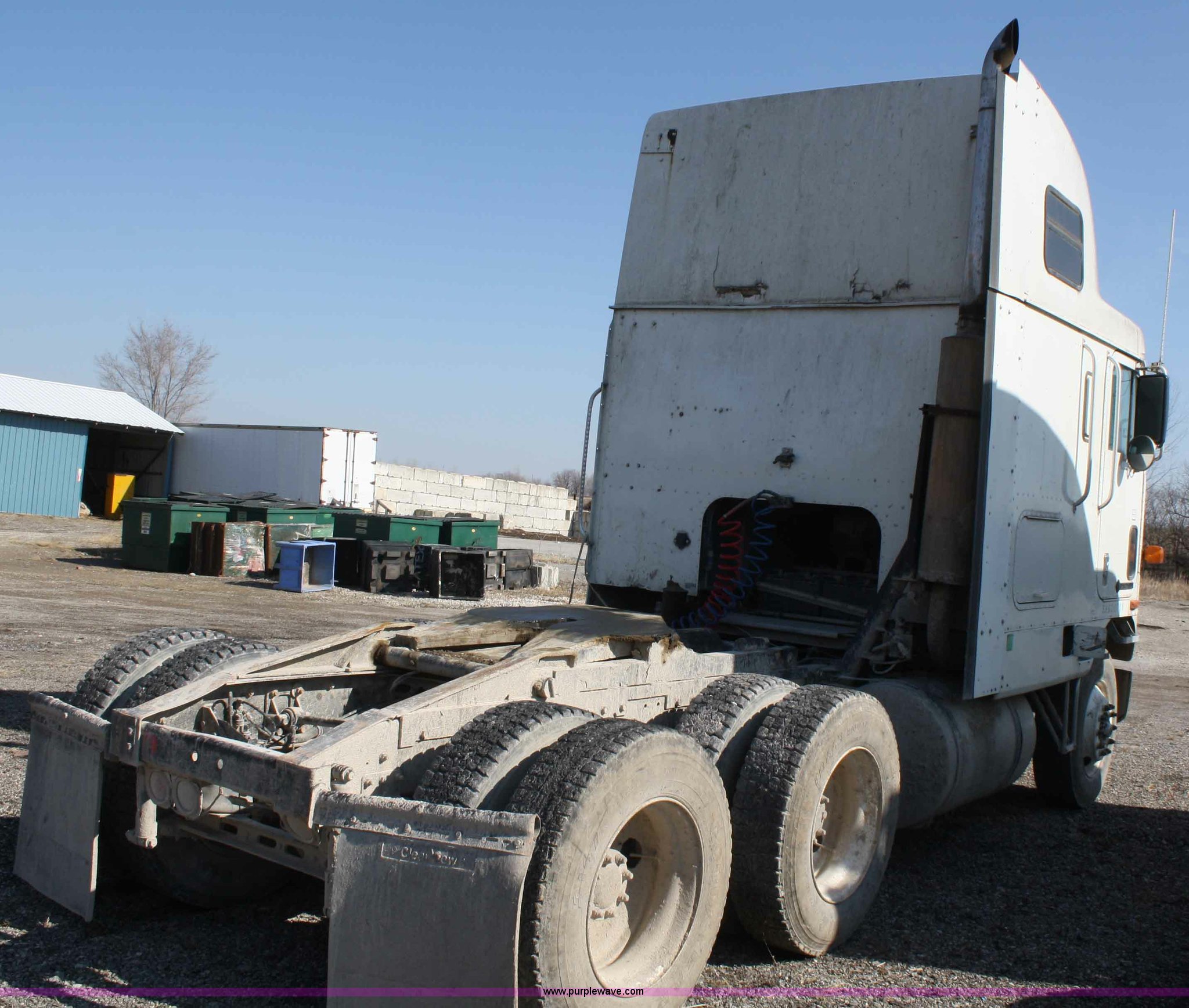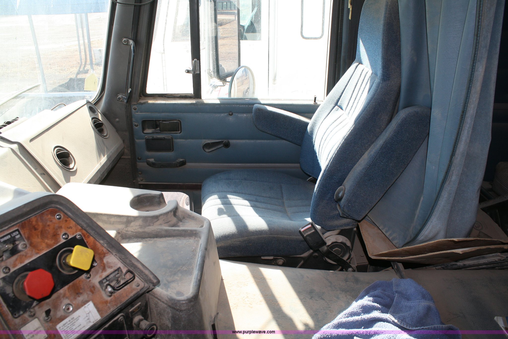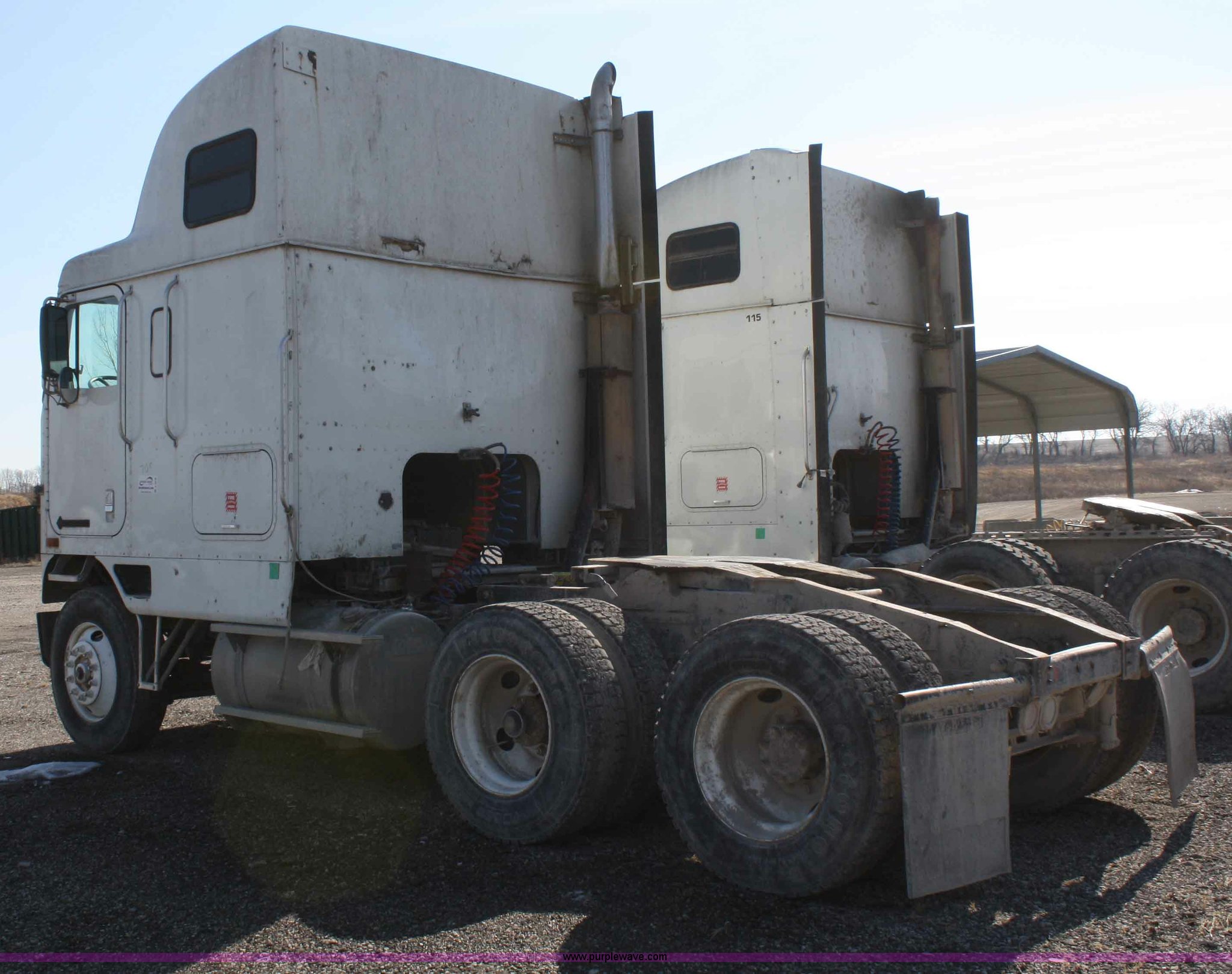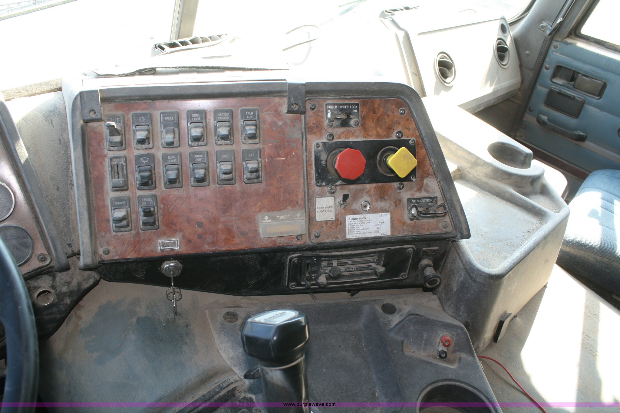 Purple Wave is selling a used Truck Tractor in Kansas. This item is a 1995 International 9600 semi truck with the following: 216,676 miles on odometer, Cummins M11 10.8L diesel engine, 330 HP, Nine speed manual transmission, Twin screw, Heater, Cruise, AM/FM/Cassette, Passenger daylight door, Air ride seat, Heated mirrors, 55" sleeper, Storage, Bumper, Dual 100 gallon fuel tanks, PTO, Air suspension, Air brakes, 295/75R22.5 tires, GVWR 52,000 lbs, FAWR 12,000 lbs, IAWR 20,000 lbs, RAWR 20,000 lbs, 166" wheelbase, Cracked windshield, Some suspension airbags need replaced