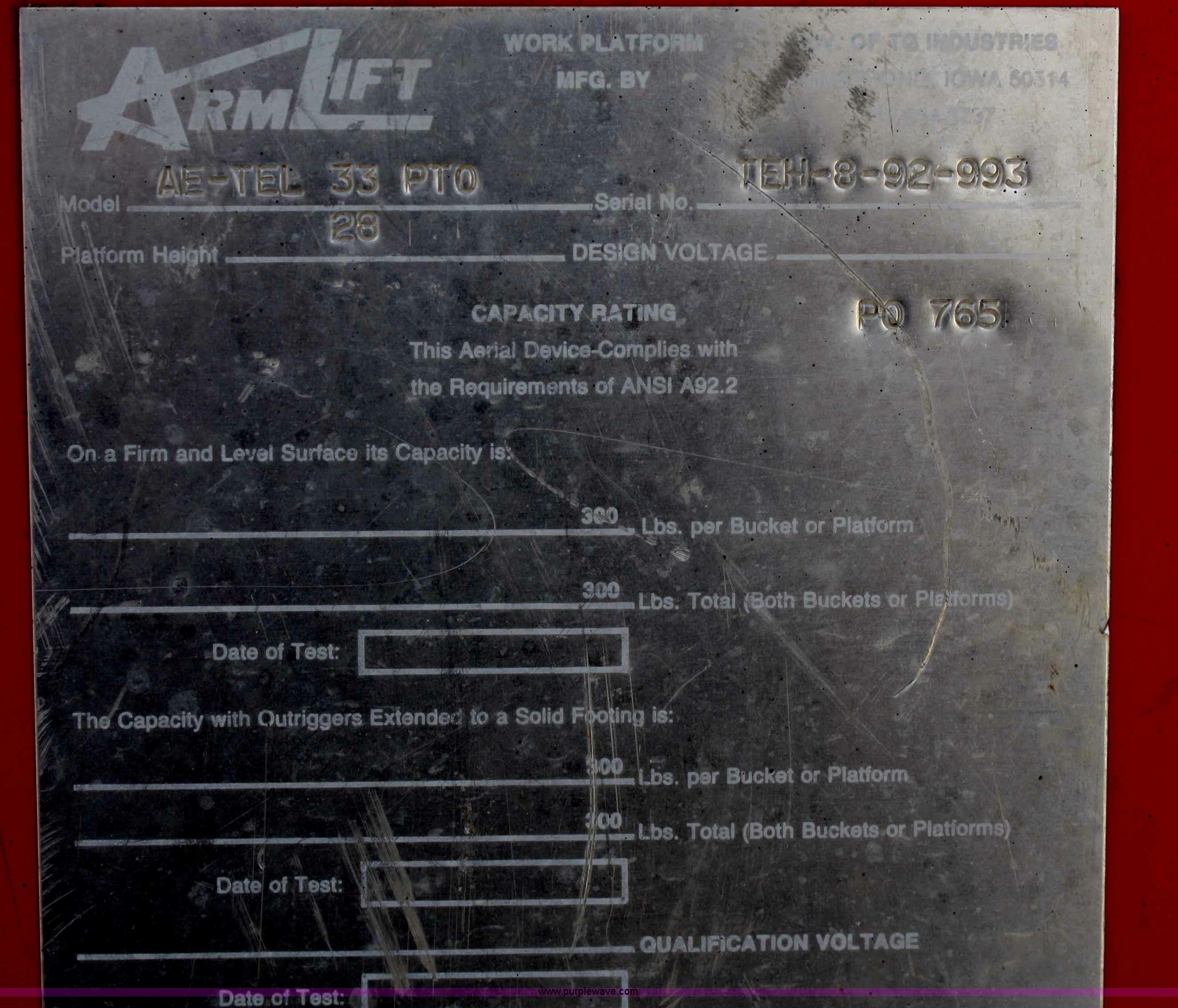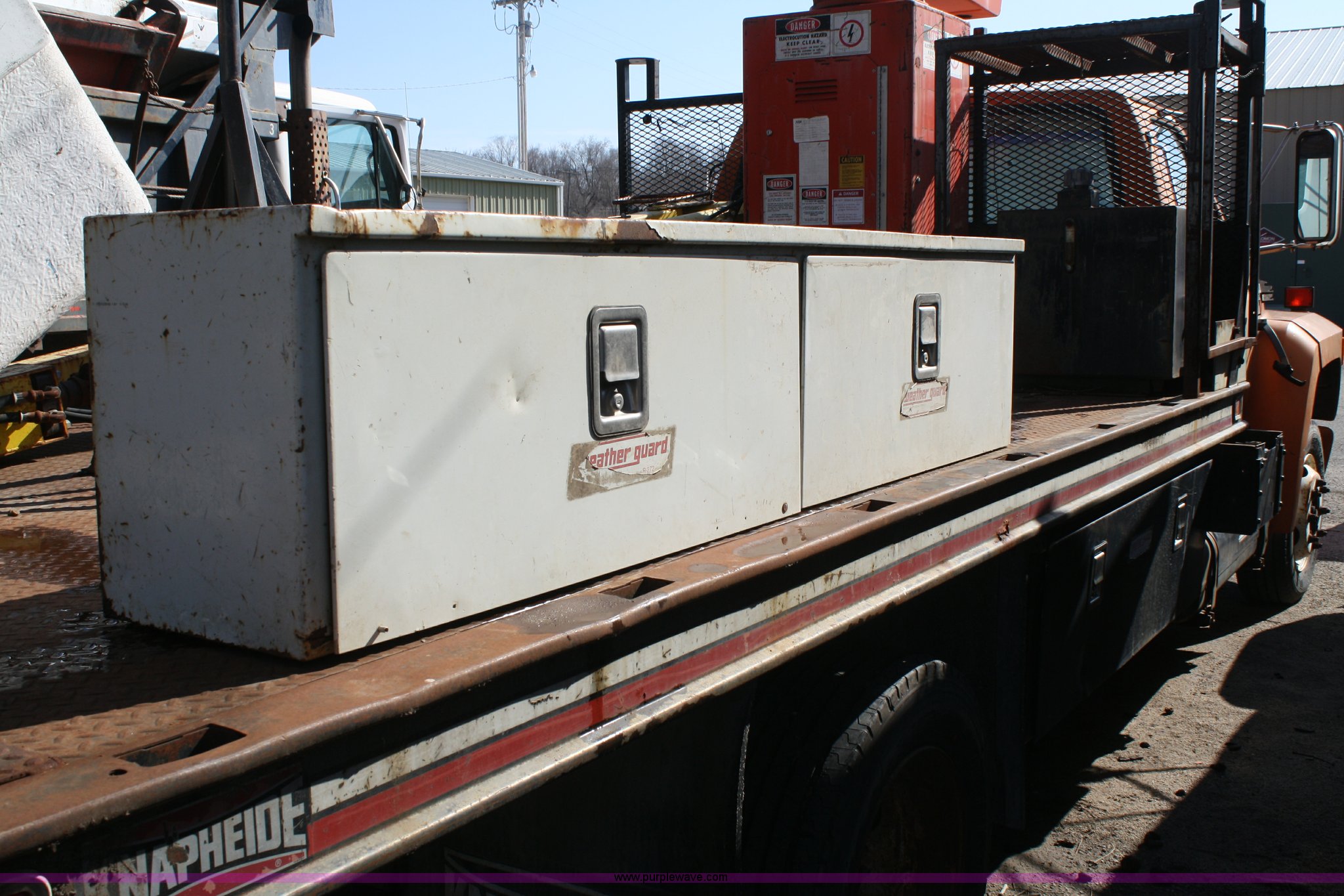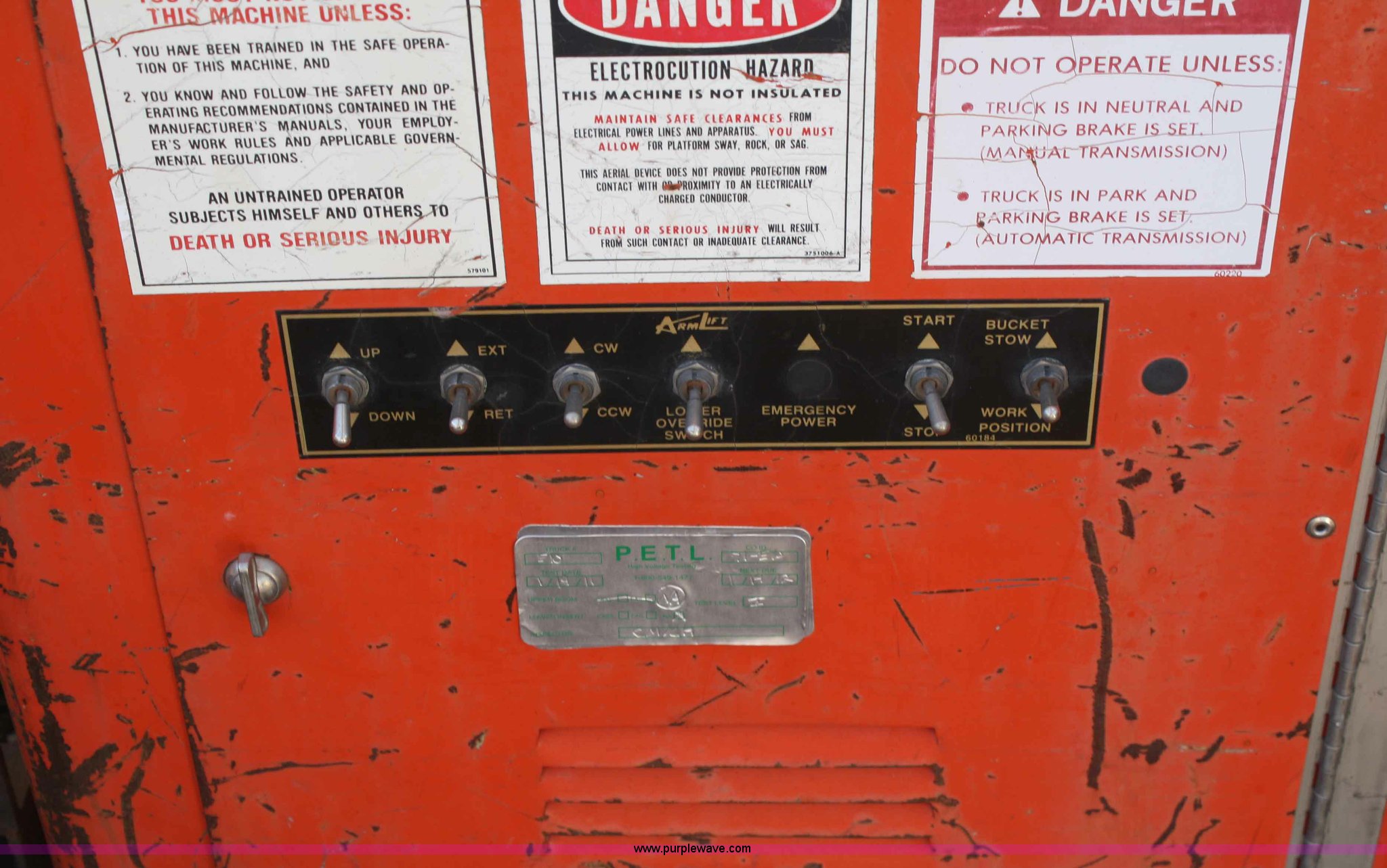Purple Wave is selling a used Bucket Truck in Kansas. This item is a 1993 Ford F600 boom truck with the following: 77,279 miles on odometer, Not actual mileage, 8,673 hours on meter, Ford 6.6L six cylinder diesel engine, 165 HP, Automatic transmission, AM/FM, Knapheide 14' bed, Arm Lift bucket boom, Model AE-TEL-33 PTO, 28' platform height, 10" digger attachment, 50 gallon fuel tank, (4) under bed toolboxes, 245/70R19.5 tires, GVWR 21,000 lbs