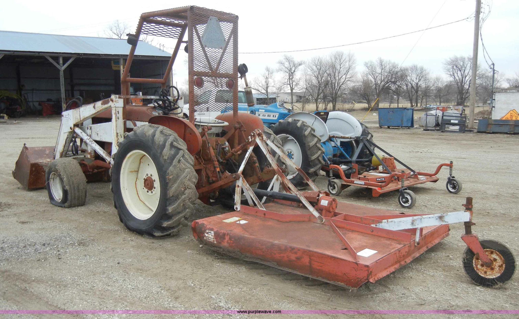Purple Wave is selling a used Tractor in Kansas. This item is a International 600 tractor with the following: 1,364 hours on meter, Four cylinder gas engine, BMB S-6 finishing mower, 6'W, Three point, Serial HF-4182, Loader with 67"W bucket, Tow hooks on bucket, Three point, Draw bar, 540 PTO, Front and rear hydraulic remotes, 62" wheelbase, 12.5-15 front tires, flat, 14.9-28 rear tires, flat, Cosmetic damage, Hydraulic problems, Serial 375581R1