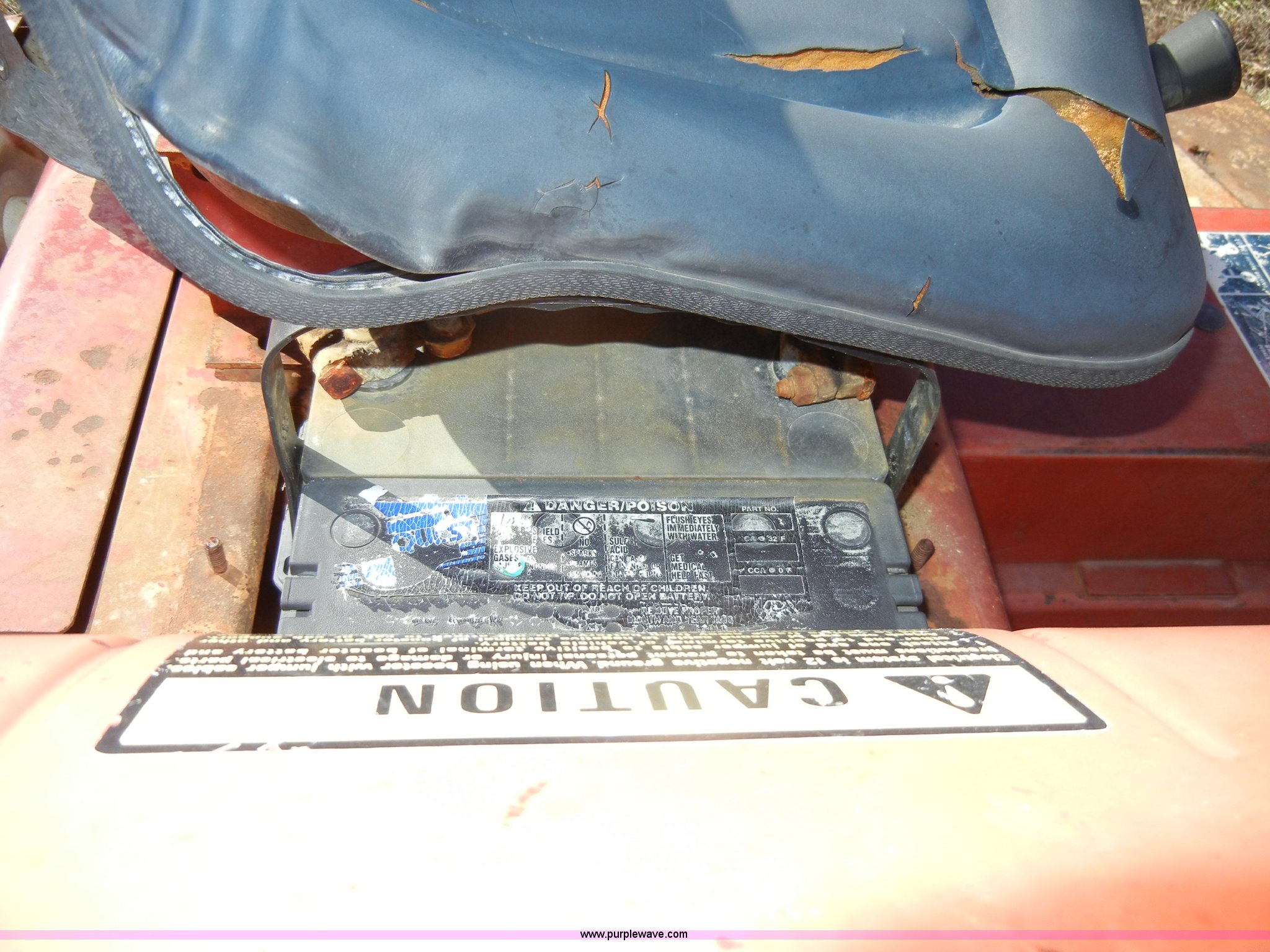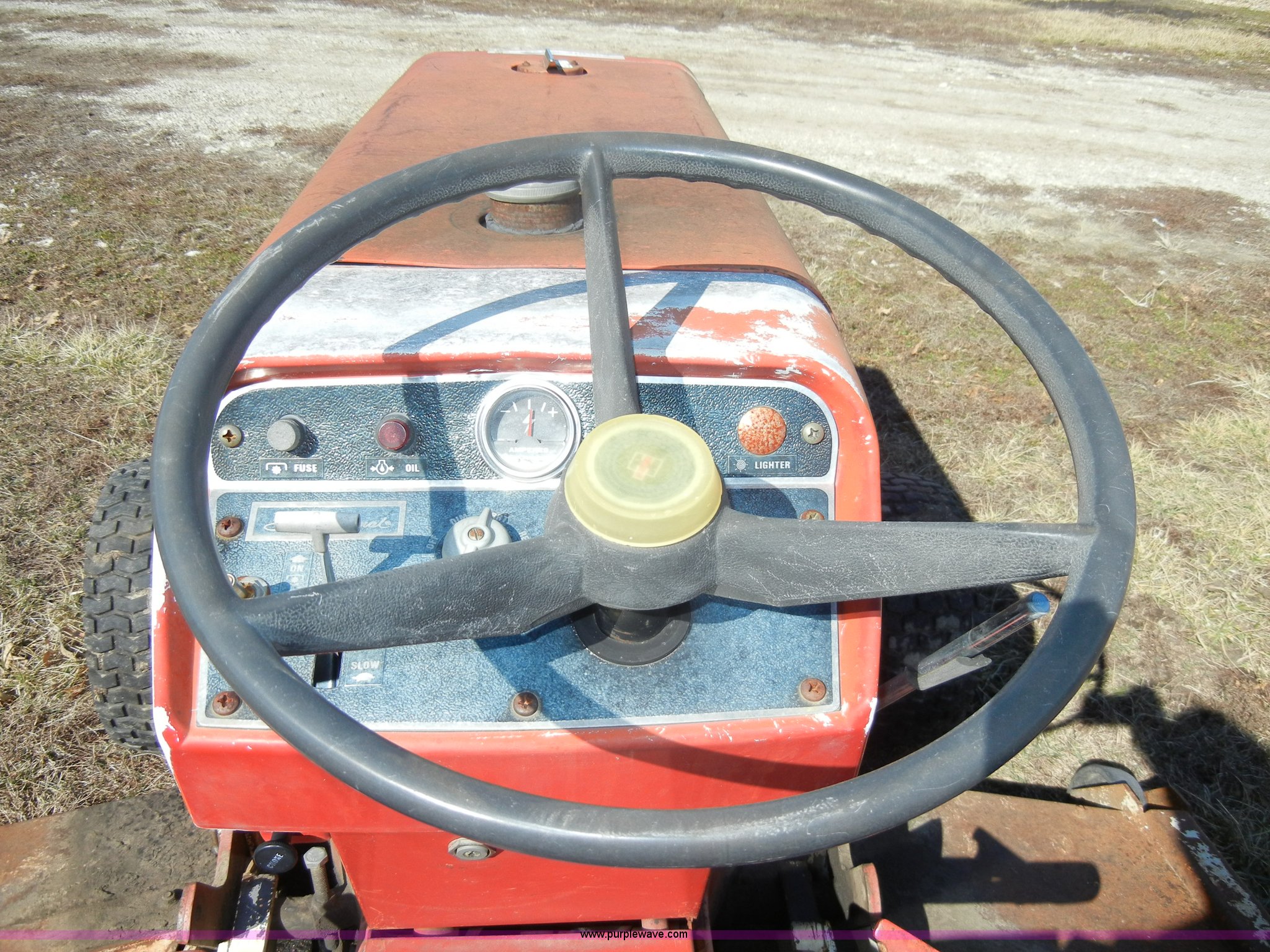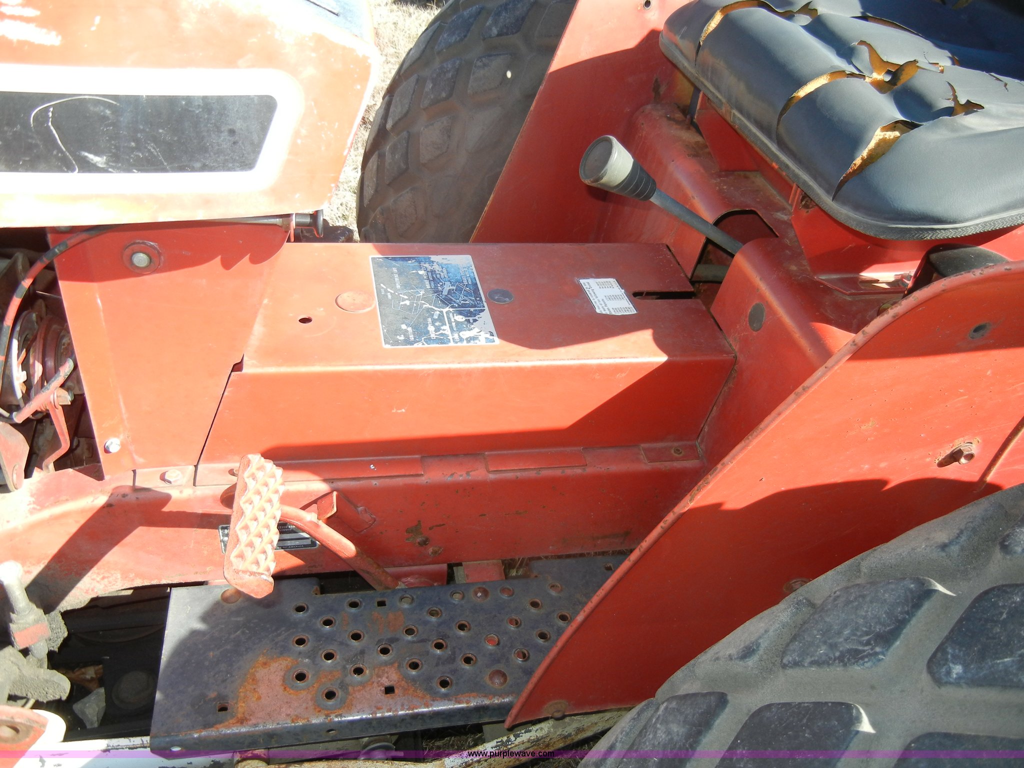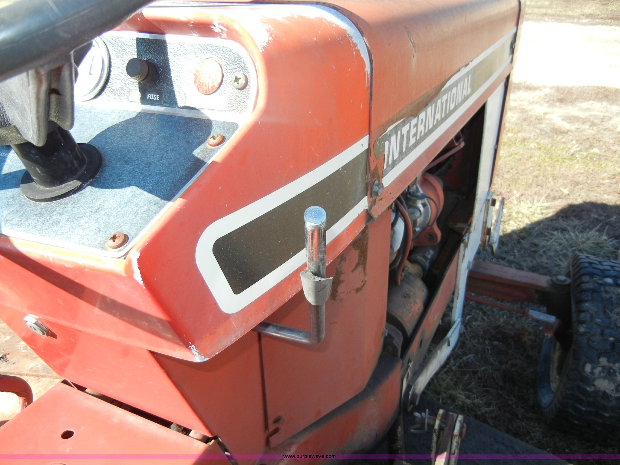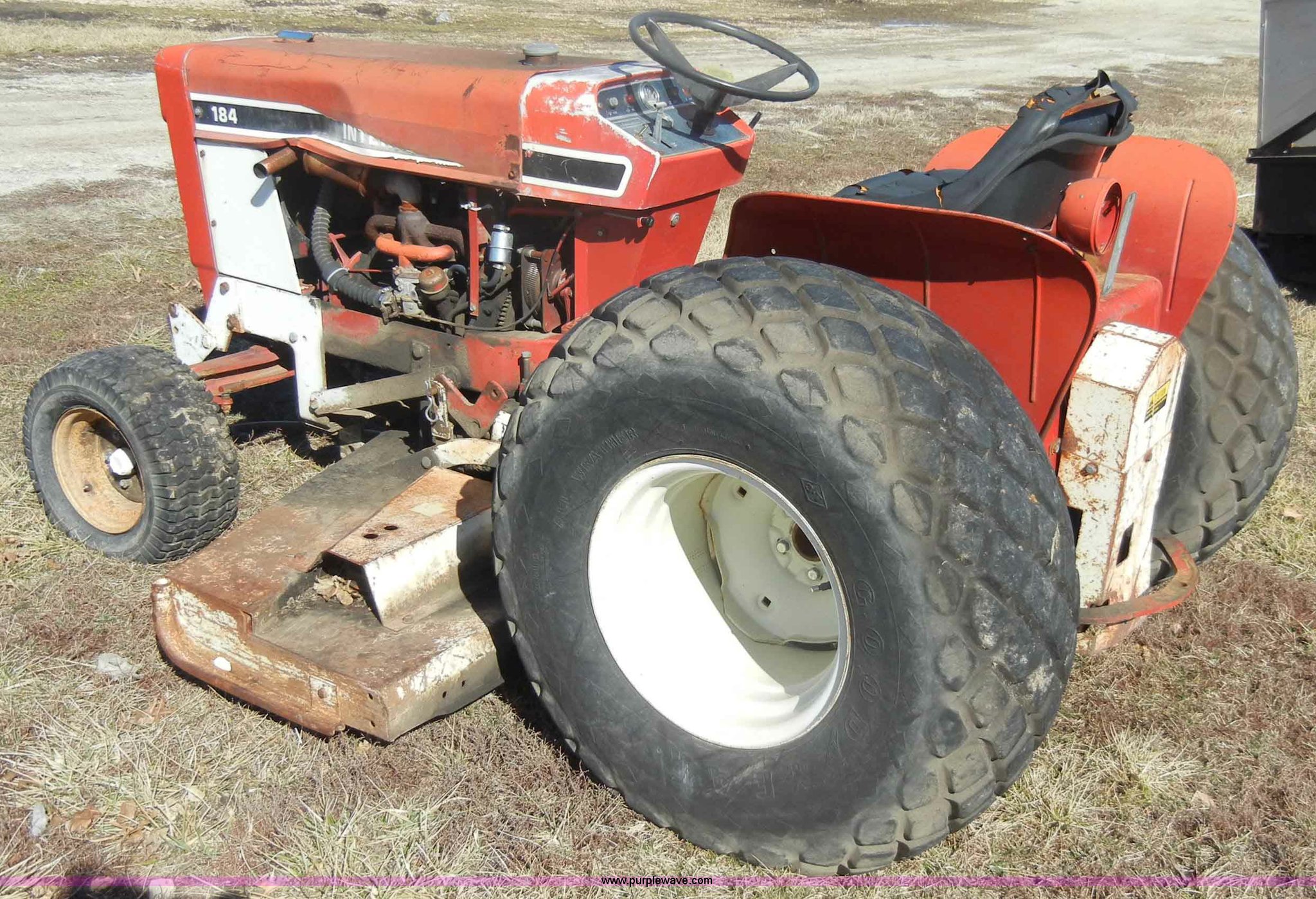 Purple Wave is selling a used Tractor in Kansas. This item is a International 184 tractor with the following: 6' mower, Gas engine, 2,050 RPM PTO, 4' wheelbase, 20x8.00-10 front tires, flat, 13.6-16.1 rear tires, Damaged seat, Lights non-operational, Cosmetic damage, No keys, Serial 2000116U049036