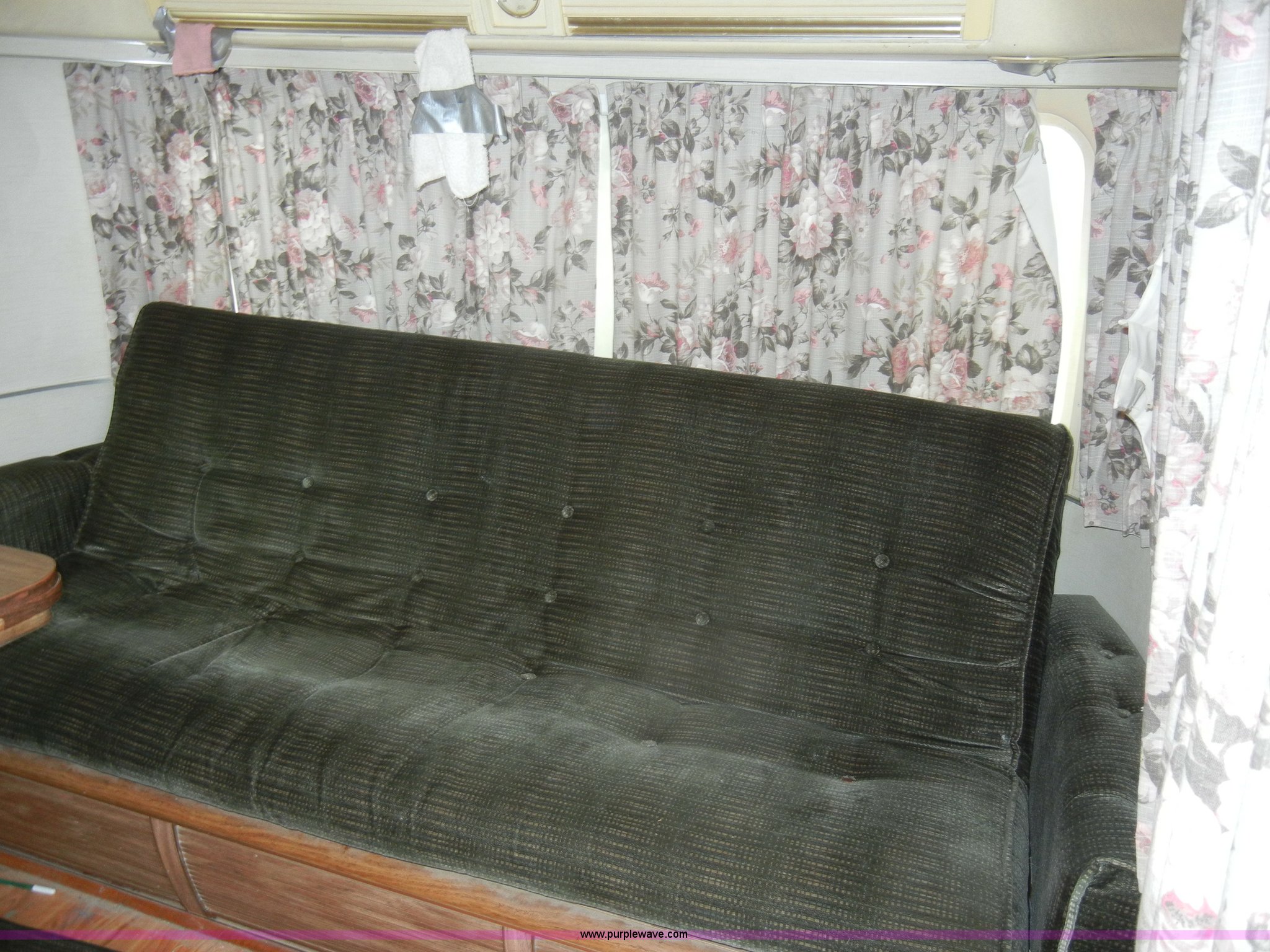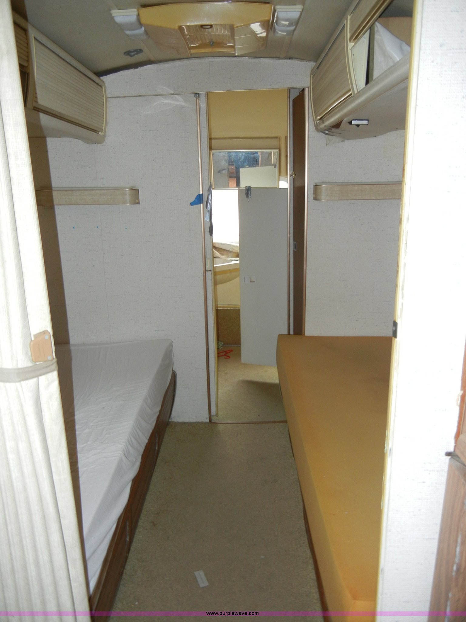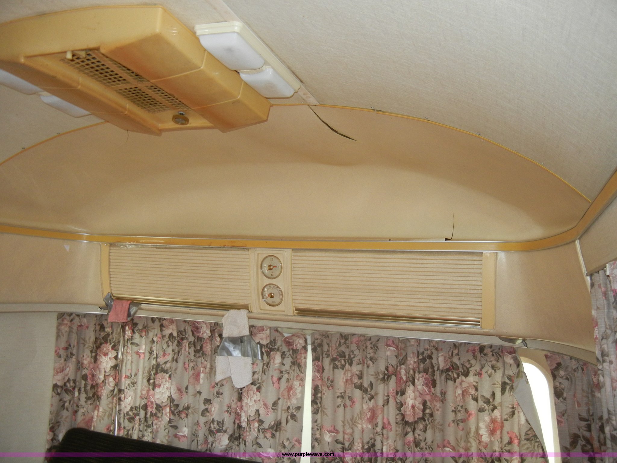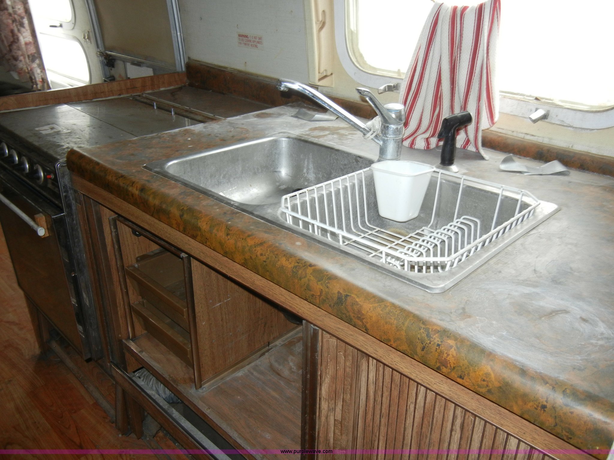 Purple Wave is selling a used RV in Kansas. This item is a 1976 Airstream Sovereign Land Yacht 27' travel trailer with the following: Dual axle, GVWR 7,100 lbs, Carpet and laminate flooring, Fold out couch/bed, Fold up table, Stove, sink, fridge/freezer, Carrier Air V unit, (2) single foam mattresses, Shower, sink, toilet, storage, Hot water heater, Portable water tank, (2) LP bottles, Top and bottom storage compartments, Keys for door and outside compartments, Break-away cable, Jack, lights, chains with out hooks, 2 5/16" ball hitch, 225/75R15 tires, Interior/exterior cosmetic damage, No battery
