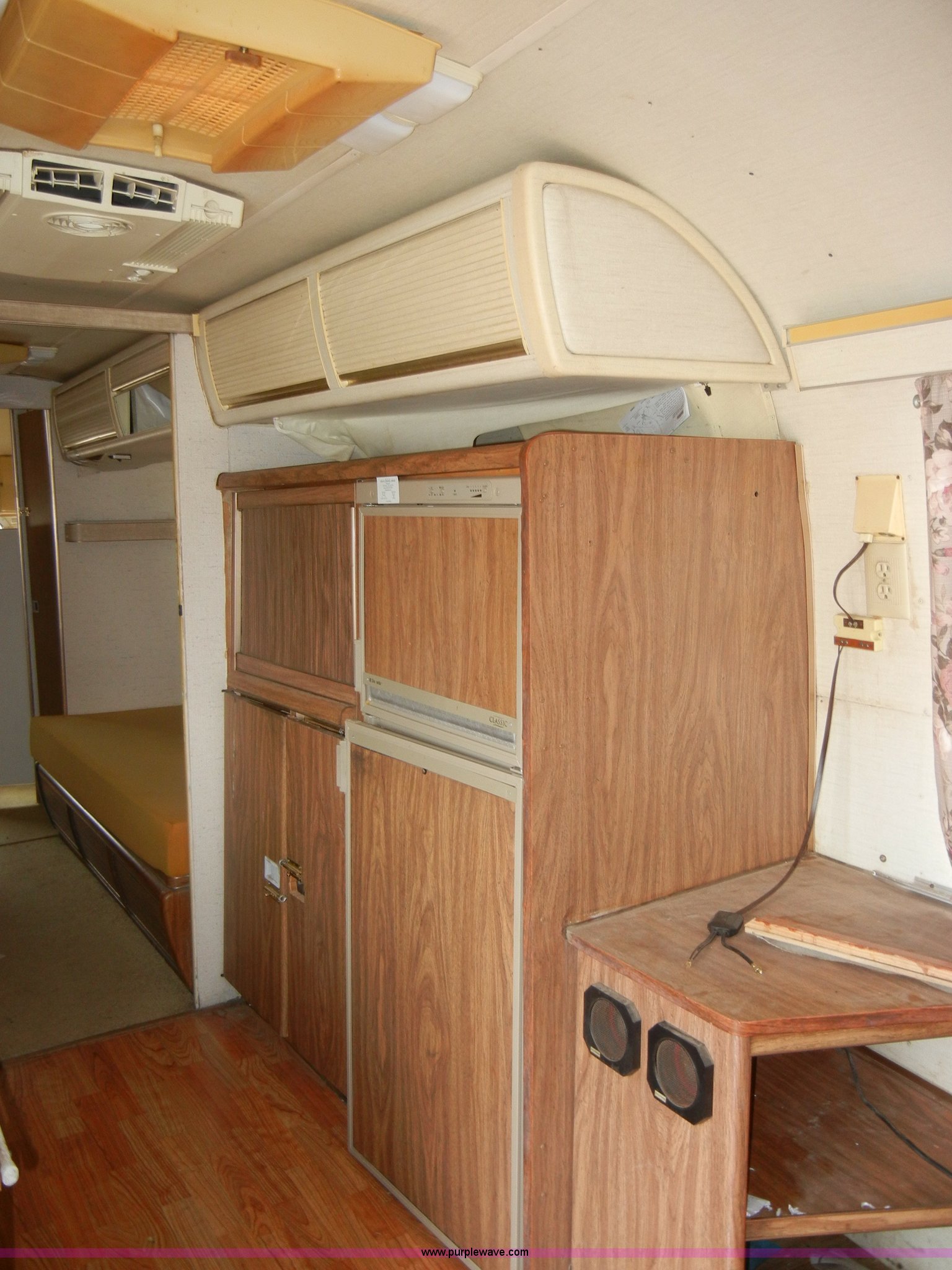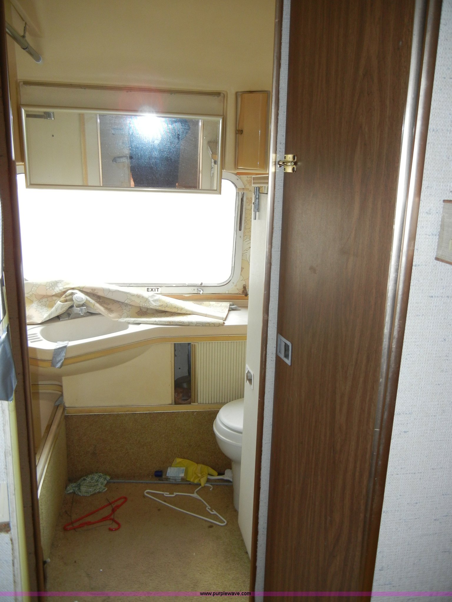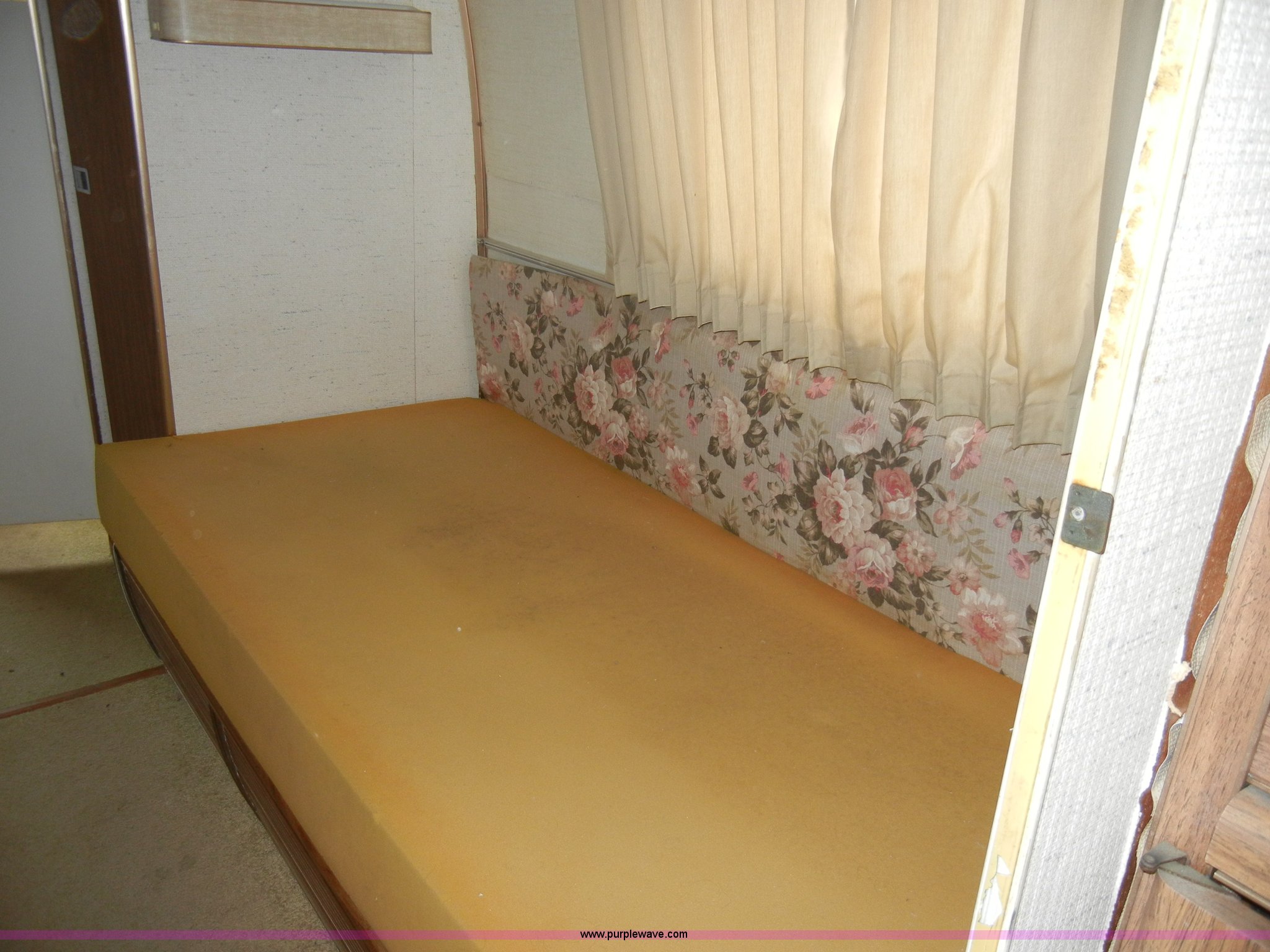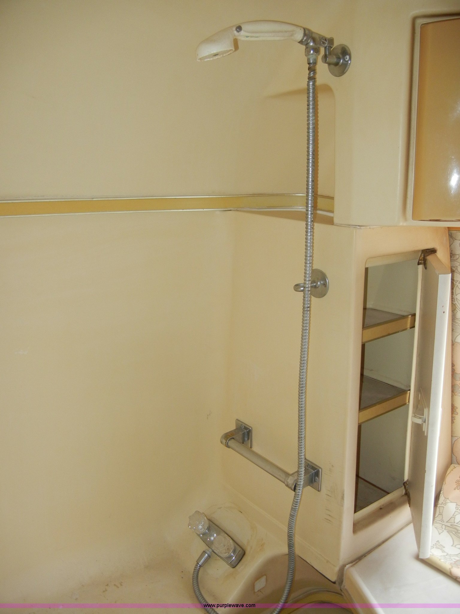 Purple Wave is selling a used RV in Kansas. This item is a 1976 Airstream Sovereign Land Yacht 27' travel trailer with the following: Dual axle, GVWR 7,100 lbs, Carpet and laminate flooring, Fold out couch/bed, Fold up table, Stove, sink, fridge/freezer, Carrier Air V unit, (2) single foam mattresses, Shower, sink, toilet, storage, Hot water heater, Portable water tank, (2) LP bottles, Top and bottom storage compartments, Keys for door and outside compartments, Break-away cable, Jack, lights, chains with out hooks, 2 5/16" ball hitch, 225/75R15 tires, Interior/exterior cosmetic damage, No battery
