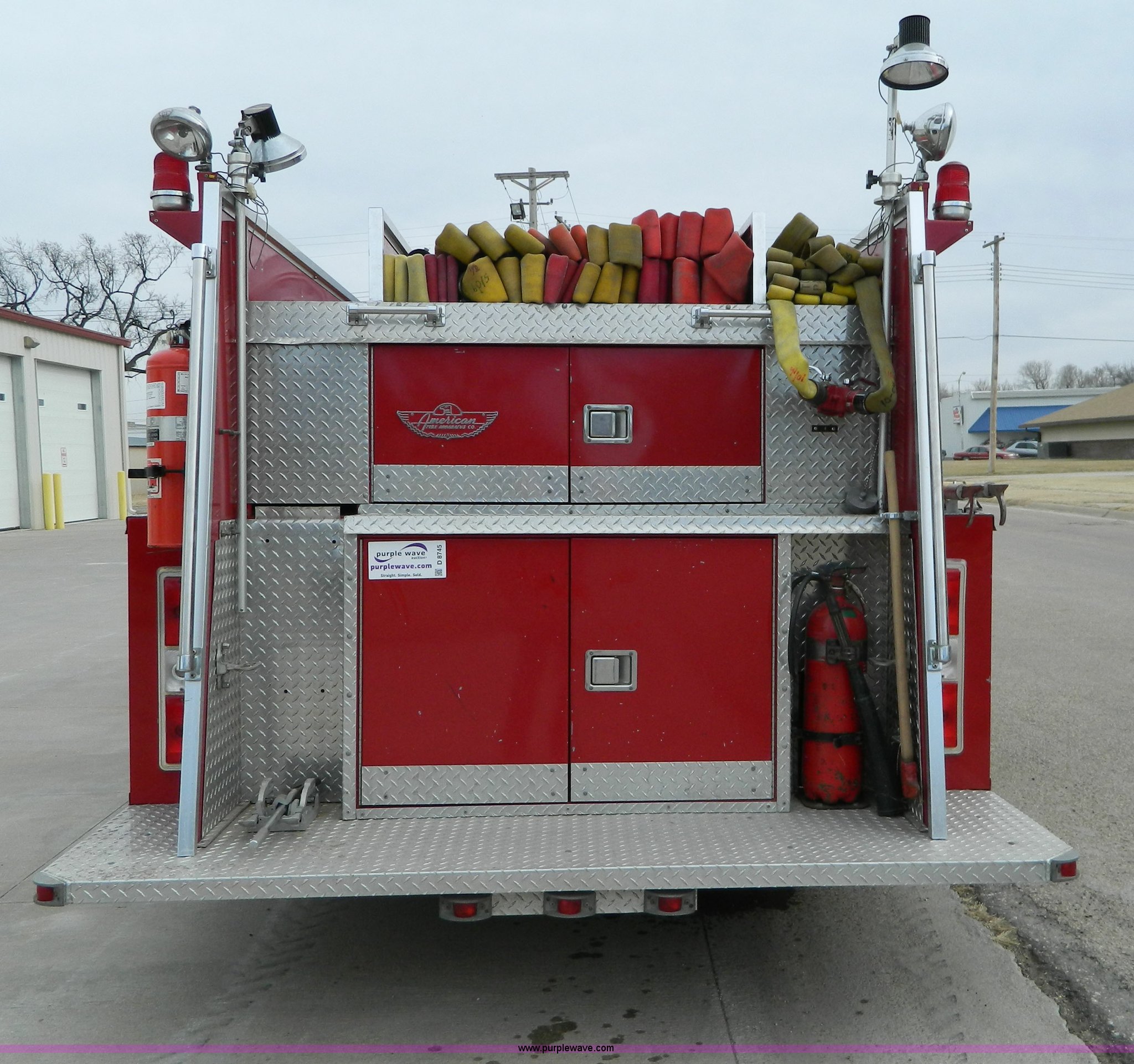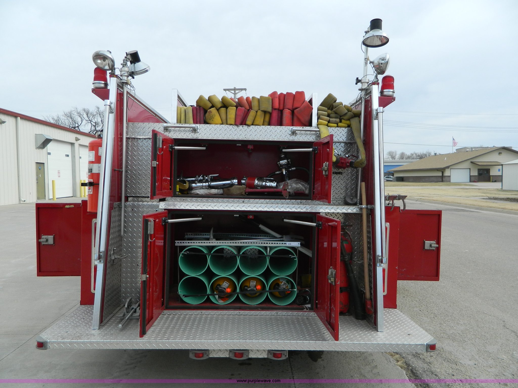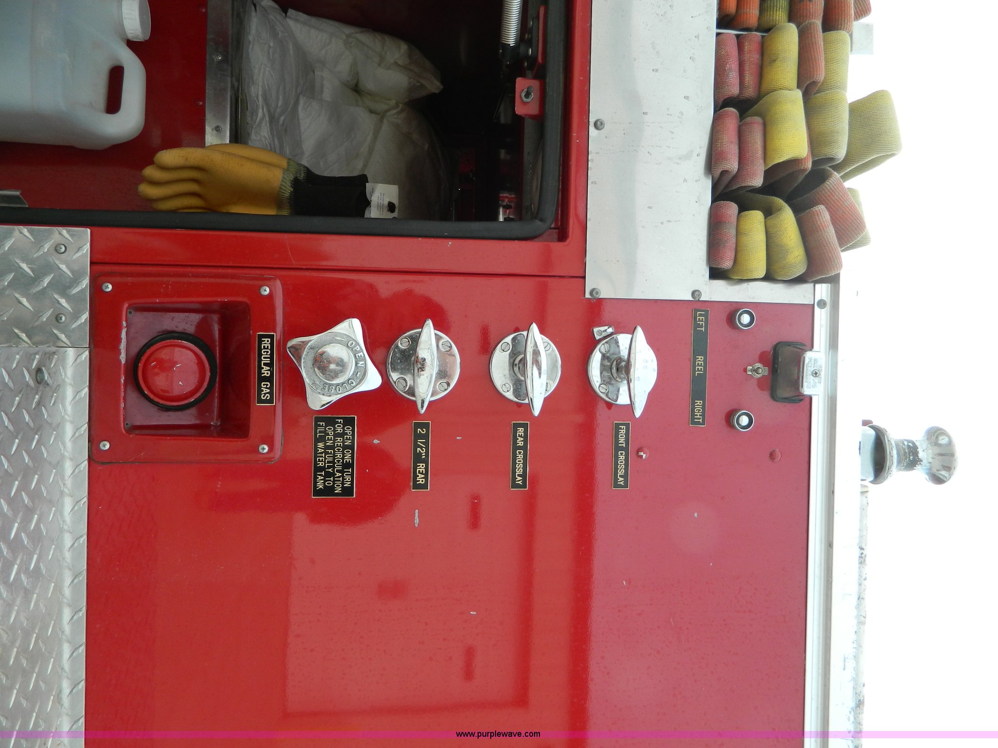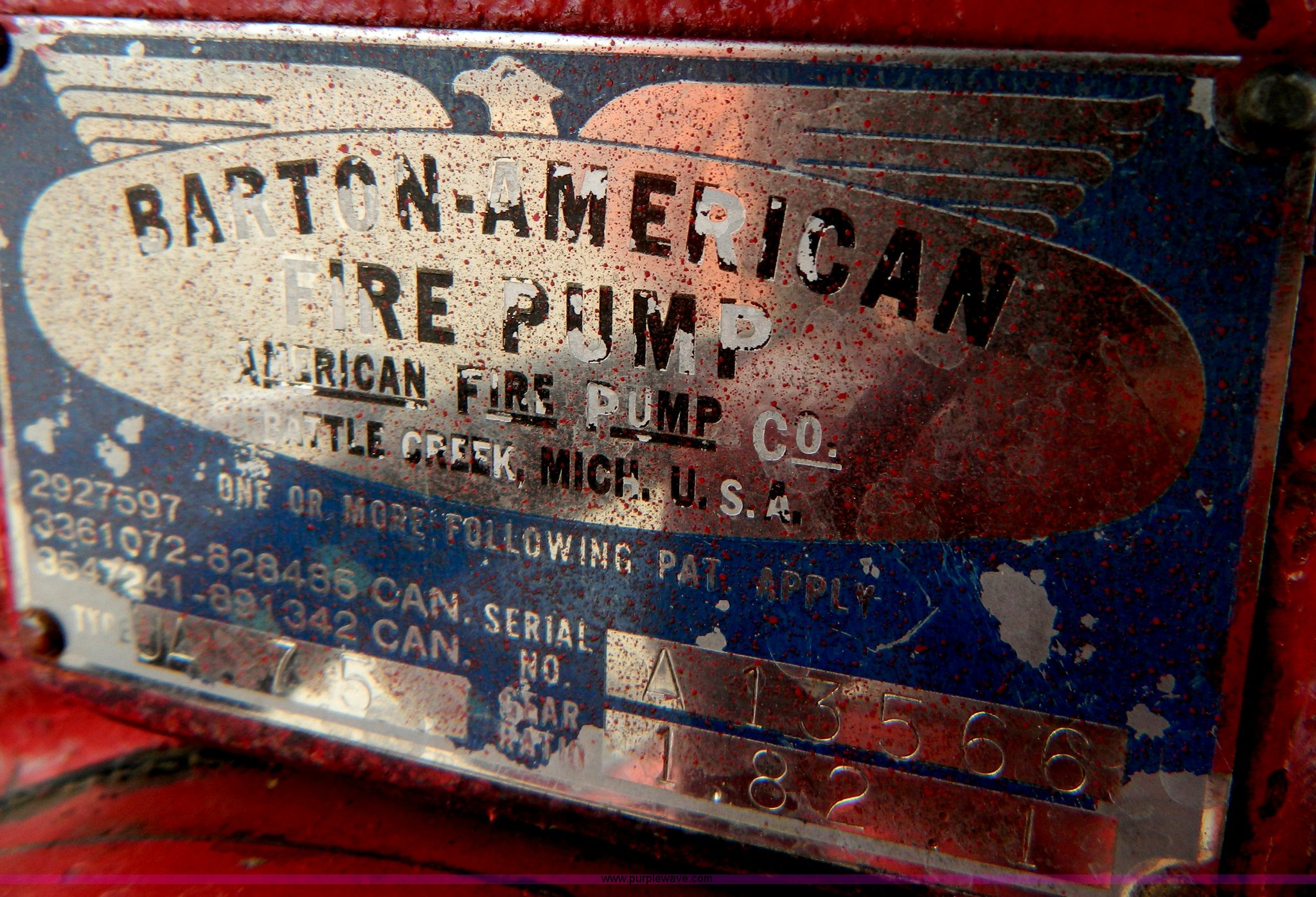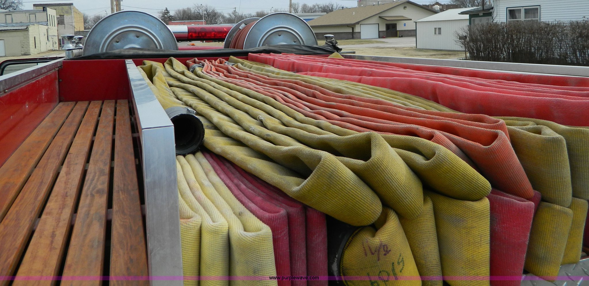 Purple Wave is selling a used Fire Truck or Emergency Vehicle in Kansas. This item is a 1979 Ford F700 firetruck with the following: 5,290 miles on odometer, 429 gas engine, Five speed manual transmission, Custom cab, Heater, AM radio, Electronic siren, Light bar, Rear strobe lights, American Barton 750 front mount pump, 750 gallon water tank, Cole Hersee battery shutoff, Electric hose reels, 4" intake, (3) 2.5" front discharge, (2) 1.5" cross lays, 2.5" rear discharge, 9.00-20 tires, Passed pump test in Nov. 2011, Complete pump rebuild in 2008, No loose tools, hose, appliances, radios, or personal property included
