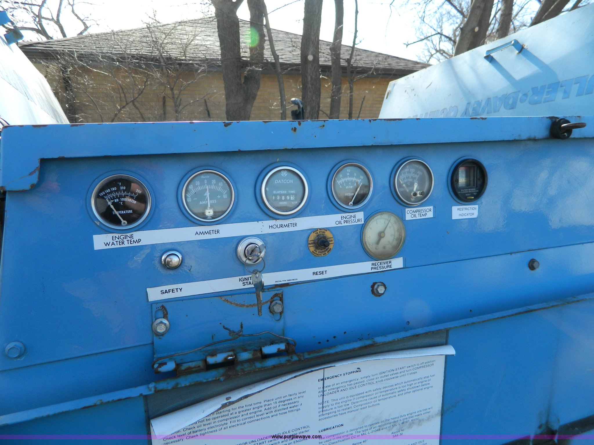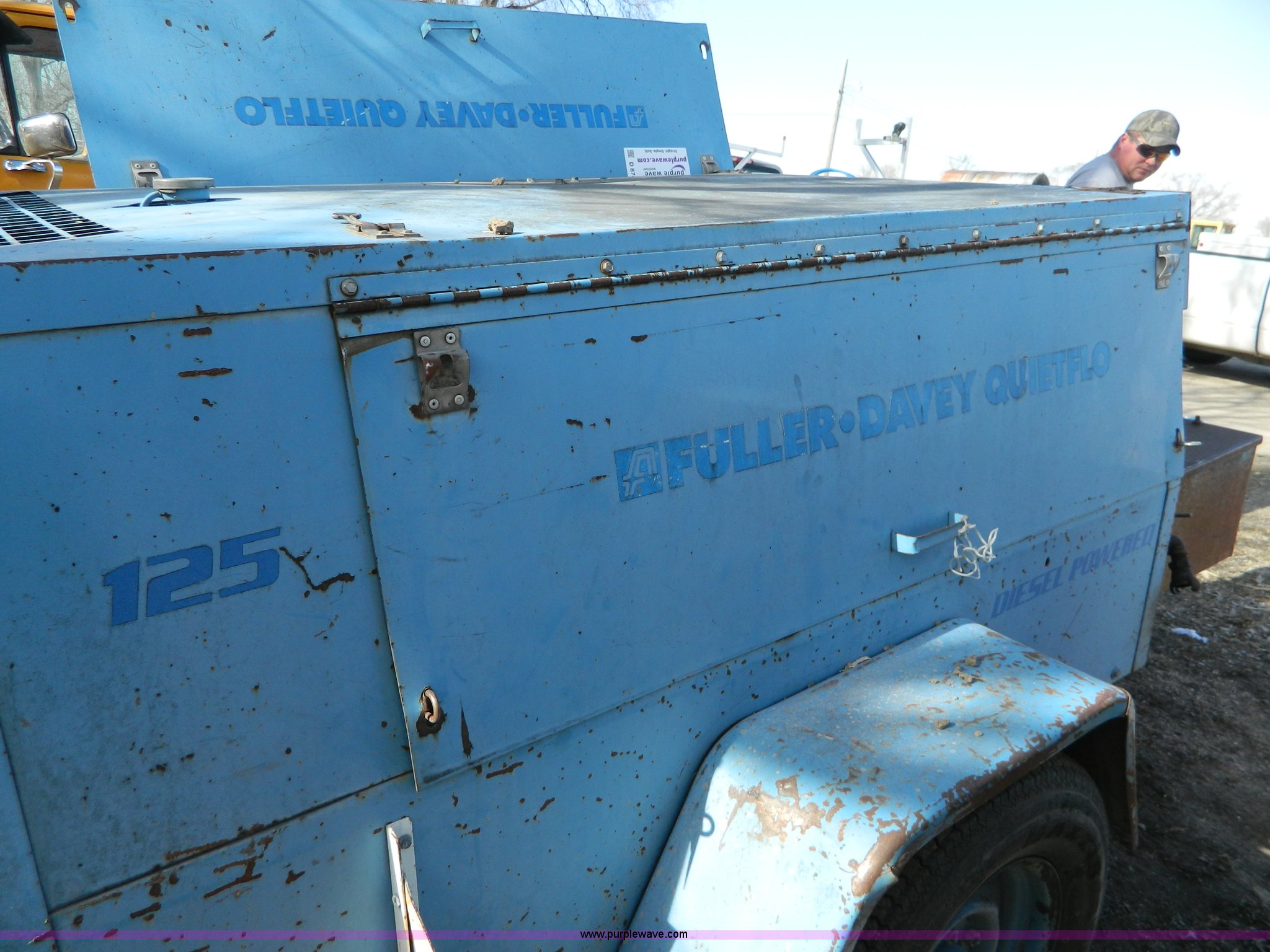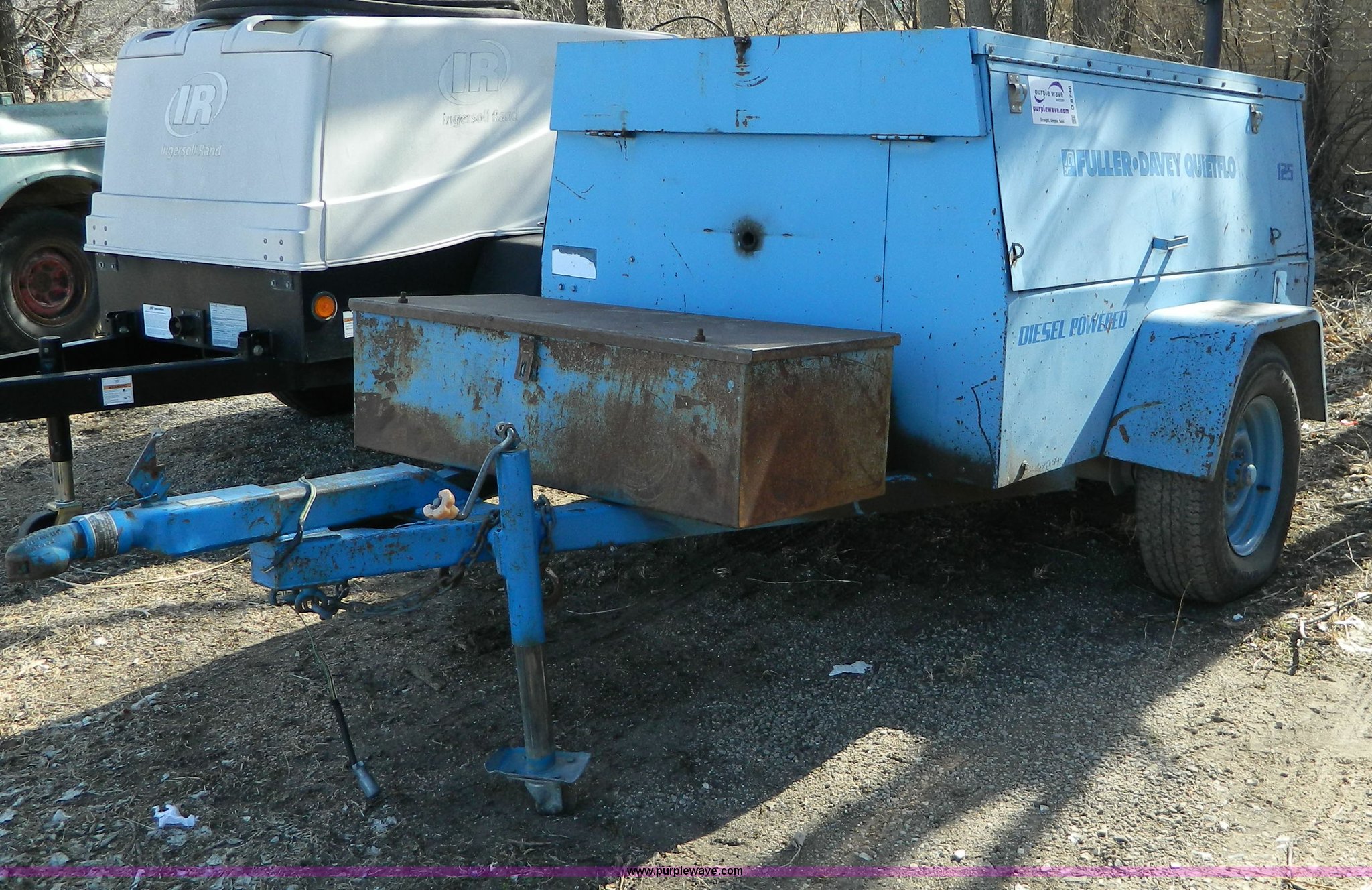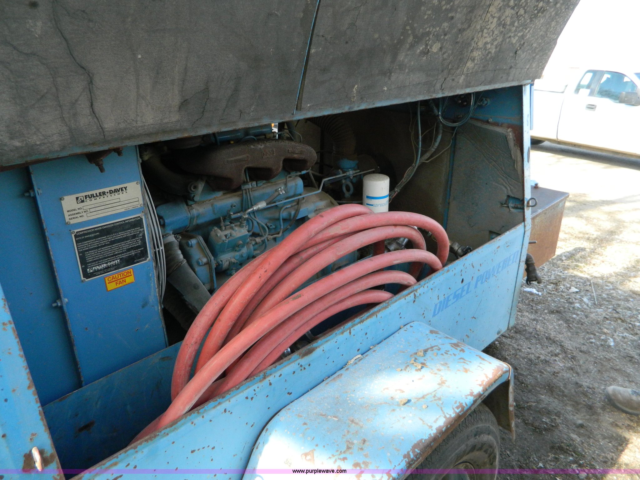 Purple Wave is selling a used Air Compressor in Kansas. This item is a 1994 Fuller-Davey 125RPDQ compressor with the following: 1,265 hours on meter, John Deere diesel engine, Serial C03179D836594, 12V electric start, 2" bullnose ball hitch, Engine uses oil, No air hose included, Serial 9403833123BM50115