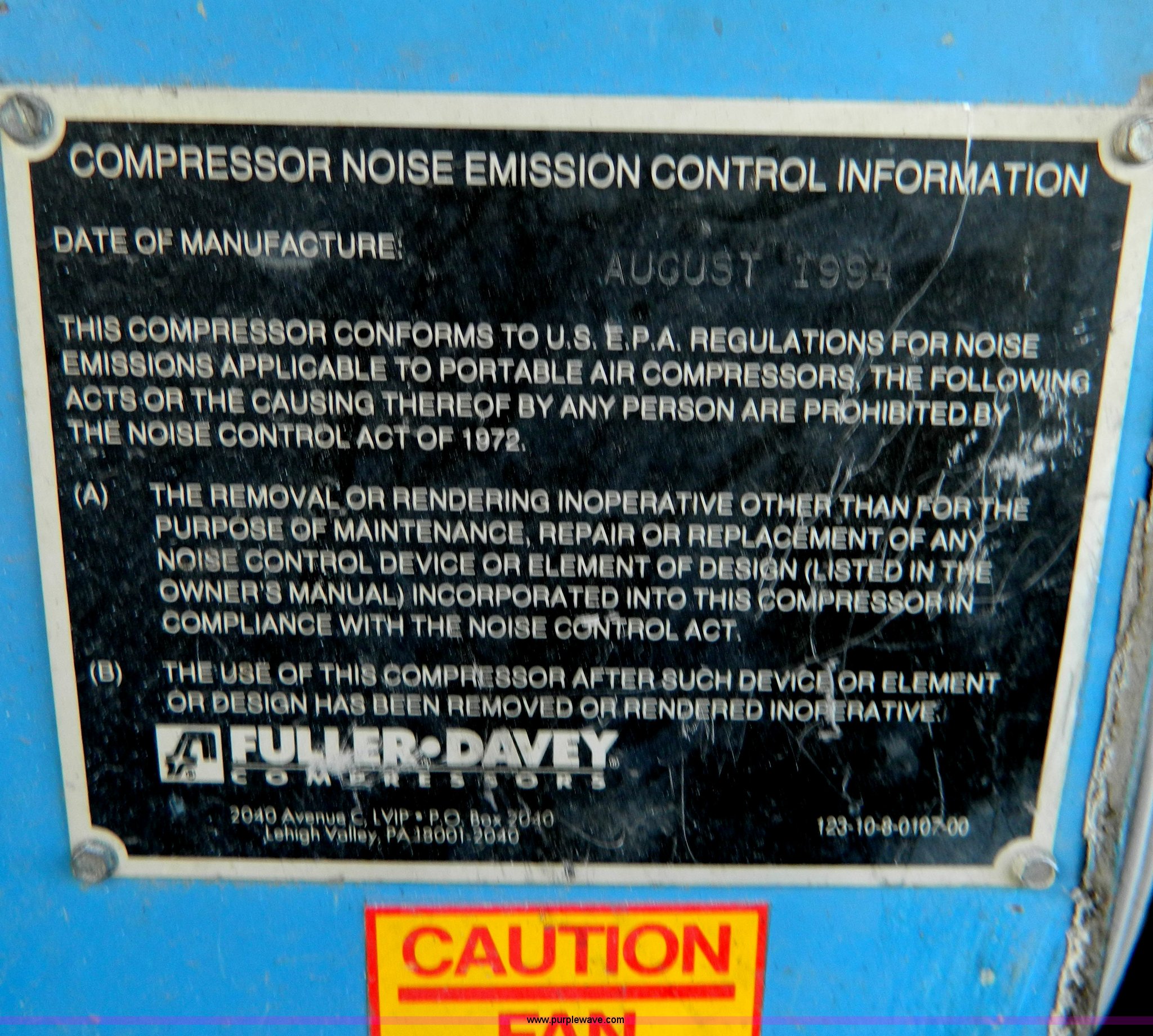 Take a look at this used 1994 Fuller-Davey 125RPDQ compressor being sold on March 6th, 2012 in the SOLD! March 6 Government Auction made by Fuller-Davey. Take a look at all of the item information below or take a look at similar auctions for Compressors.