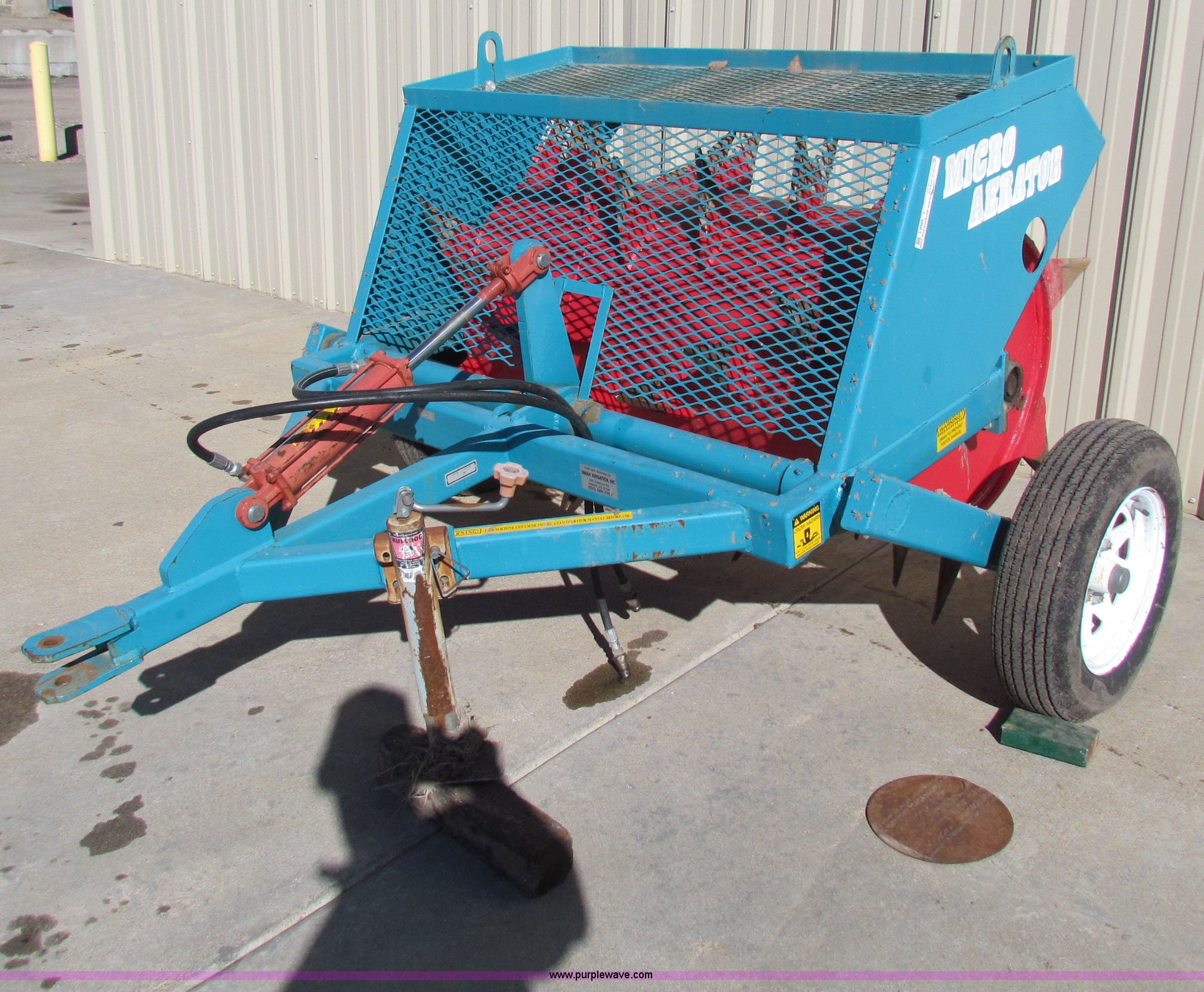 Purple Wave is selling a used Lawn and Garden in Kansas. This item is a Micro aerator with the following: 4'W, Hydraulic cylinder included, Serial MA01169, ID# 9043
