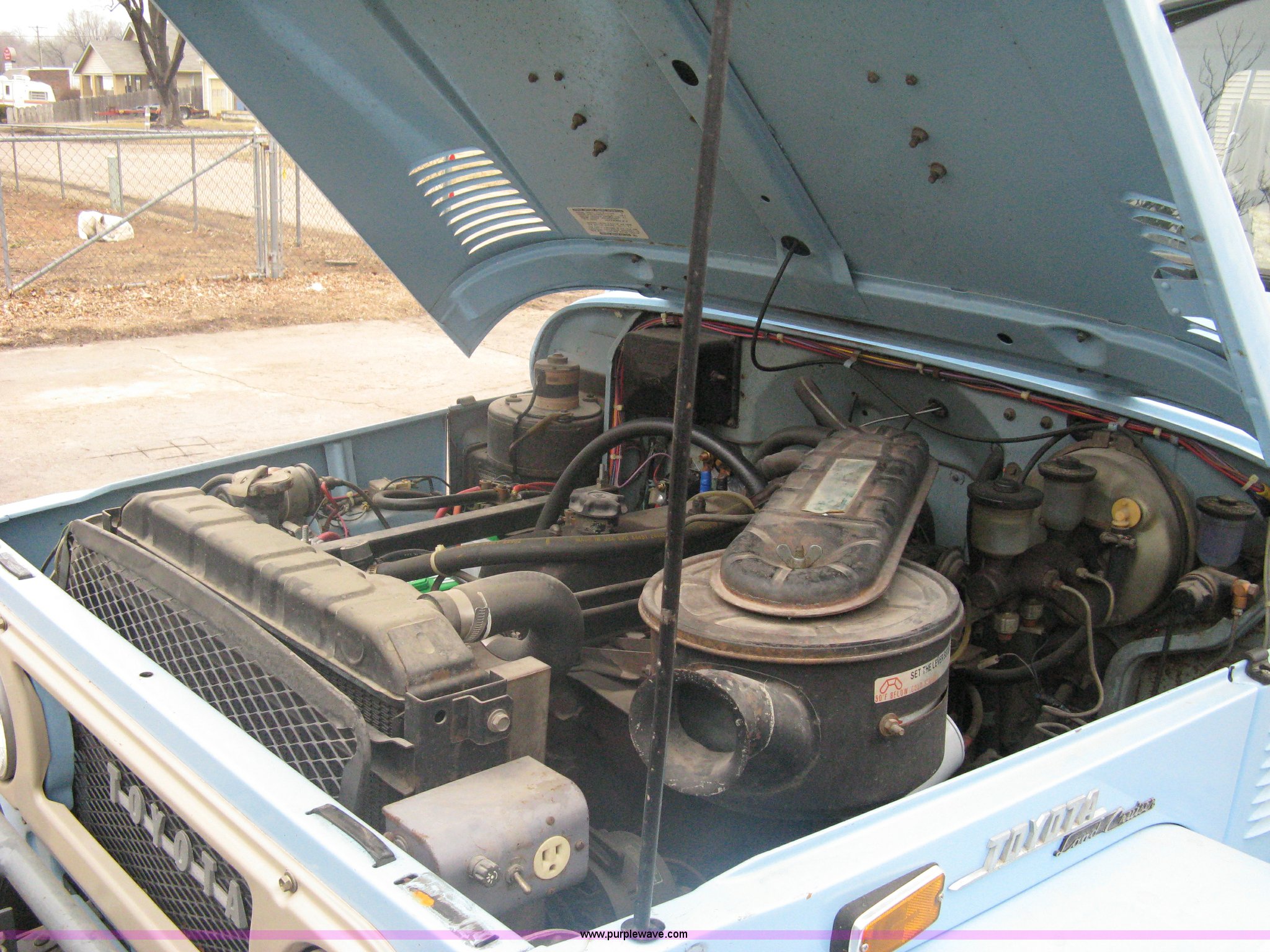 Purple Wave is selling a used Passenger Vehicle in Kansas. This item is a 1973 Toyota Land Cruiser with the following: 21,803 miles on odometer, Actual mileage unknown, Straight six-cylinder gas engine (237 CID), Four speed manual transmission, Four wheel drive, Hi-low, Lockout hubs, Dual batteries, Block heater, Braden 12,000 lb electric winch, Custom front cabinet style bumper, Fold-down windshield, Rear hitch, 31 x 10.50R15 LT M/S tires, Spare tire included, Heat, Front and rear auxillary, AM/FM/cassette, Manual locks and windows, Uniden CB, Compass, Sunpro Tach, (2) two-gun racks, Side window, Fold-up rear seats, Includes removable top and doors