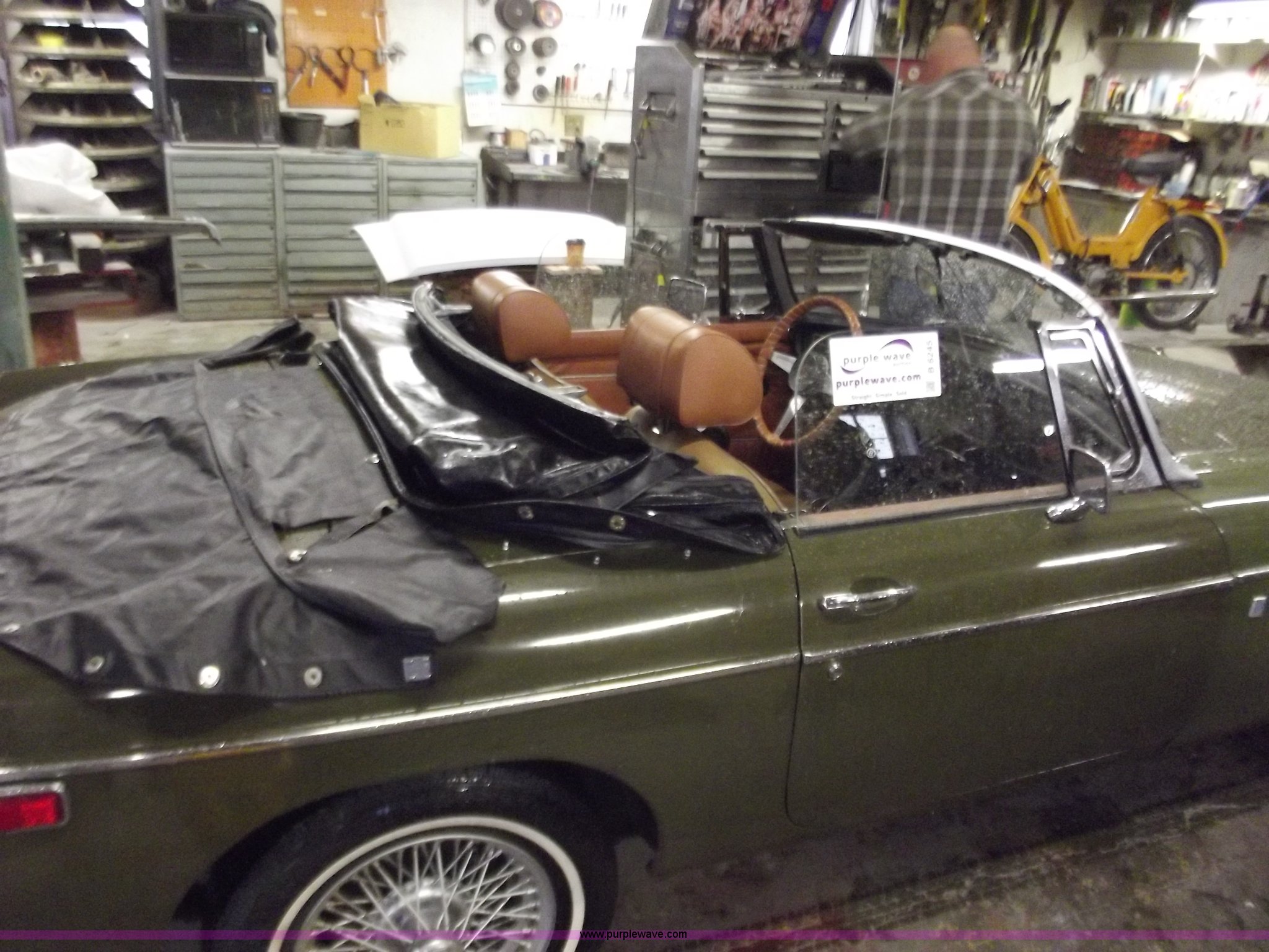Purple Wave is selling a used Passenger Vehicle in Missouri. This item is a 1975 MG MGB convertible with the following: 68,754 miles on odometer, Four cylinder 1800cc gas engine, Four speed 110GT manual transmission, Heater, AM/FM/Cassette, Manual windows and locks, Vinyl interior, Recently replaced tires, top, exhaust, shocks, door and windows seals, and matching spare tire and wheel, Recently rebuilt engine, transmission, and rear end, Numbers matching, all original, 175/75/14 tires, Repair receipts available, Knockoff racing wheels, no lug nuts with wrench, Approx $9,800 spent for repairs