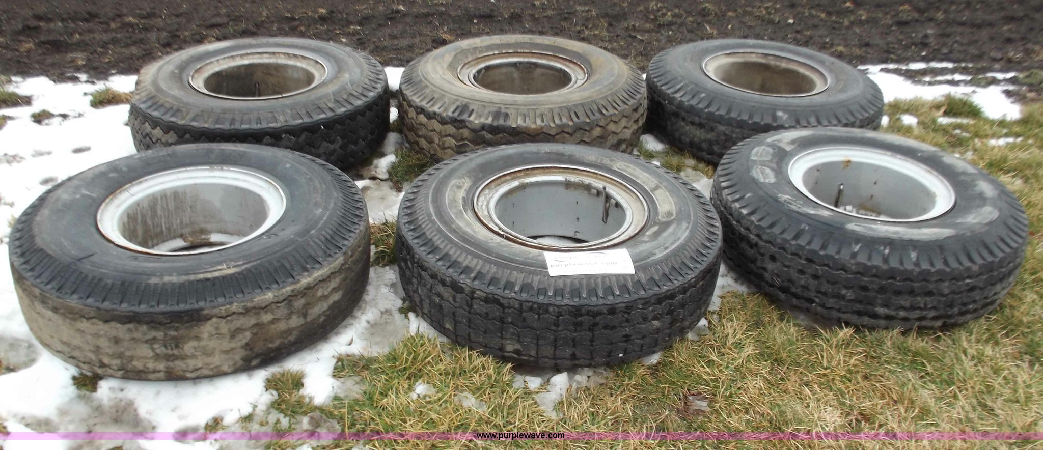 (6) Dayton wheels and tires. 9.00x15 tires, 12 ply, All hold air. Shipping quotes available. Helt's Turf Farms. 24600 E State Rt. P. Pleasant Hill, MO 64080