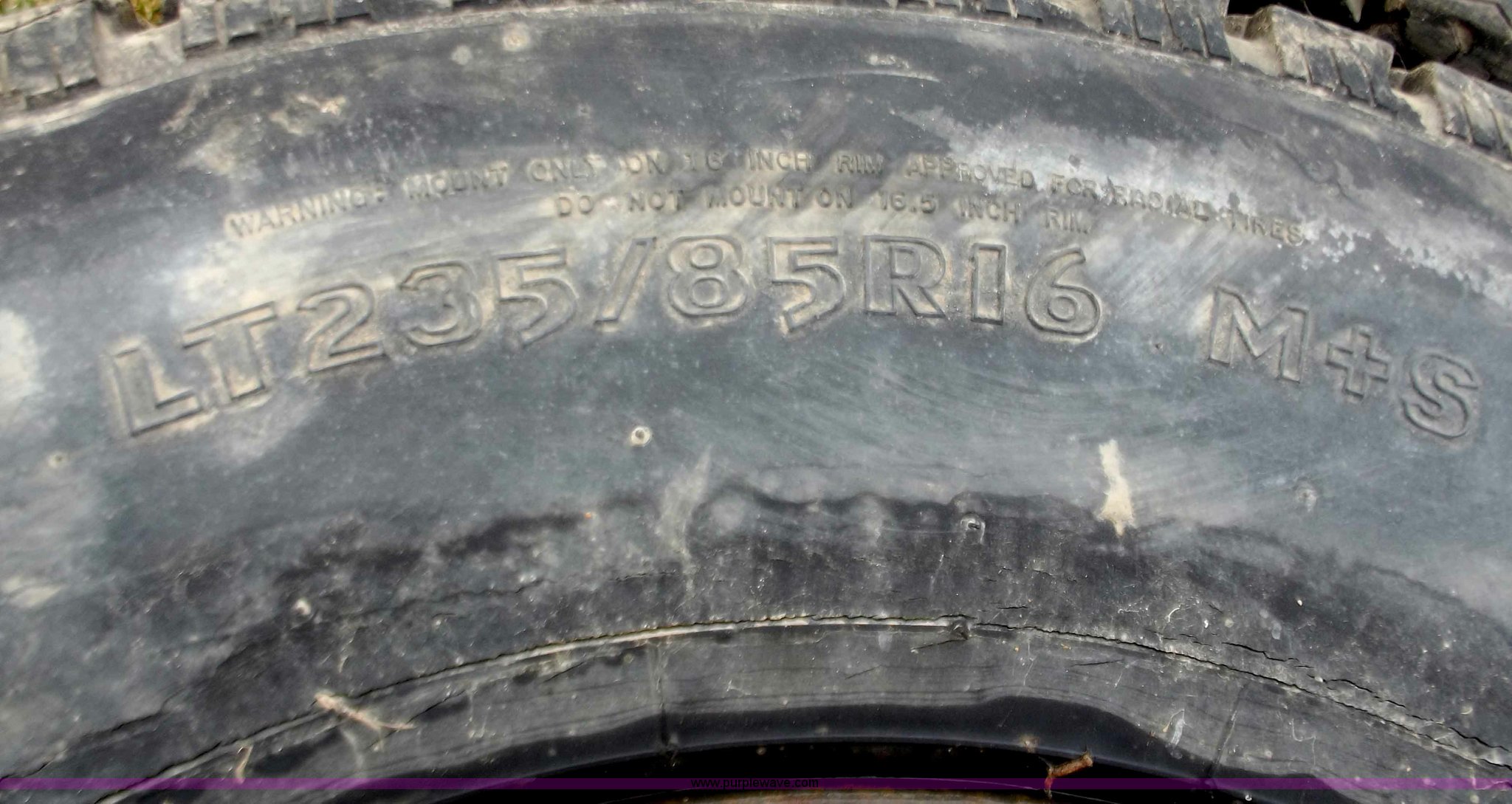 Purple Wave is selling a used Automotive Parts or Acces. in Missouri. This item is a (5) wheels and tires with the following: (4) 235/85/16, 265/75/16, All 8-lug wheels, Off of Ford F250 pickup truck