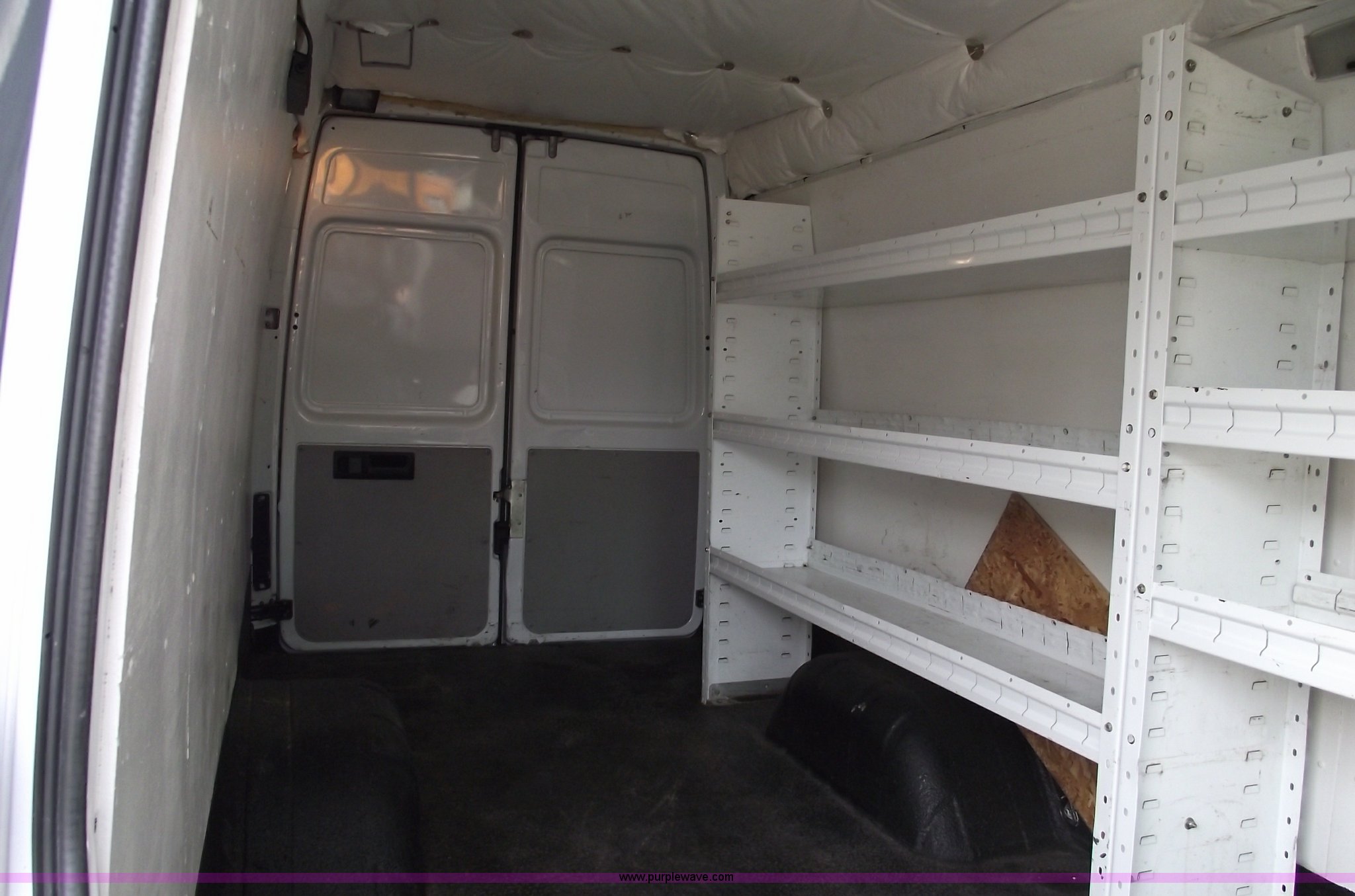Purple Wave is selling a used Passenger Vehicle in Kansas. This item is a 2004 Dodge 3500 Sprinter cargo van with the following: 111,350 miles on odometer, Mercedes 2.7L five cylinder diesel engine, Automatic transmission, AC and heat, Cruise, AM/FM/CD, Power windows, locks, and mirrors, Vinyl floor, Cloth seats, WeatherGuard interior shelves, Electric brake controller, Floor is Rhino lined, Receiver hitch, Trailer wiring, 195/70R15 tires