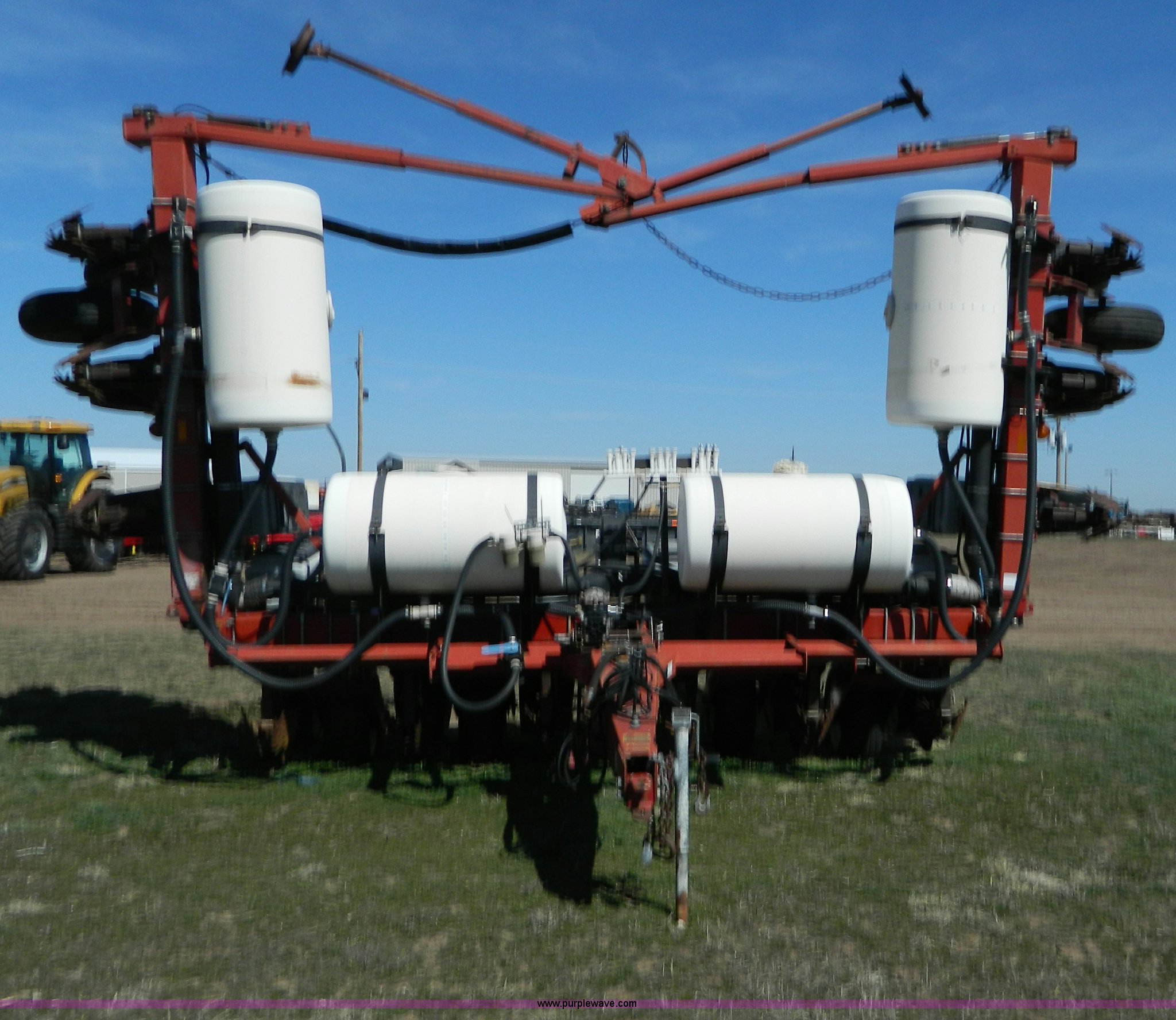 Purple Wave is selling a used Planter in Kansas. This item is a 1997 AGCO White 6122 12 row planter with the following: 30" spacing, Individual hoppers, 2 bushel hoppers, Air delivery, (4) 80 gallon poly tanks, Hydraulic markers, Extra down pressure springs, Liquid fertilizer, Monitor included, Welds on fold hinges, One lid missing on tank, Estimated 25,000 acres of use, Serial 611549