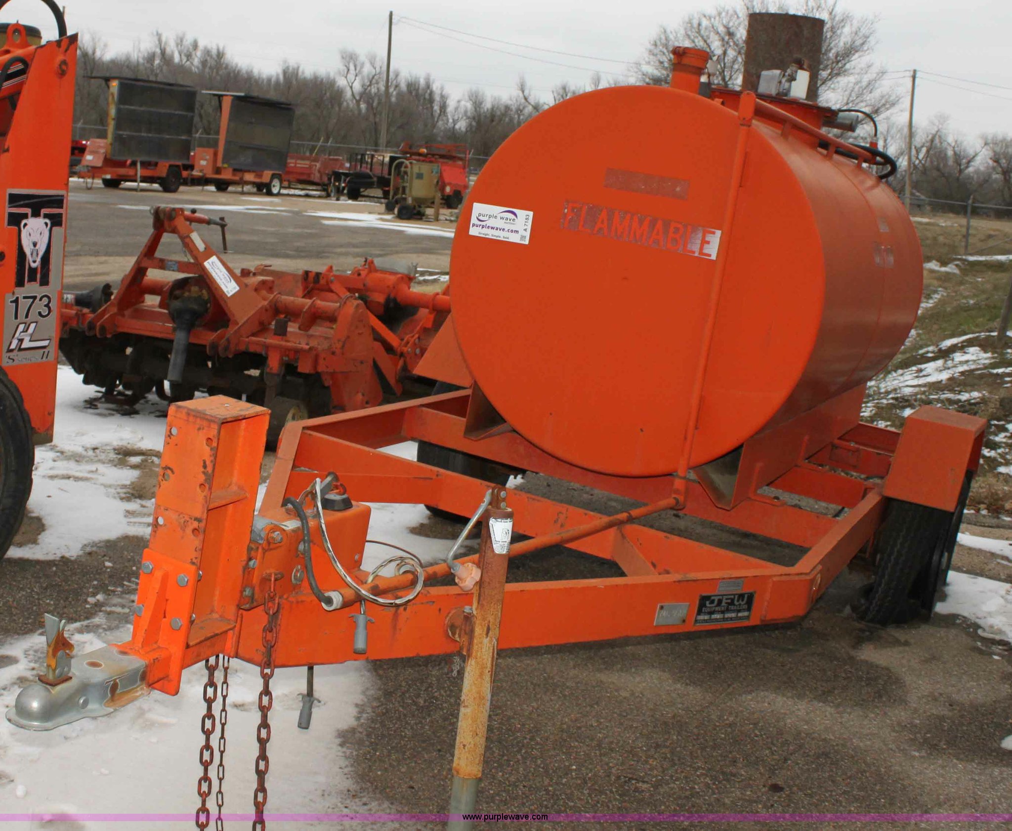 Purple Wave is selling a used Fuel and Lube in Kansas. This item is a 1992 JFW FT1 600 gallon diesel fuel tank with the following: Trailer mounted, 12V electric pump, Adjustable 2" ball, 7.00-15 tires, One tire is off the rim, Condition unknown, Serial 1759, KDOT ID 746-5012