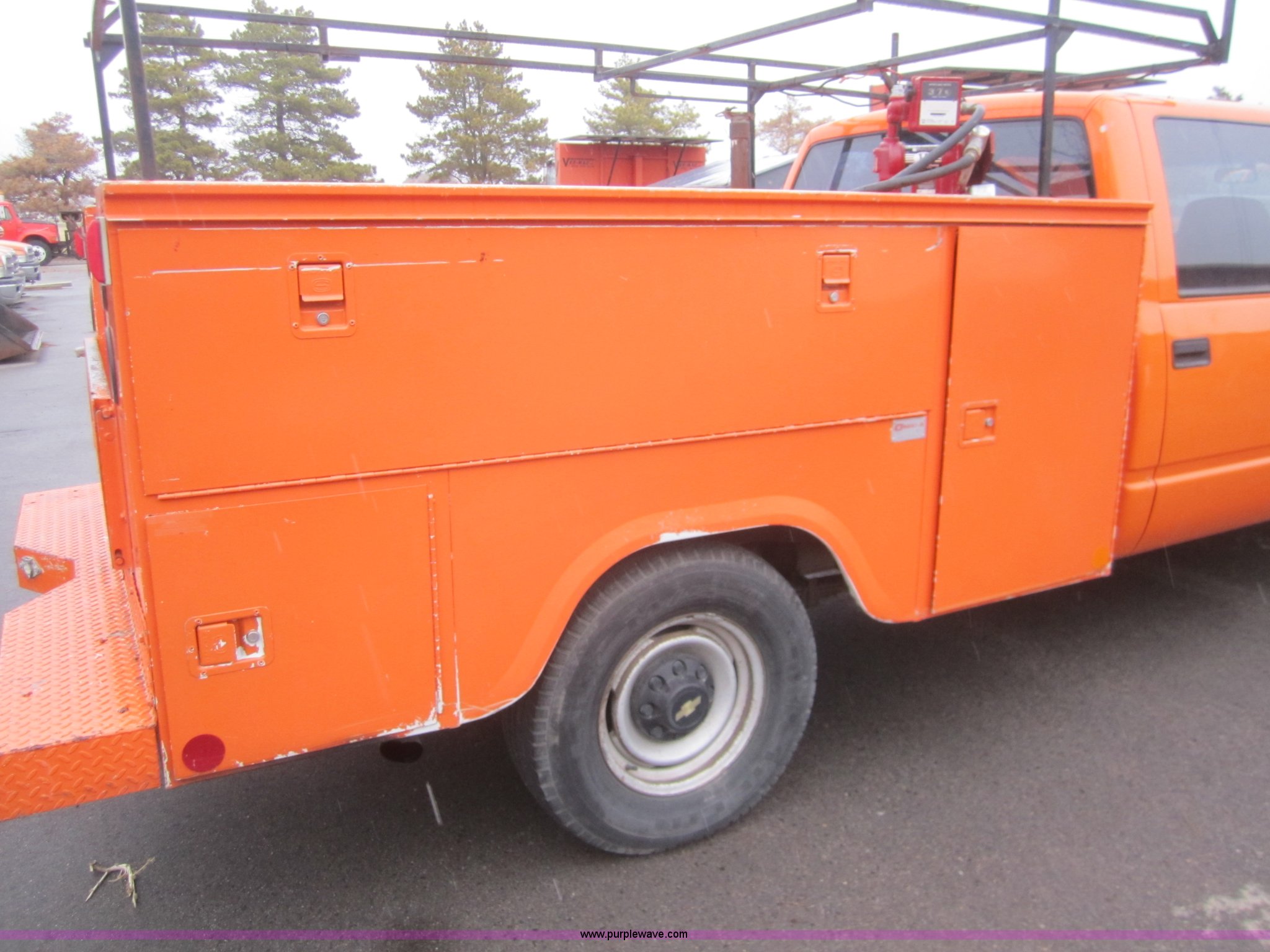 Purple Wave is selling a used Service Truck in Kansas. This item is a 2000 Chevrolet C3500 crew cab pickup truck with the following: 158,751 miles on odometer, 6.5L V8 diesel engine, Automatic transmission, AC and heat, Tilt, Cruise, AM/FM, Omaha utility bed, Fuel tank with transfer pump, LT245/75R16 tires, Interior/exterior cosmetic damage, Paint faded and scratched, Seat needs reupholstered, Tires need replaced, KDOT ID 122-6029