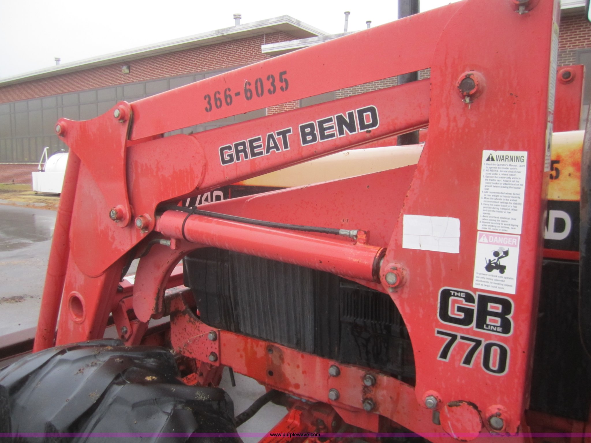 Purple Wave is selling a used Tractor in Kansas. This item is a 1996 New Holland 7740SL MFWD tractor with the following: 5,830 hours on meter, 85 HP four cylinder diesel engine, Front wheel assist, Great Bend 770 leader with 8' bucket, 540 PTO, (4) hydraulic remotes, 14.9-24 front tires, 18.4-34 rear tires, Windshield scratched, Missing three point, Needs injection pump rebuilt, Needs transmission forward/reverse synchronizer replaced, Clutch, 4WD switch, PTO clutch, and hydraulics control cables need replaced, Serial 021188B, KDOT ID 366-6035