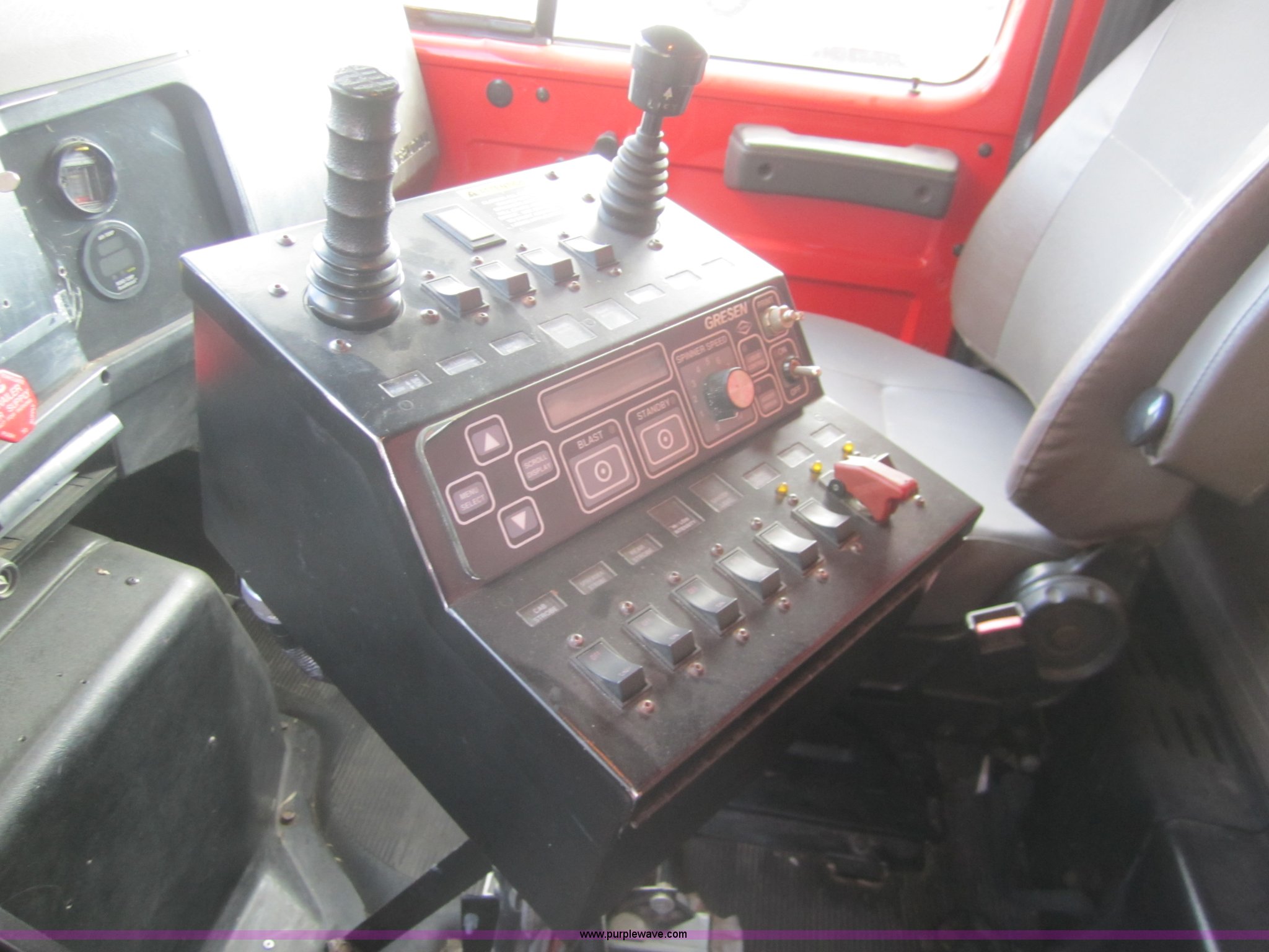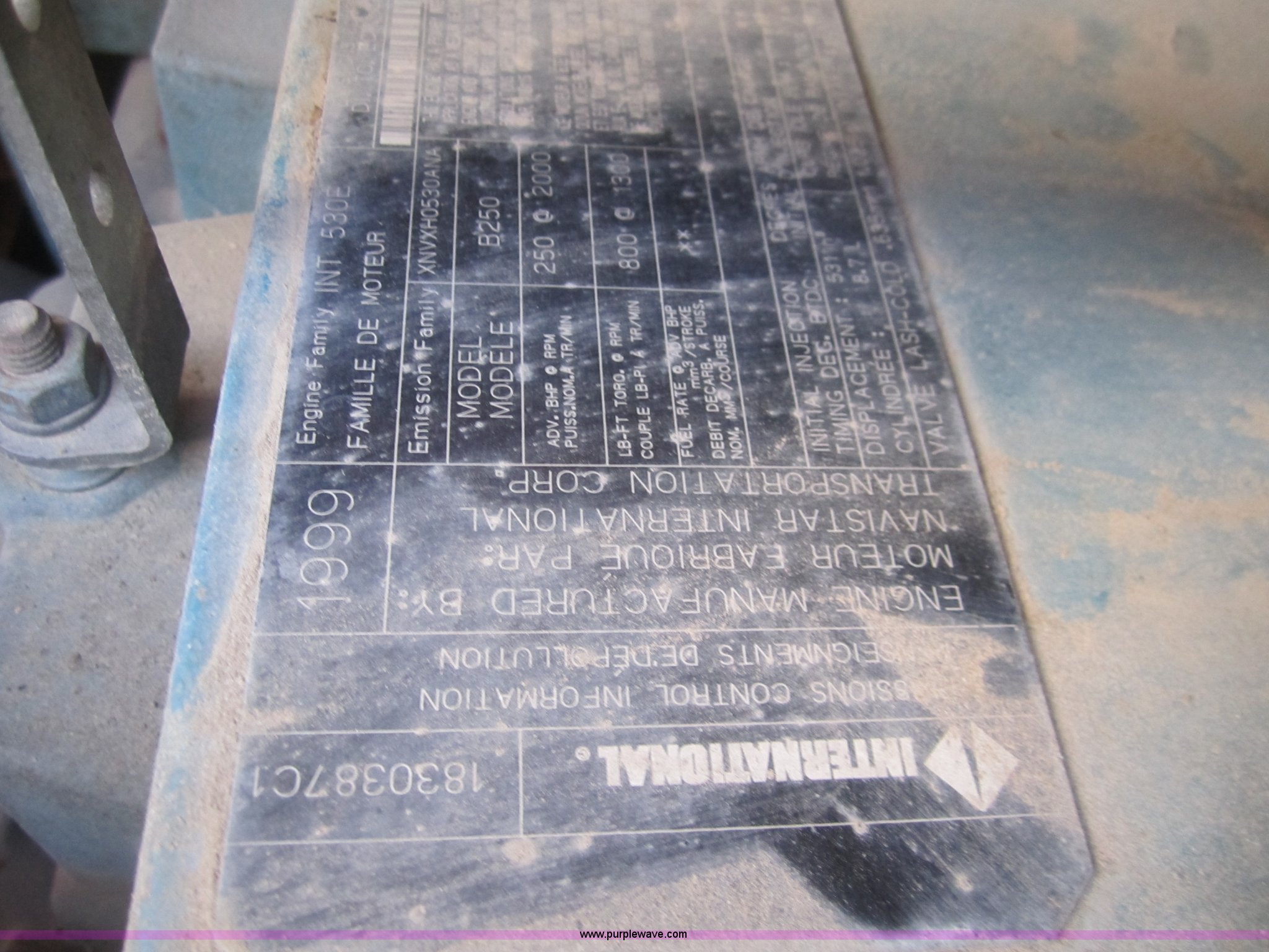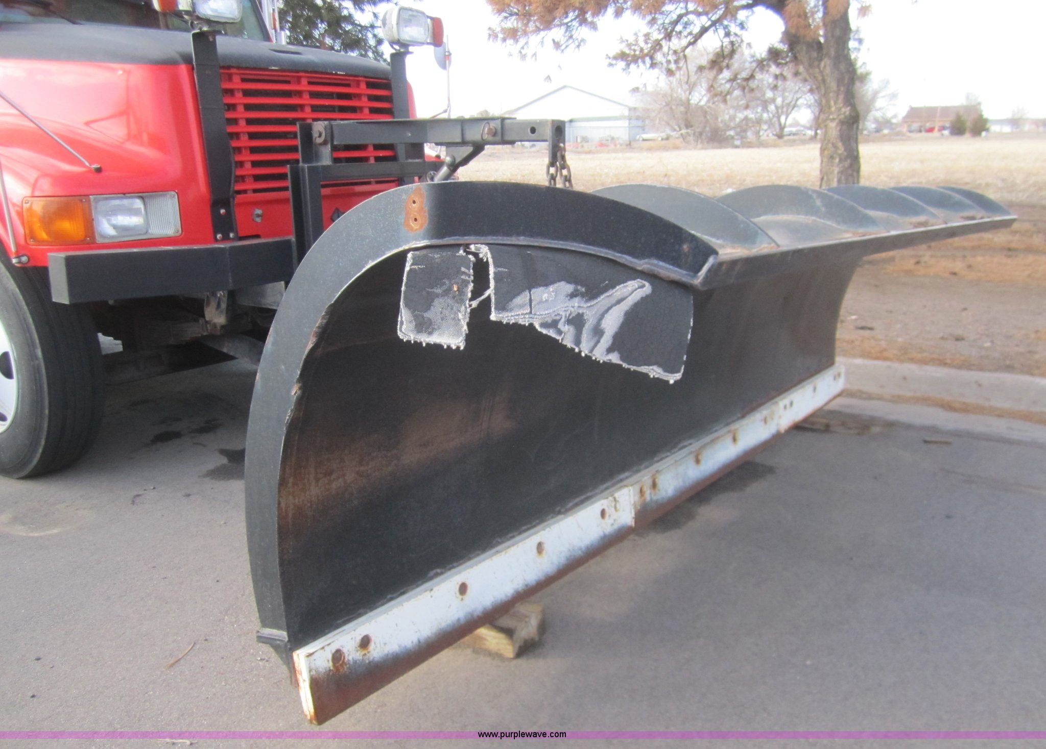 Purple Wave is selling a used Construction Dump Truck in Kansas. This item is a 1999 International 4900 tandem axle dump truck with the following: 206,759 miles on odometer, 9,303 hours on meter, Navistar DT530 8.7L diesel engine, Allison MD3060 automatic transmission, Twin screw, Heater, Does not have AC compressor, Cruise, AM/FM, Air ride seat, Heated mirrors, Air brakes, Gresen in-cab plow and spreader controls, Monroe 11' reversible plow, Monroe MV-156 spreader, Monroe pre-wet tank, Serial 99-04-6038, Does not have wing plow, Interior/exterior cosmetic damage, Some rust, Driver seat needs reupholstered, KDOT ID 264-6048