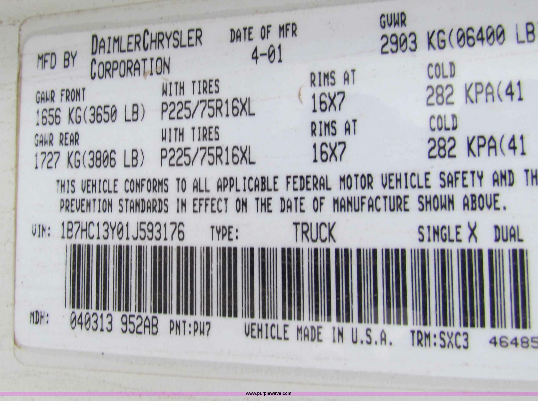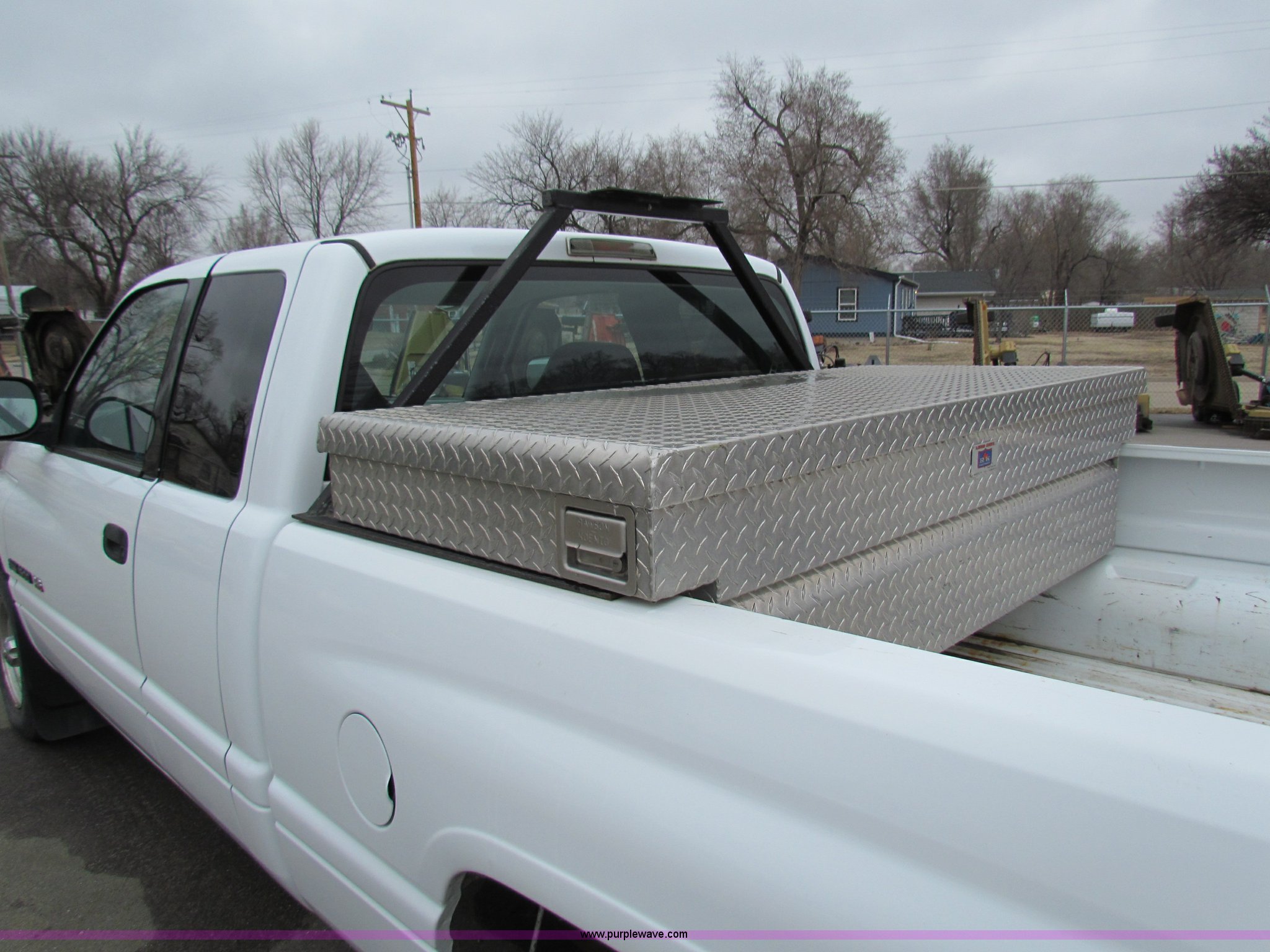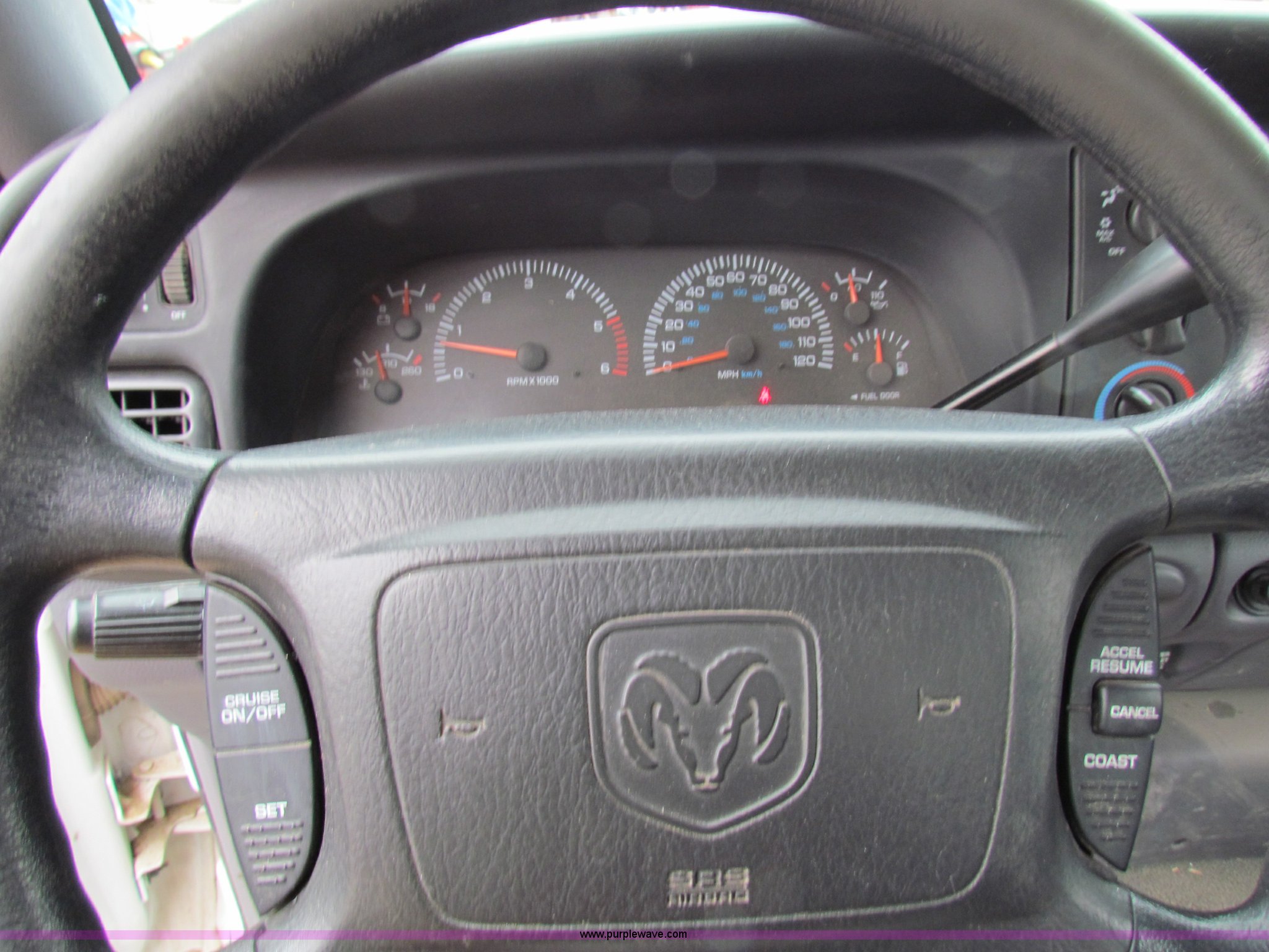 Purple Wave is selling a used Passenger Vehicle in Kansas. This item is a 2001 Dodge Ram 1500 quad cab pickup truck with the following: 158,747 miles on odometer, 5.2L V8 SFI engine, Automatic transmission, AC and heat, Tilt, Cruise, AM/FM/Cassette, Toolbox, 225/75R16 tires, Interior/exterior cosmetic damage, Hail damage, Dash cracked, Rust on bottom right side, Transmission issues, Check engine light on, KDOT ID 051-2111