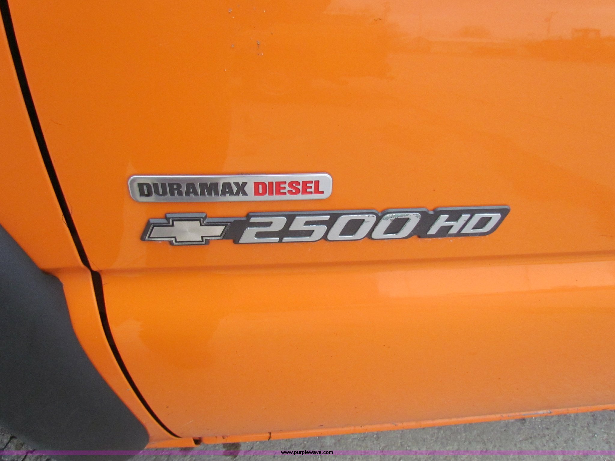 2002 Chevrolet Silverado C2500HD pickup truck. 278,239 miles on odometer, Duramax 6.6L V8 diesel engine, Automatic transmission, AC and heat, Tilt, Cruise, AM/FM, Manual windows and locks, Stahl utility bed, Diesel fuel tank with transfer pump, 265/75R16 tires, Interior/exterior cosmetic damage, Hail damage, Paint faded and scratched, KDOT ID 112-4172. 1GBHC24142E288494. View equipment video. Shipping quotes available. KDOT Chanute. 411 W 14th. Chanute, KS 66720