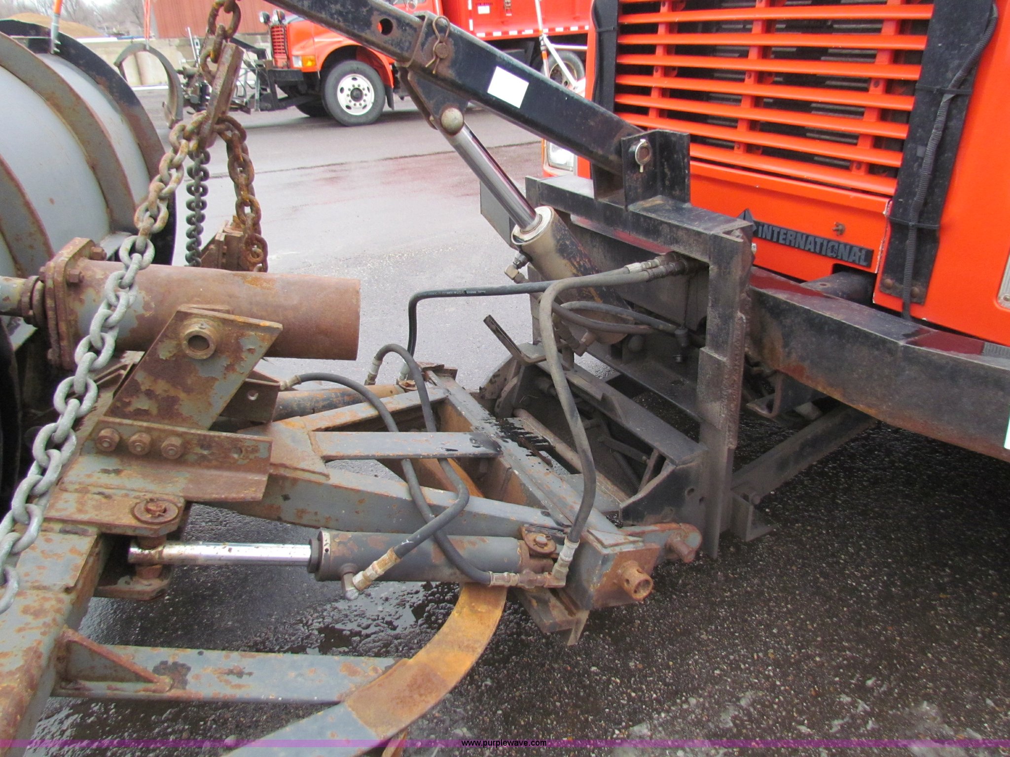 1997 International 4900 tandem axle dump truck. 216,916 miles on odometer, 8,382 hours on meter, Navistar DT466 7.6L diesel engine, Allison MD3060 transmission, Twin screw, Heater, AM/FM/Cassette, Heated mirrors, Manual windows and locks, Suspension seat, Air brakes, Gresen spreader and plow controls, 1996 Valk RV1142PR 11' plow KDOT ID 603-5316, Serial 20951, 1996 Swenson EV-100-13 spreader KDOT ID 721-5116, Serial 2, Air operated end gate, Rear air brake hookups, Rear hydraulic remotes, Spring suspension, Pintle hitch, Trailer wiring, 275/80R22.5 tires, Tires worn, Interior/exterior cosmetic damage, Cab and bed rust, KDOT ID 264-5116. Title distribution may be delayed up to 14 days from verification of funds. 1HTSHAAR0VH452496. View equipment video. Shipping quotes available. KDOT Hutchinson. 500 N Hendricks. Hutchinson, KS 67501