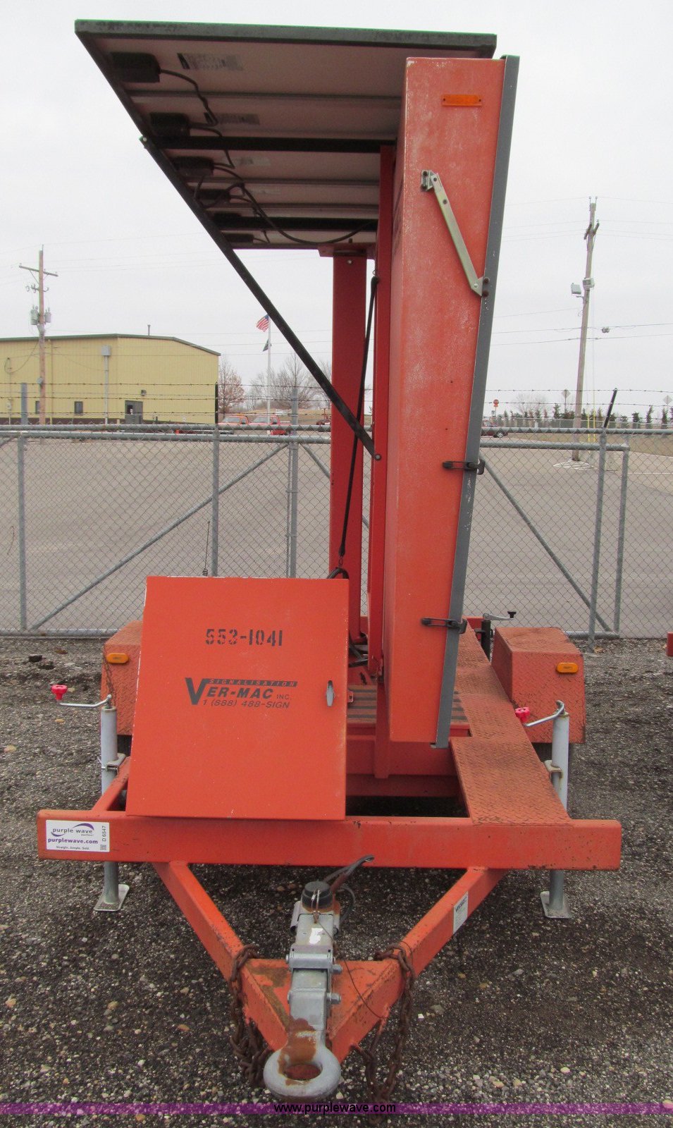 Take a look at this used 2001 Ver-Mac PCMS-1210 variable message board being sold on March 13th, 2012 in the SOLD! March 13 Kansas Department of Transportation Auction made by Ver-Mac. Take a look at all of the item information below or take a look at similar auctions for Asphalt and Paving Equipment.