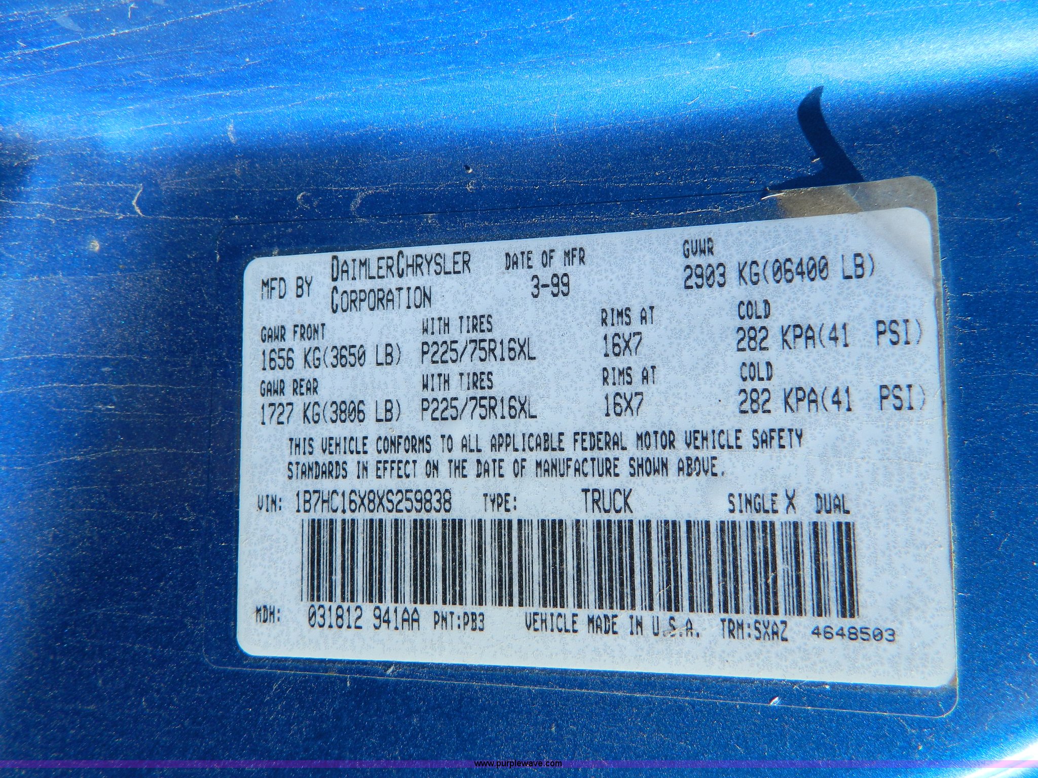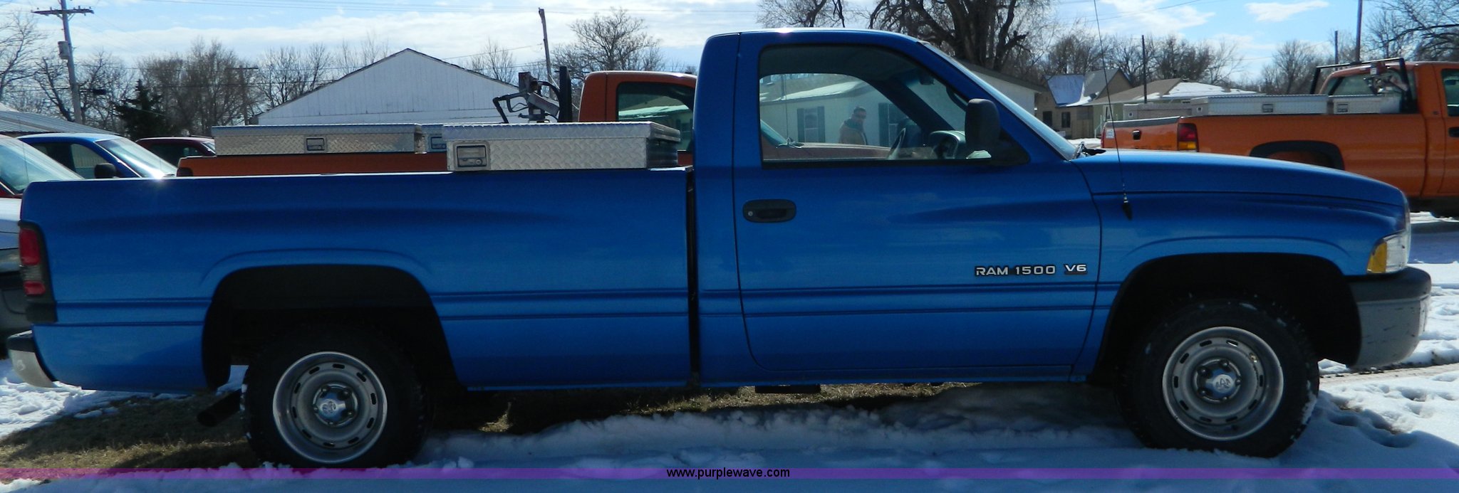 Purple Wave is selling a used Passenger Vehicle in Kansas. This item is a 1999 Dodge Ram 1500 pickup truck with the following: 158,114 miles on odometer, 3.9L V6 SFI engine, Automatic transmission, AC and heat, Cruise, Cross bed toolbox, Interior/exterior cosmetic damage, Paint faded and scratched, Hail damage, Driver seat needs reupholstered, Cracked dash, KDOT ID 051-3049