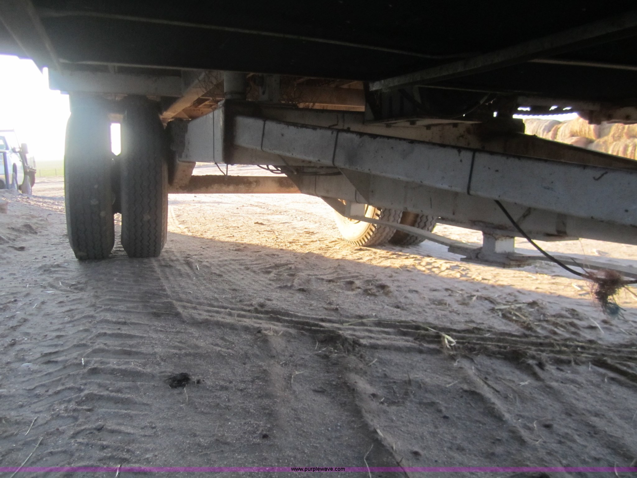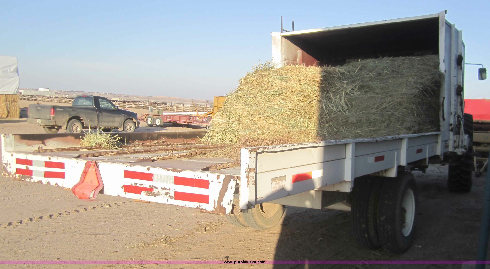 Purple Wave is selling a used Feed Mixer or Bale Processor in Kansas. This item is a Kirby bale feeder with the following: 8x6x20, Pull type, 540 PTO, Recently replaced 30" belting, bottom belt, and knives, 101" x 20' bale platform, 9.00-20 tires, (3) replacement barrels, No scale head, Serial KROT97287