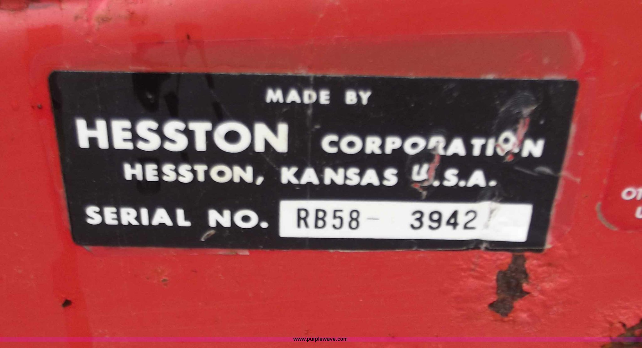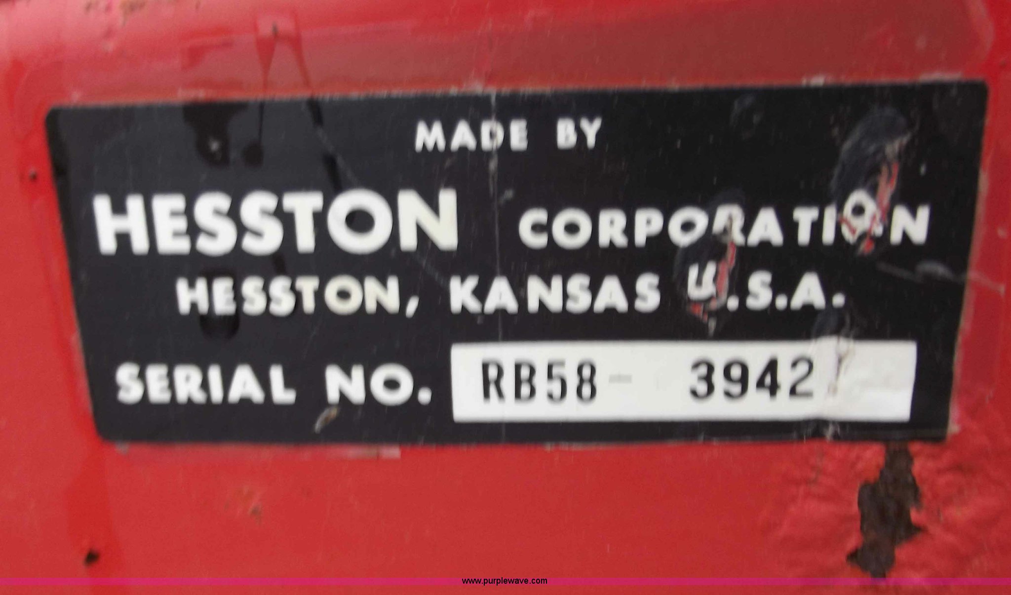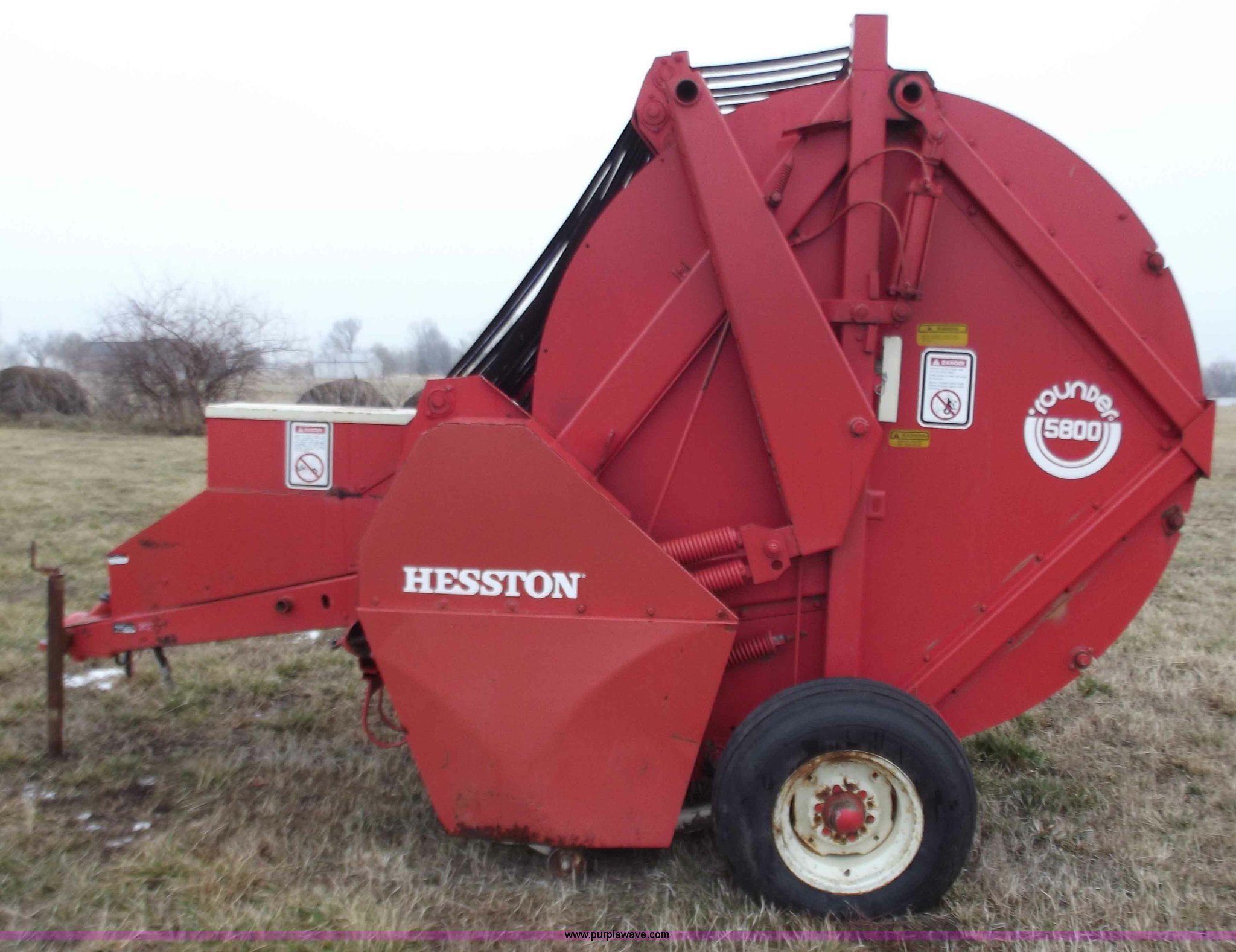 Purple Wave is selling a used Round Baler in Missouri. This item is a Hesston 5800 round baler with the following: 5x5 bales, 540 PTO, Pioneer fittings, Pin hitch, 9.5L-15 tires, Missing one belt and idler chain, Serial RB583942