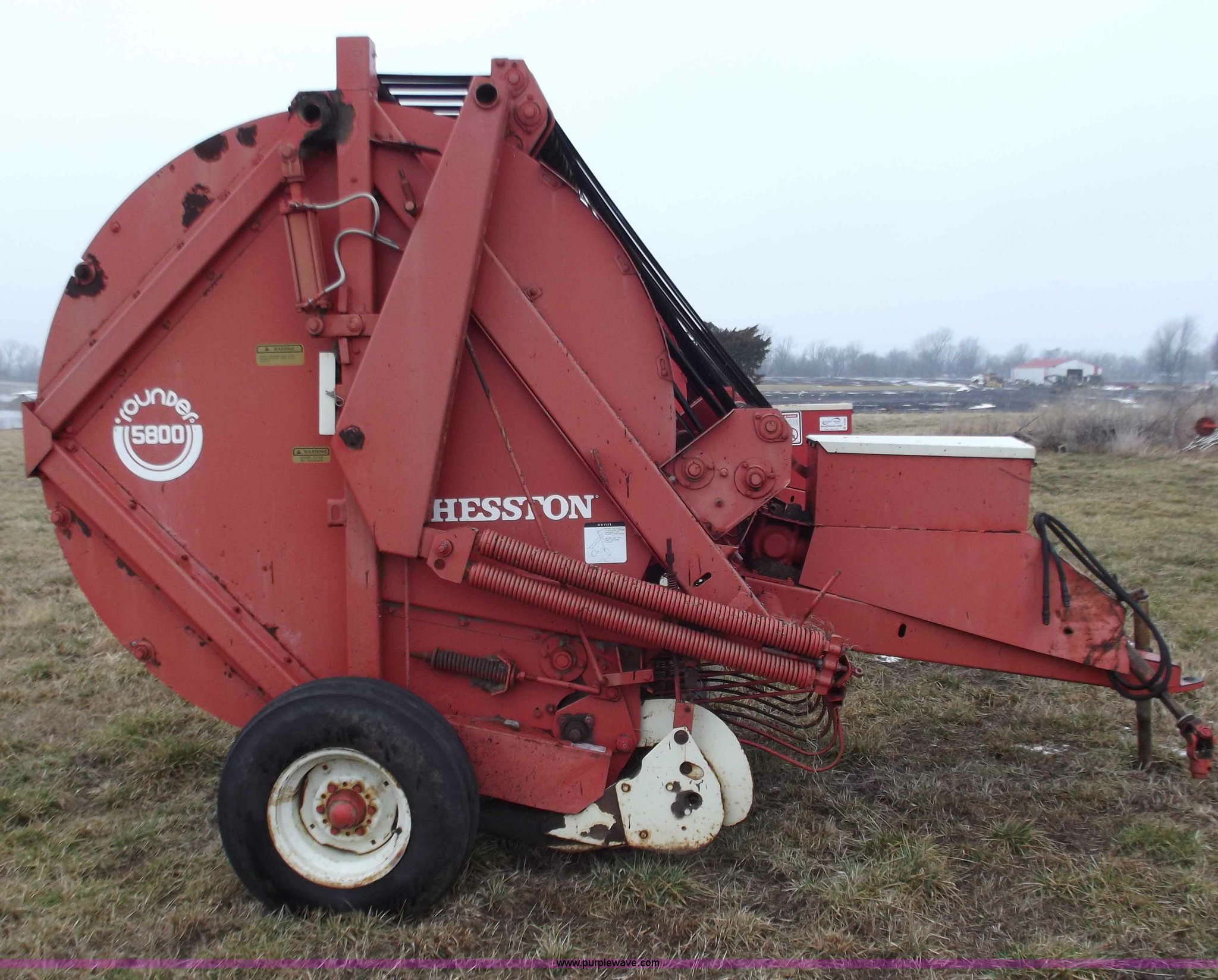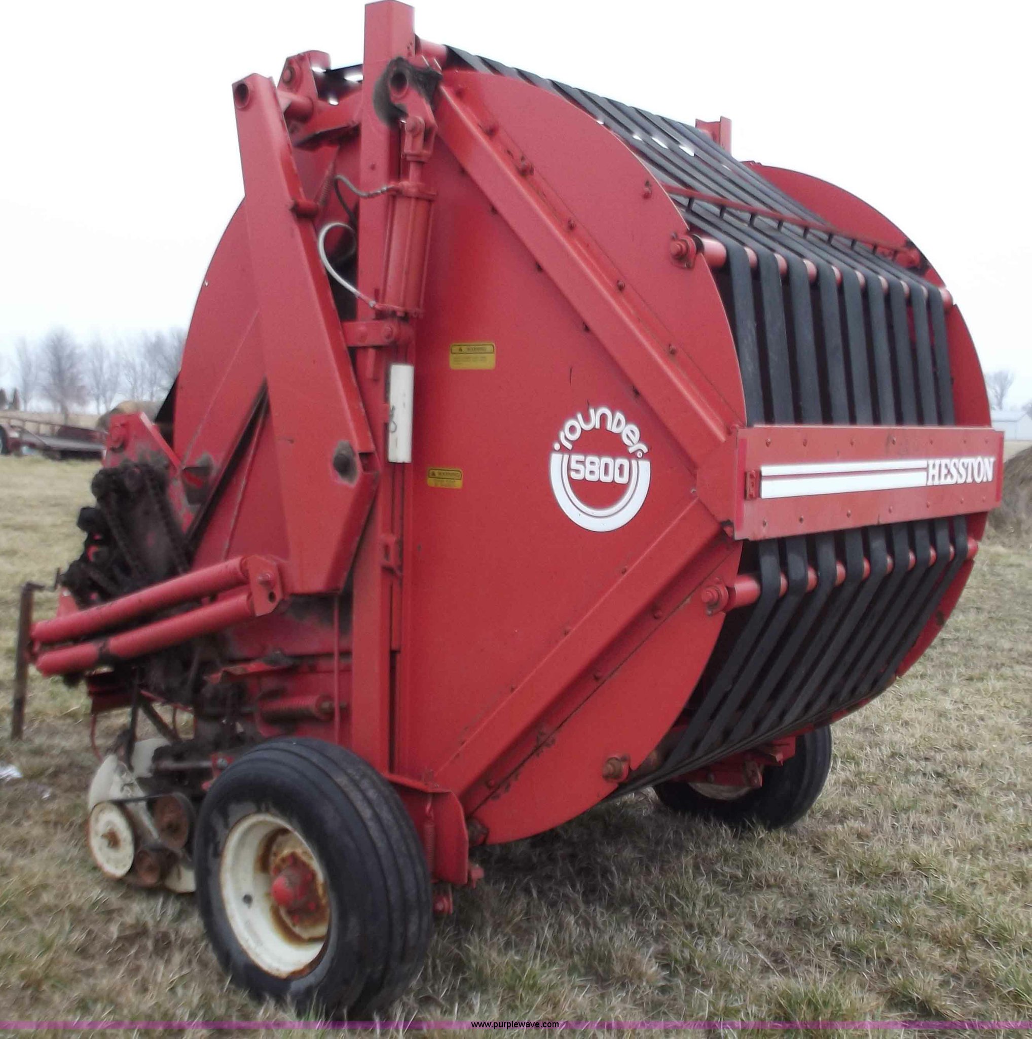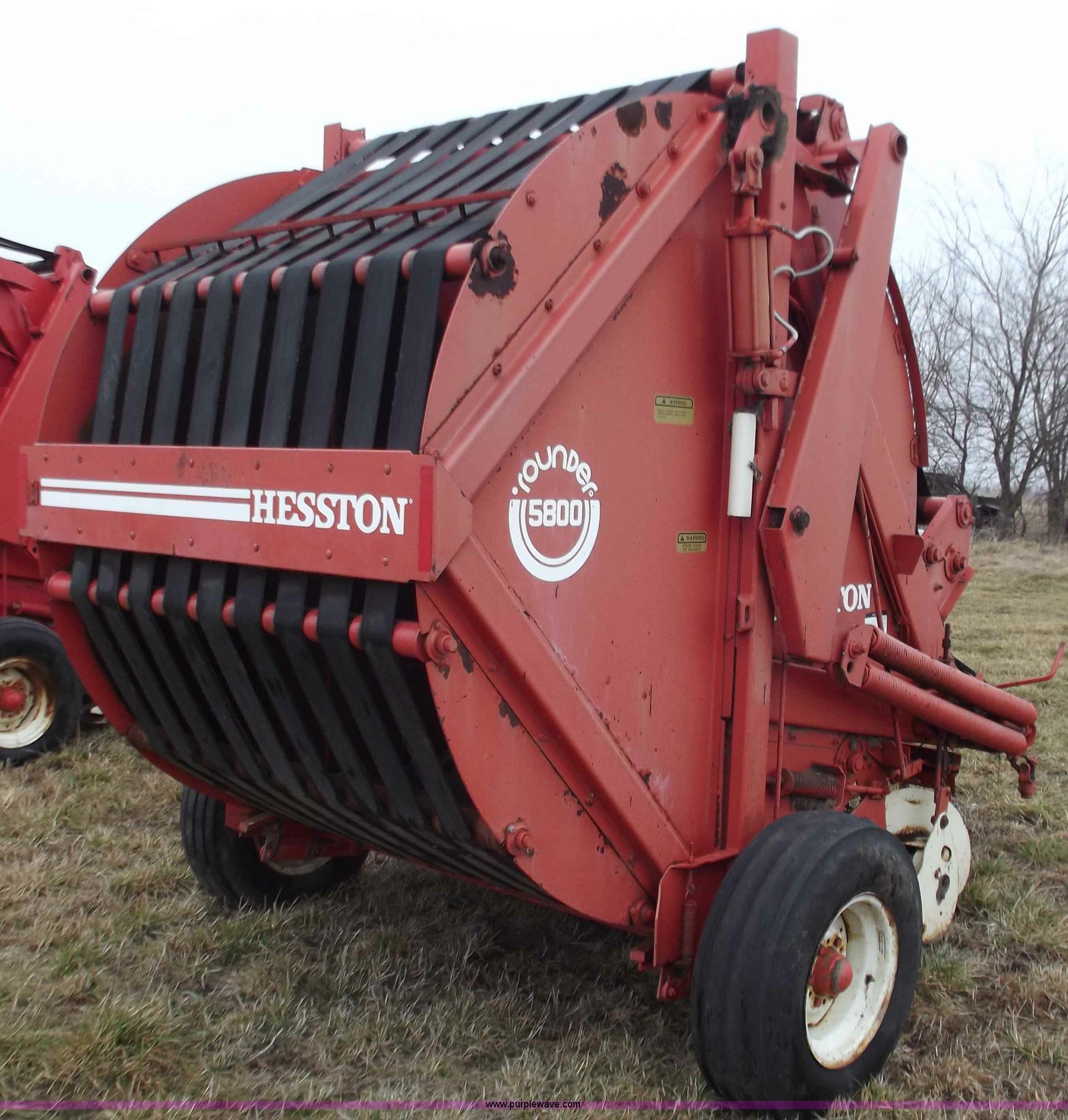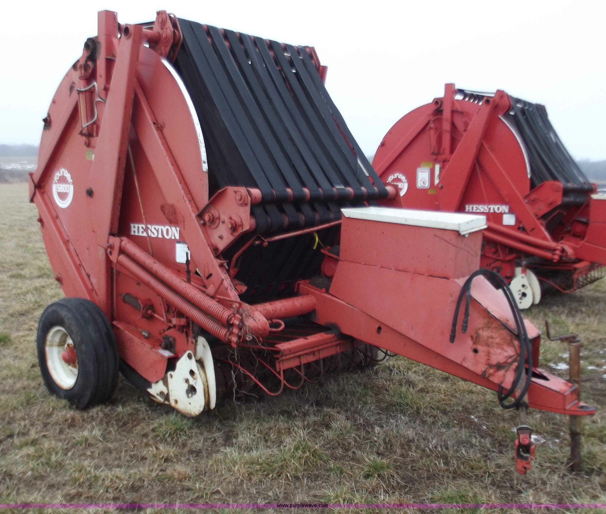 Purple Wave is selling a used Round Baler in Missouri. This item is a Hesston 5800 round baler with the following: 5x5 bales, 540 PTO, Pioneer fittings, Pin hitch, 9.5L-15 tires, Serial RB583338