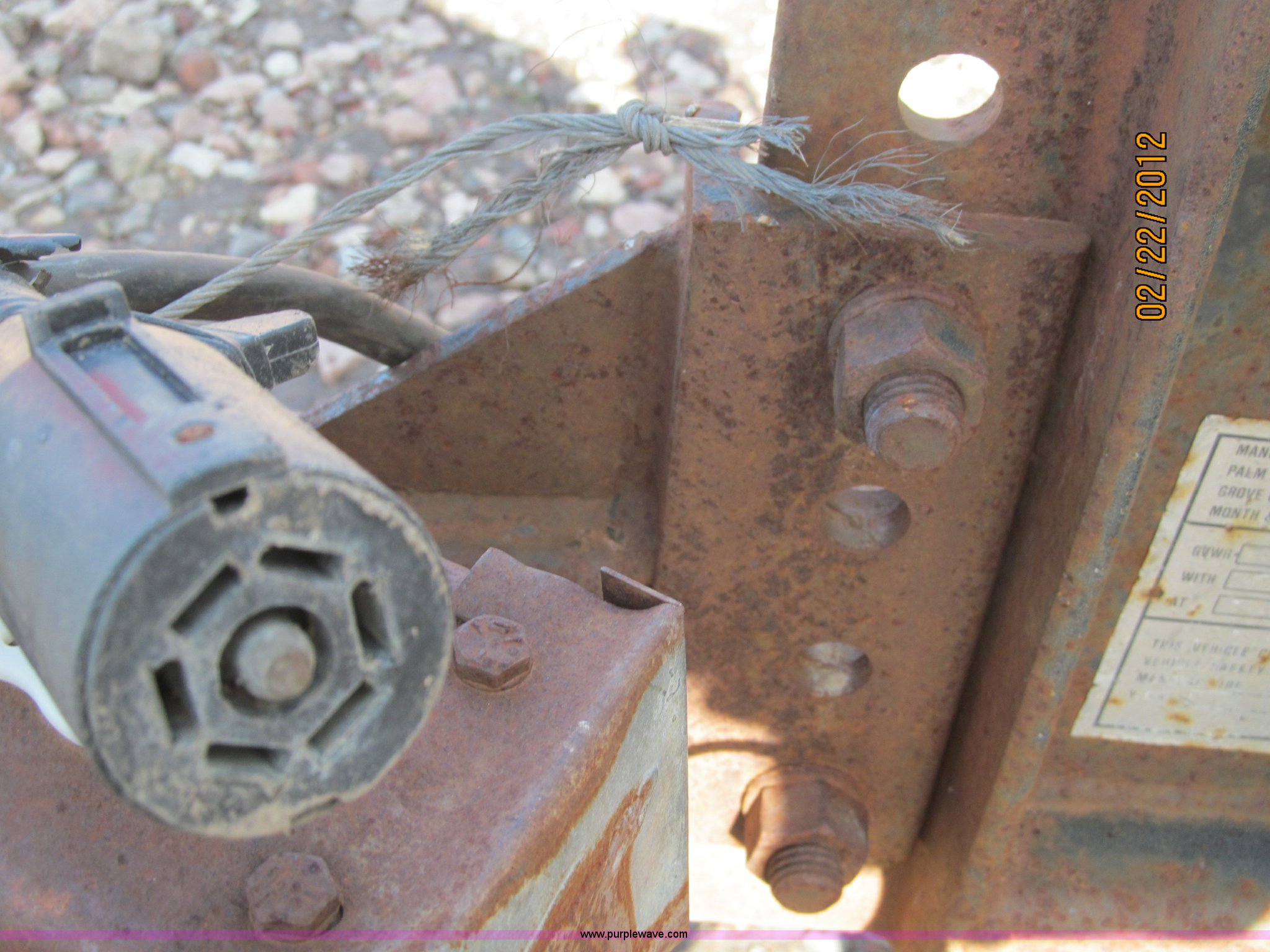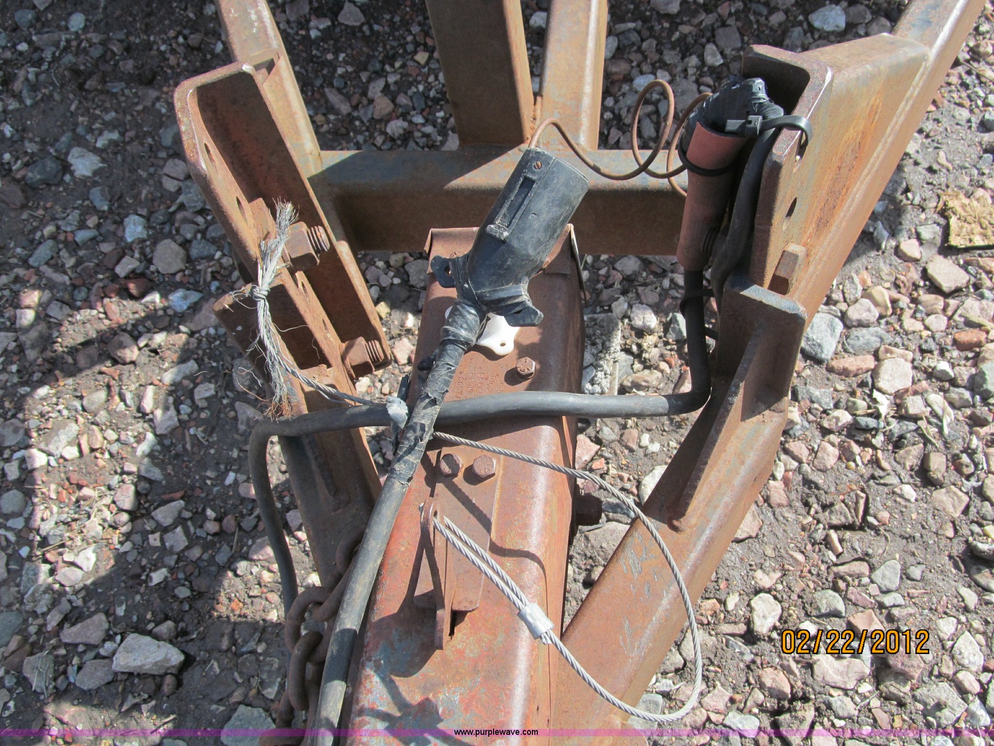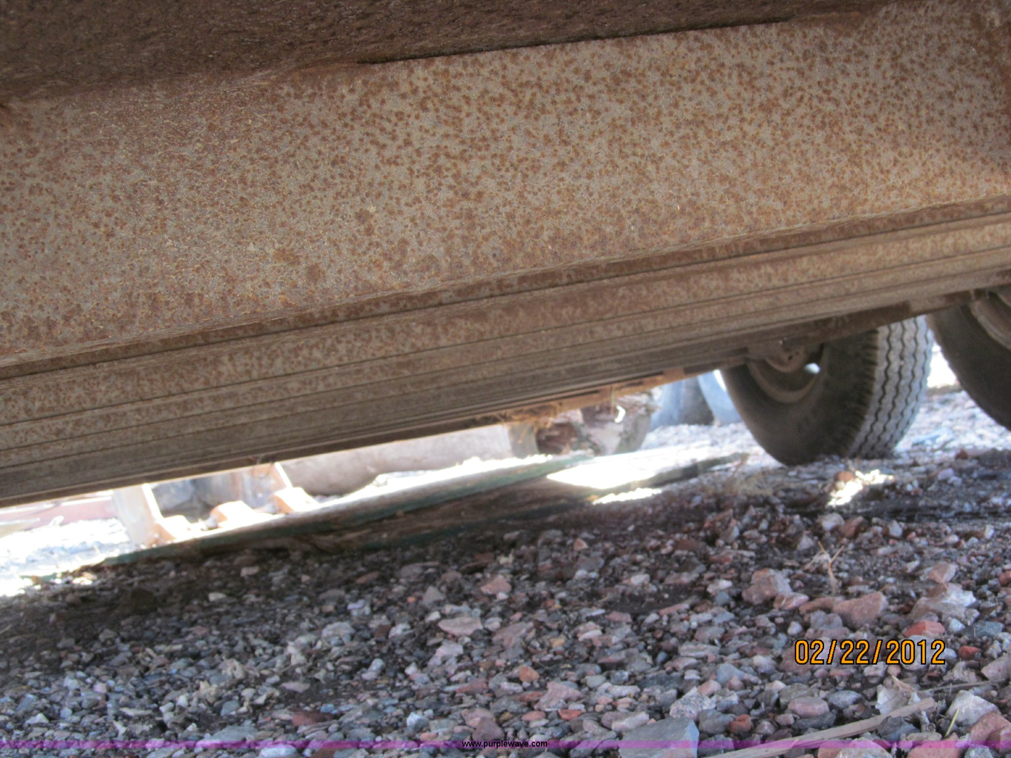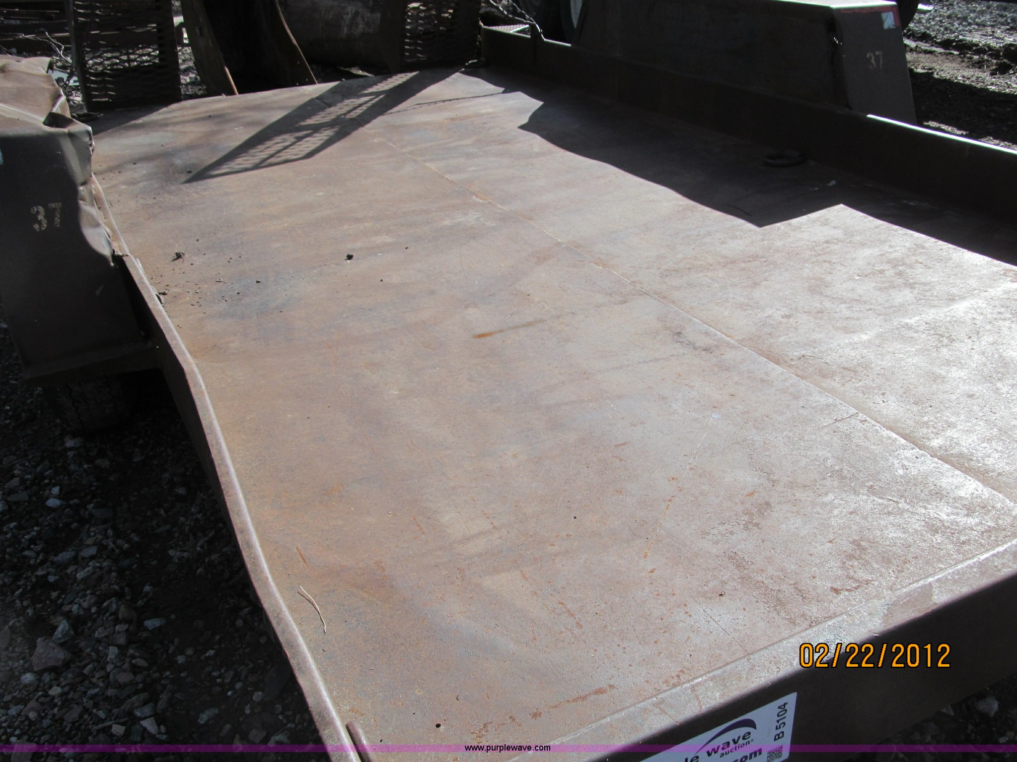 Purple Wave is selling a used Car or Utility Trailer in Nebraska. This item is a 1992 Towmaster T-6 PAN tandem axle trailer with the following: GVWR 8,300 lbs, Metal deck, D-rings on tongue and sides, Bulldog jack, Hydraulic brake actuator, 6,000 lbs gross, Model DA-91, Clam shell hitch, Fold down ramps with steel mesh grating, 7.00-15 tires, Spare tire bracket, no spare, Annual inspection Aug. 2011, (3) black steel rims, One white spoke rim, Fender damage, Rust