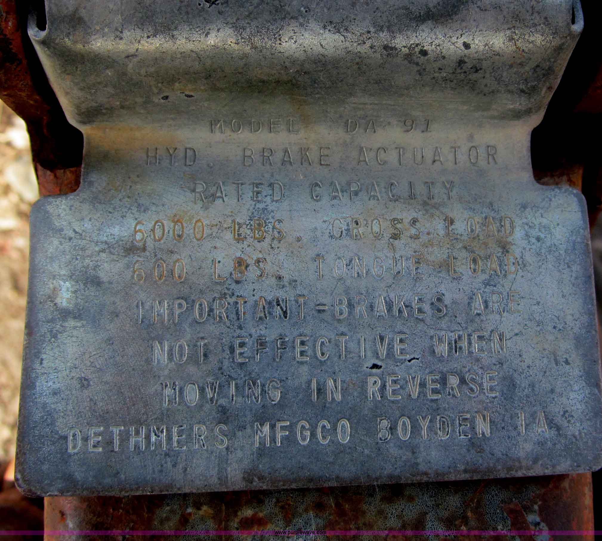 - Hydraulic brake actuator, 6,000 lbs gross