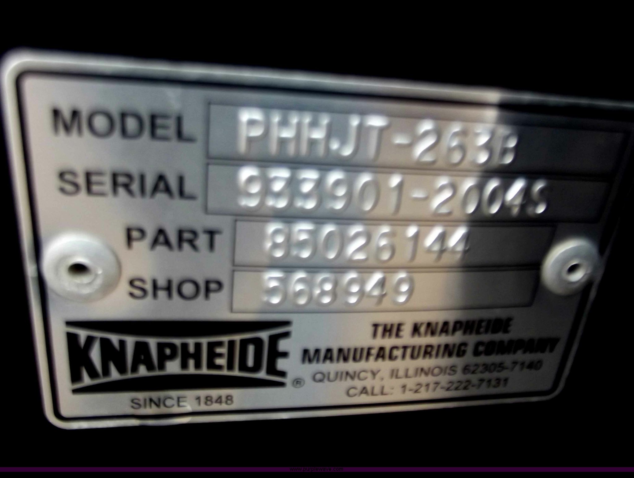 Purple Wave is selling a used Truck Part and Attach. in Missouri. This item is a Knapheide 26' flatbed with the following: 26'L x 8'W, 12" centers, All steel, Stake pockets, Rub rail, See-thru headache rack, Adjustable dual tie-down straps, Rear fork pockets to carry forklift, Taillights, Model PHHJT2C3B