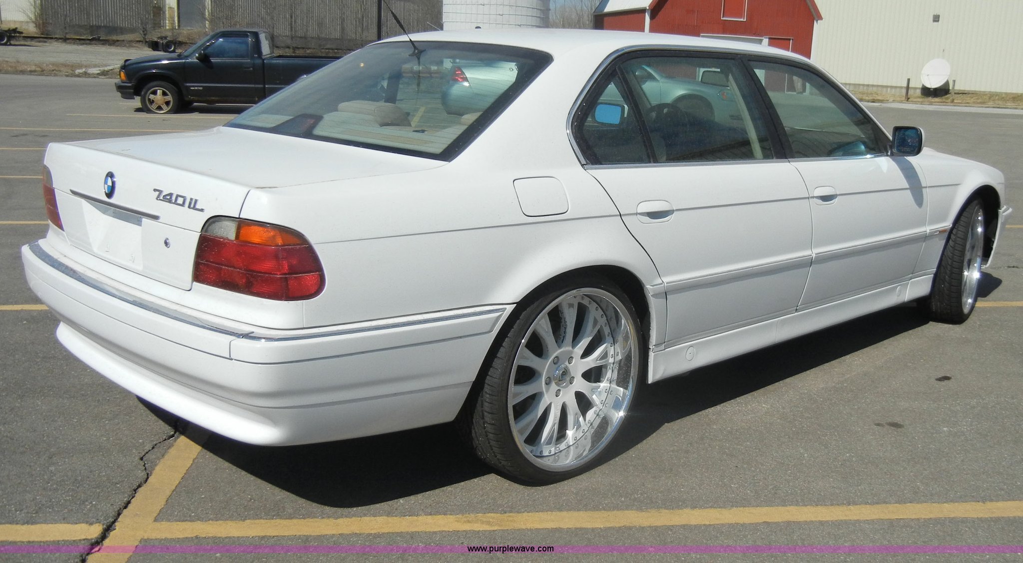 Purple Wave is selling a used Passenger Vehicle in Kansas. This item is a 1996 BMW 740iL with the following: 105,200 miles on odometer, 4.4L V8 EFI engine, Automatic transmission, AC and heat, Tilt, Cruise, AM/FM/CD, Power windows, locks, mirrors, and seats, Leather interior, Sunroof, Phone, Steering wheel radio controls, Asanti rims, 245/30AR22 tires, Hood latch inoperable, Dead battery, Engine leaks oil