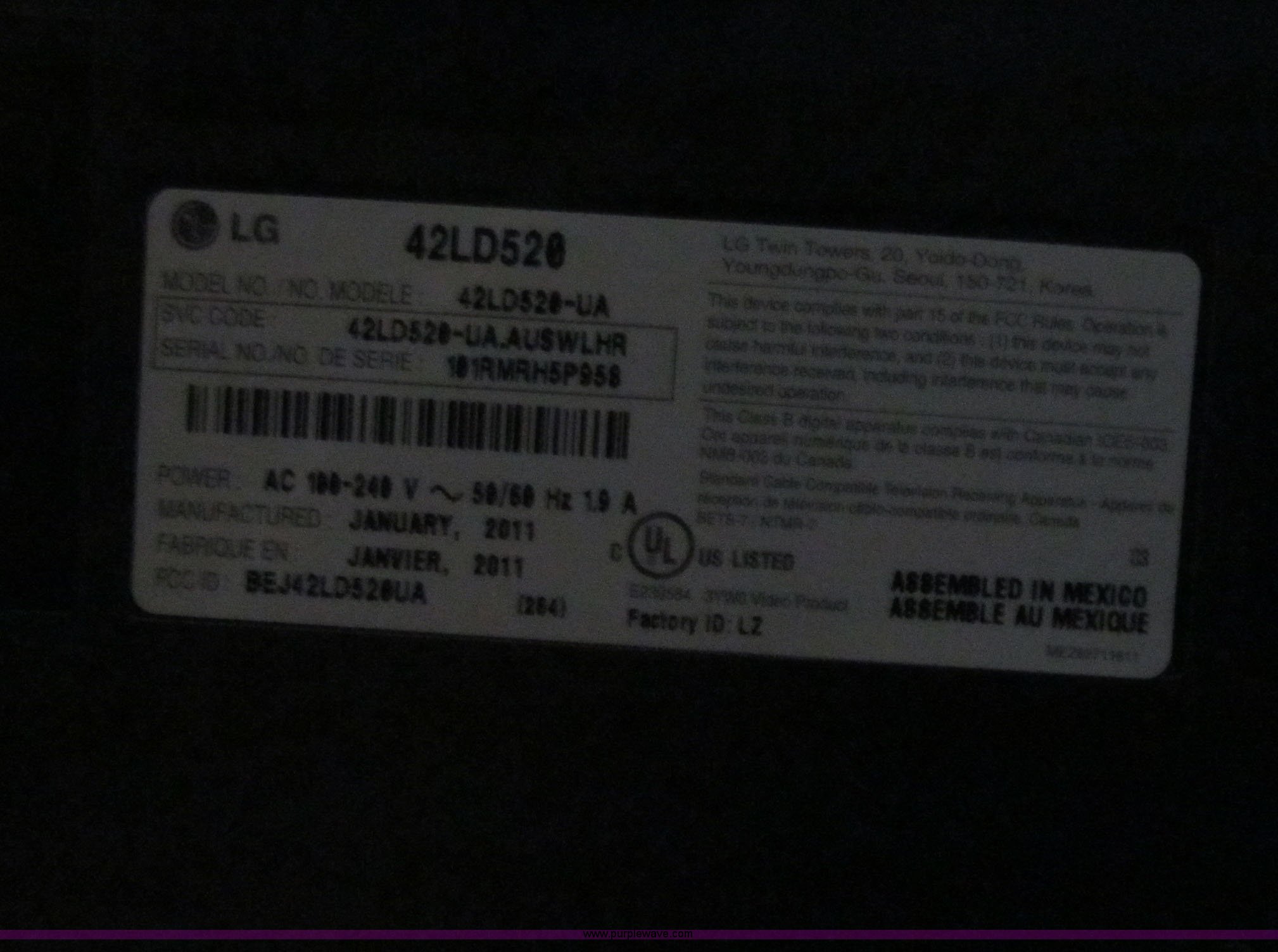 LG 42" LCD television with remote and stand has sold in Manhattan, Kansas for $440. Item S9339 sold on March 20th, 2012.