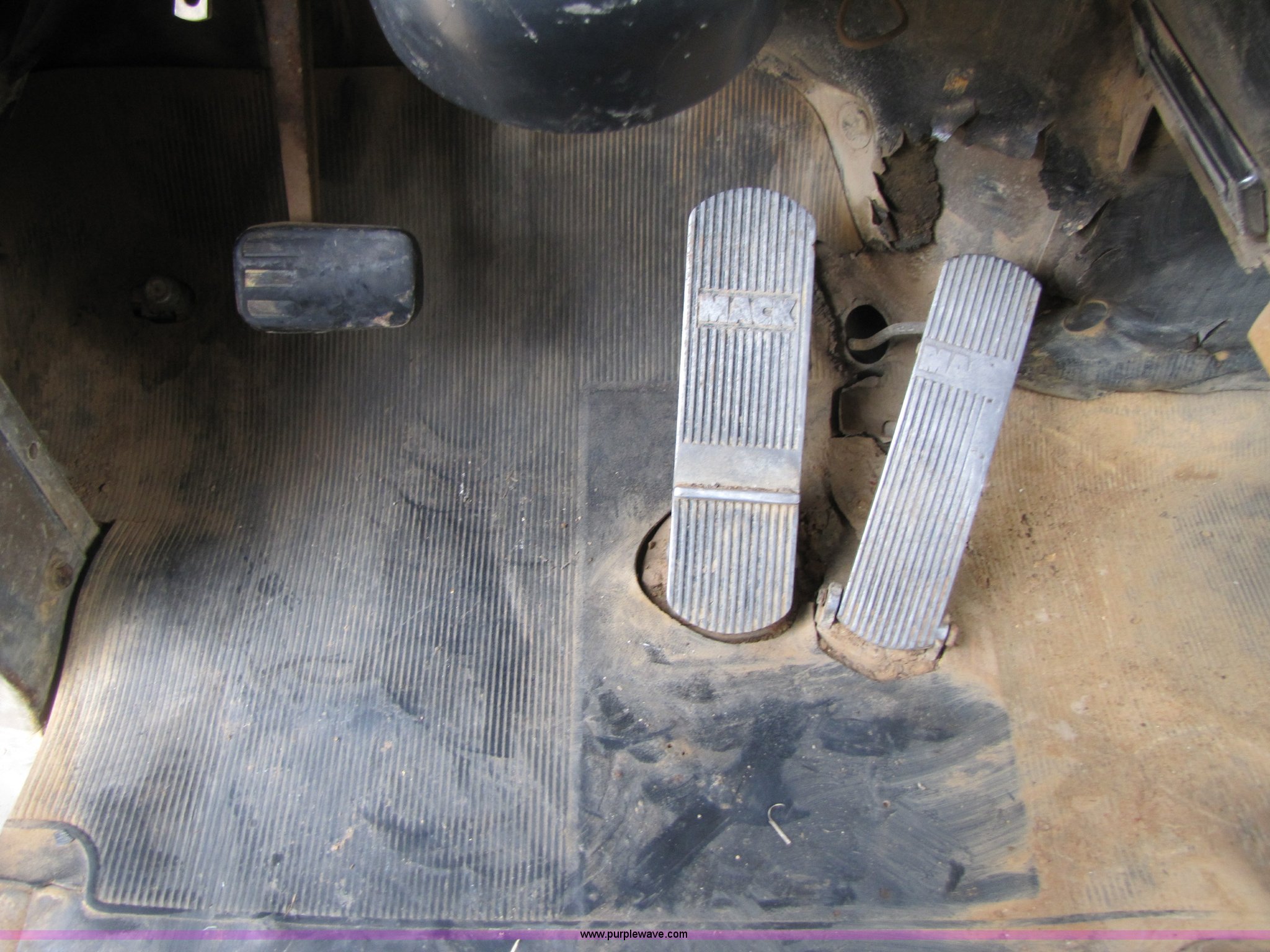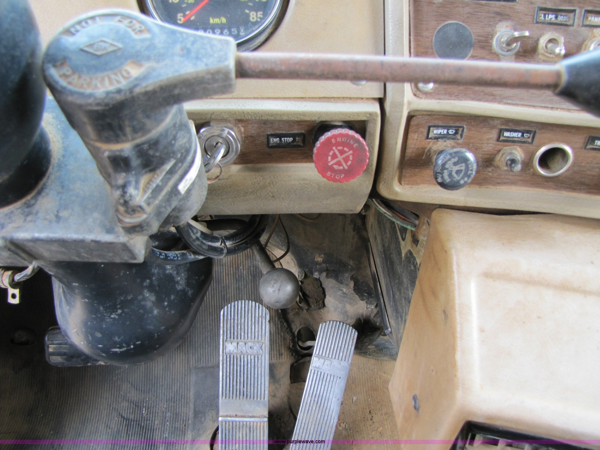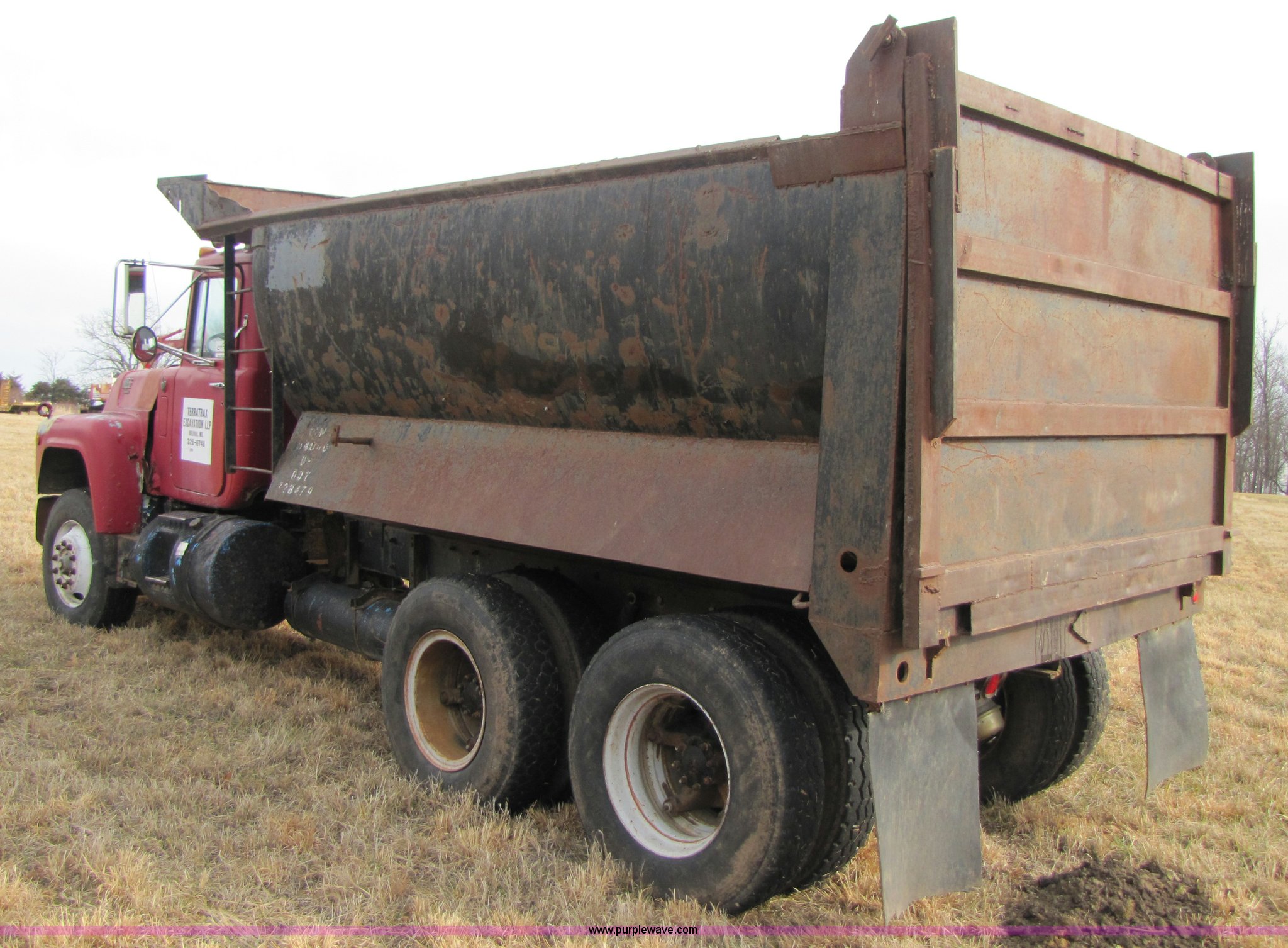 Purple Wave is selling a used Construction Dump Truck in Missouri. This item is a 1985 Mack RD686S dump truck with the following: 180,961 miles on odometer, 3,091 hours on meter, Mack E6 11.0L six cylinder diesel engine, Two-stick five speed manual transmission, Twin screw, Heater, Tilt, AM/FM/Cassette, Telescoping steering wheel, Air ride seat, Air ride cab, 14.5' barrel bed, Air operated end gate, 75 gallon fuel tank, Chrome bumper, Spring suspension, PTO, Air brakes, Jake brake, 11R22.5 tires, GVWR 52,000 lbs, FAWR 12,000 lbs, IAWR 20,000 lbs, RAWR 20,000 lbs, 202" wheelbase, Speedometer does not work