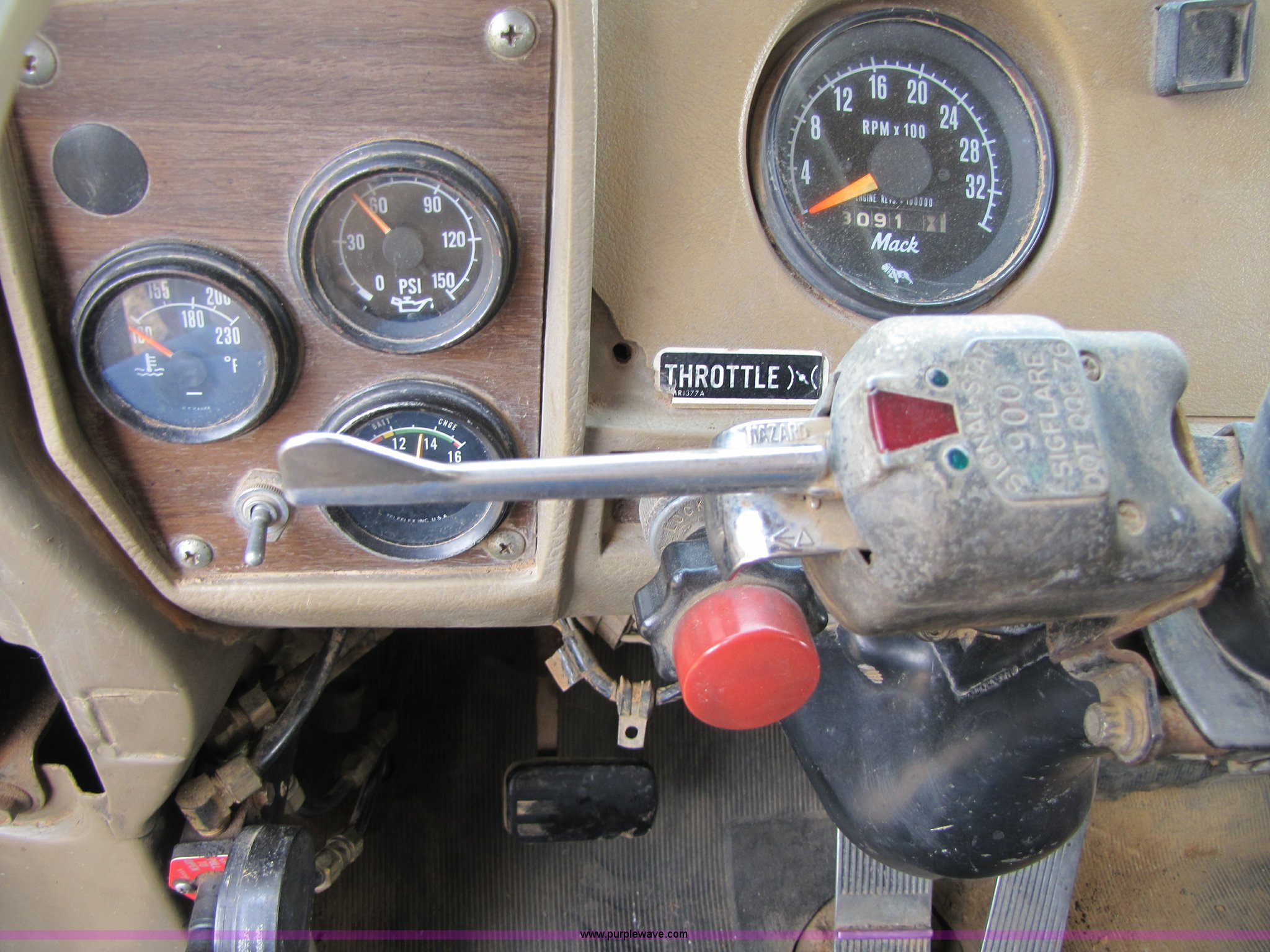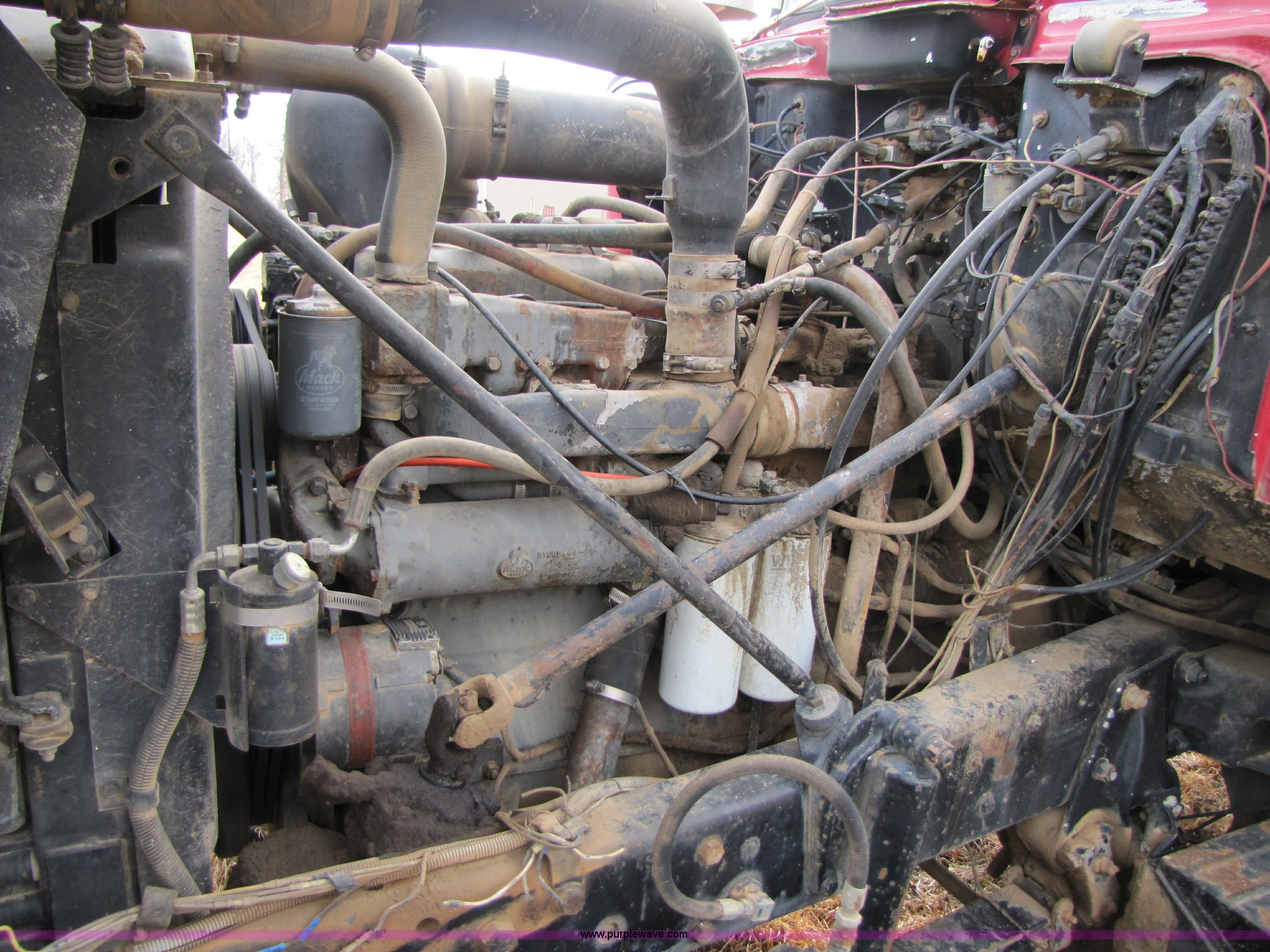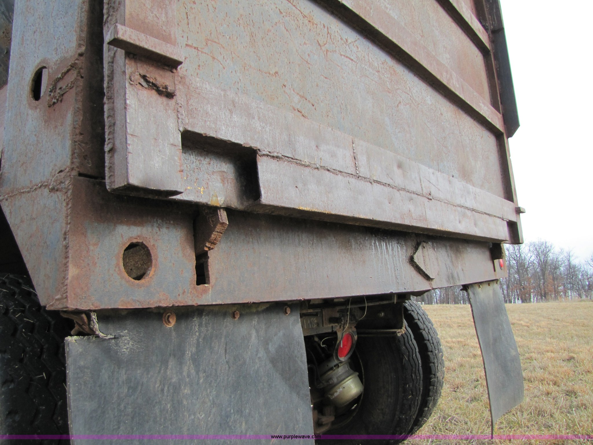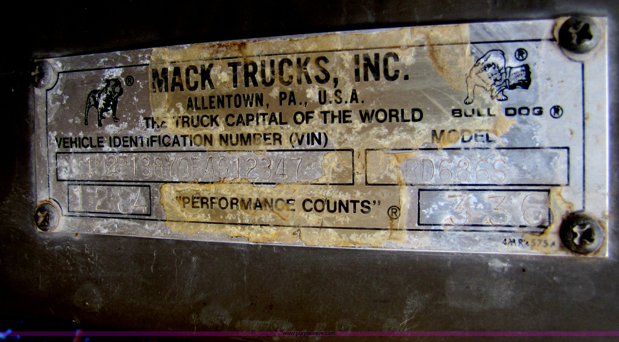 Purple Wave is selling a used Construction Dump Truck in Missouri. This item is a 1985 Mack RD686S dump truck with the following: 180,961 miles on odometer, 3,091 hours on meter, Mack E6 11.0L six cylinder diesel engine, Two-stick five speed manual transmission, Twin screw, Heater, Tilt, AM/FM/Cassette, Telescoping steering wheel, Air ride seat, Air ride cab, 14.5' barrel bed, Air operated end gate, 75 gallon fuel tank, Chrome bumper, Spring suspension, PTO, Air brakes, Jake brake, 11R22.5 tires, GVWR 52,000 lbs, FAWR 12,000 lbs, IAWR 20,000 lbs, RAWR 20,000 lbs, 202" wheelbase, Speedometer does not work