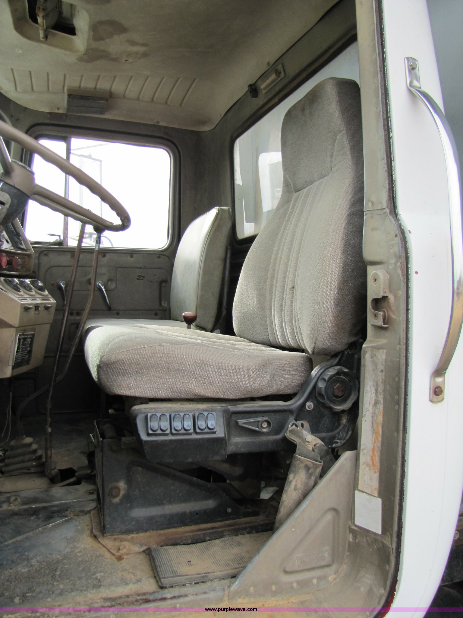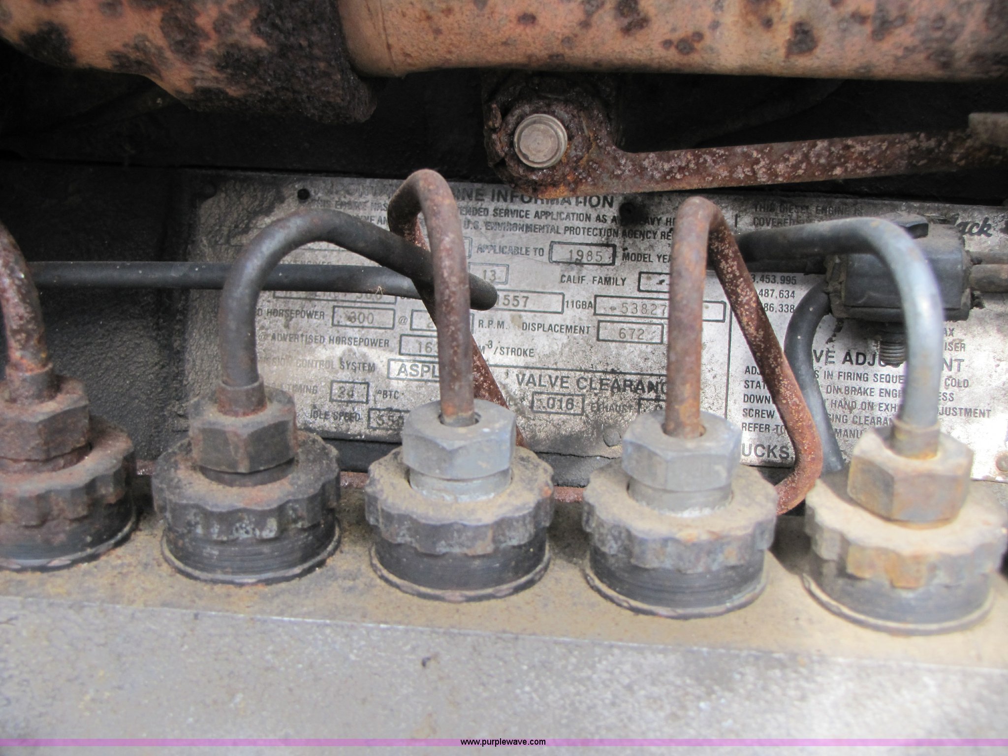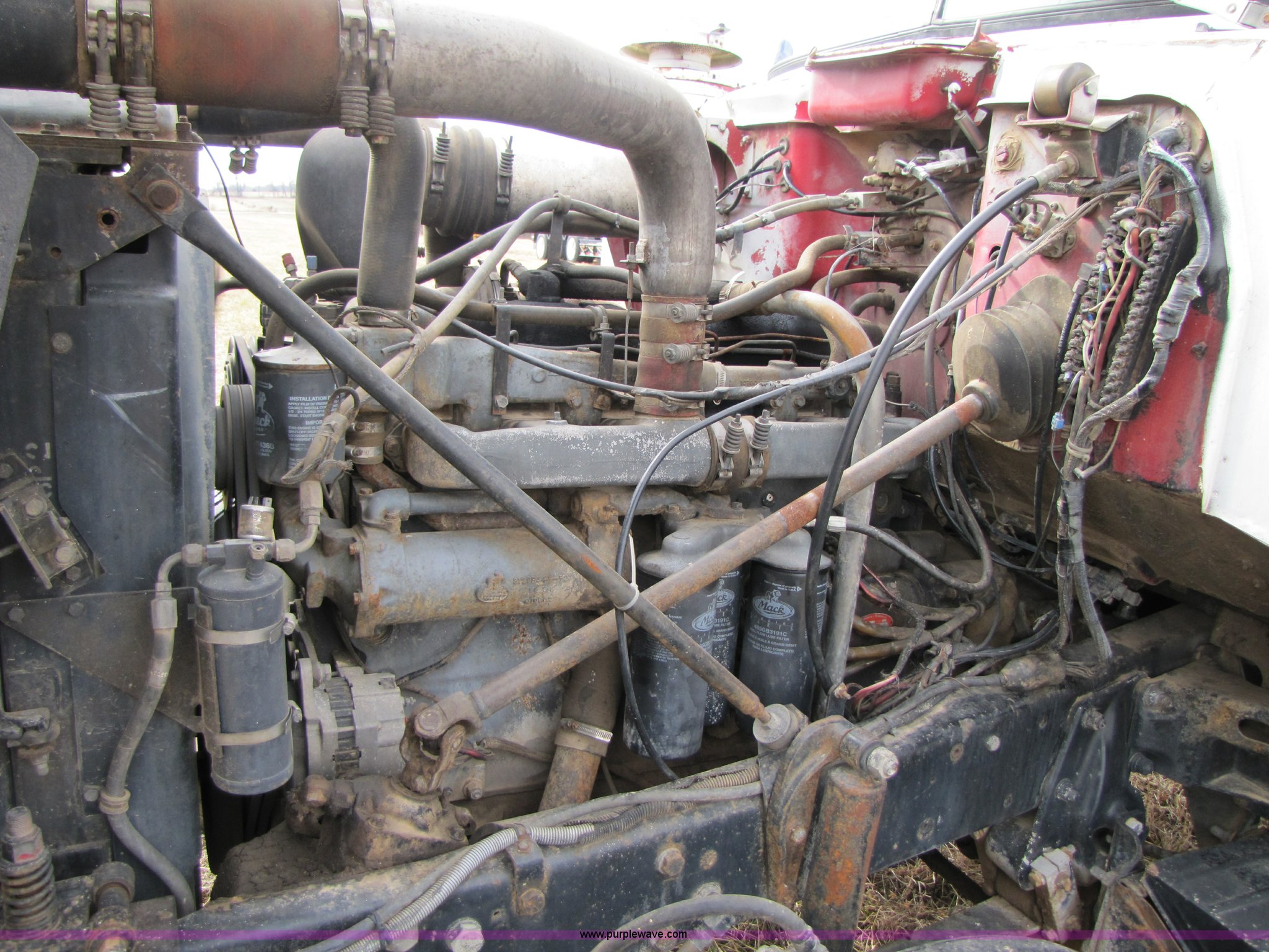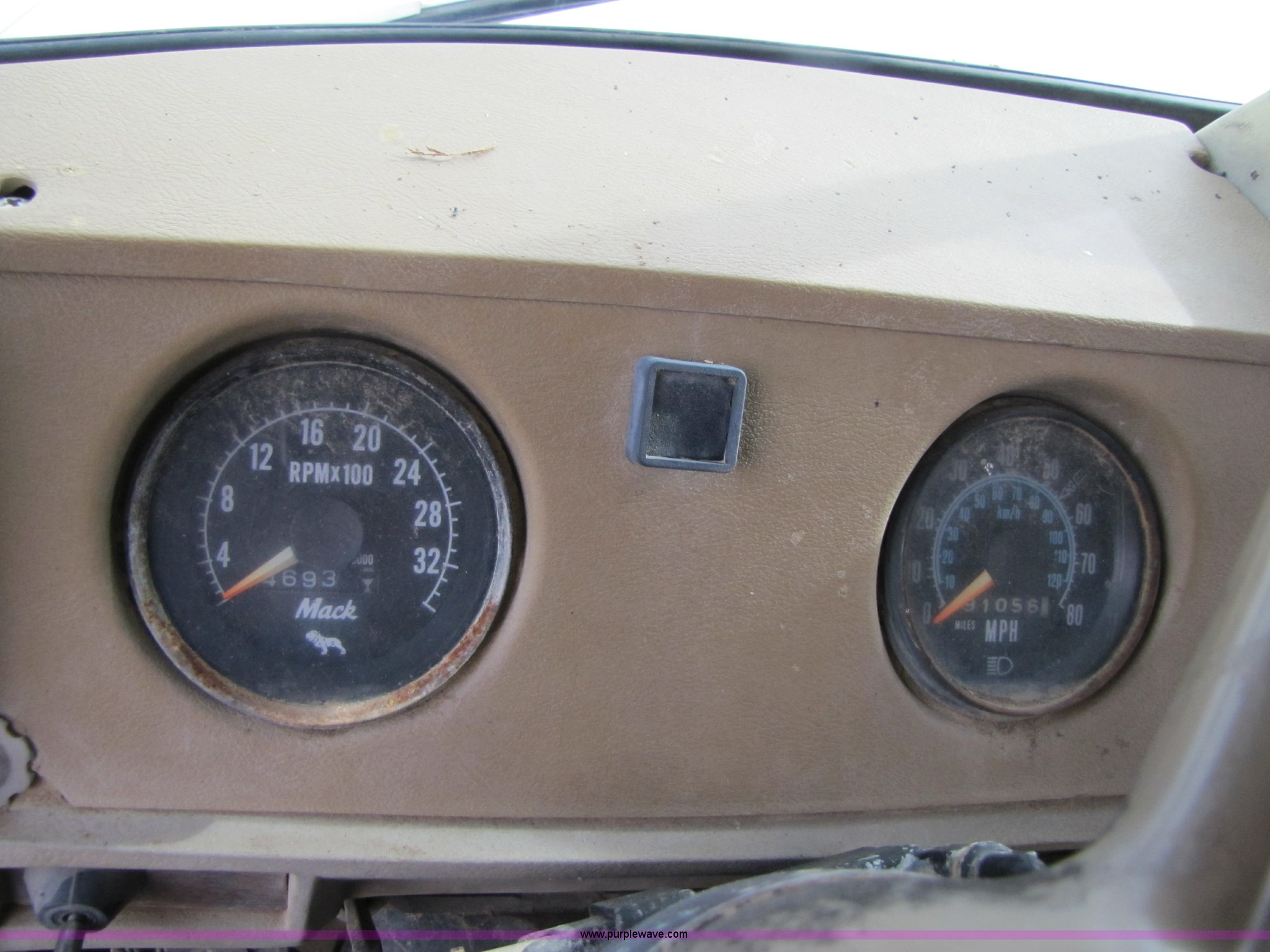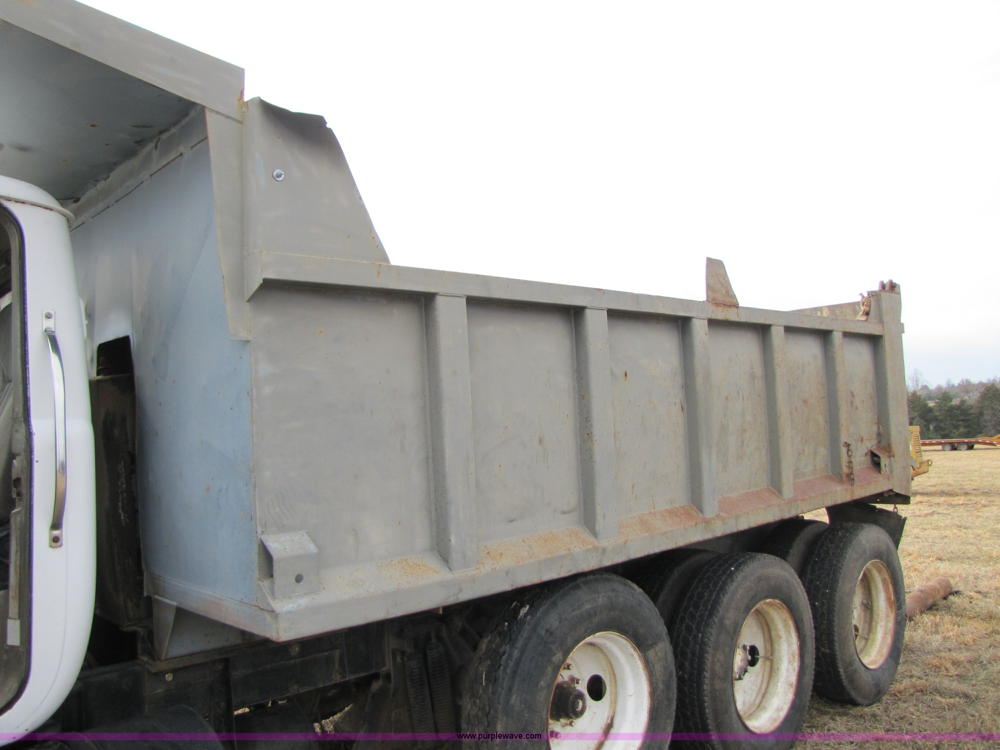 Purple Wave is selling a used Construction Dump Truck in Missouri. This item is a 1985 Mack R686ST dump truck with the following: 191,050 miles on odometer, 4,693 hours on meter, Mack E6 11.0L diesel engine, 300 HP, Serial 53827P1, Two-stick five speed manual transmission, Maxi-torque, Twin screw, Heater, AM/FM/Cassette, Telescoping wheel, Air ride seat, Air ride cab, 15' dump bed, Single ram hoist, Exterior visor, Chrome bumper, Pintle hitch, Dual 75 gallon fuel tanks, Spring suspension, PTO, Air brakes, Tag axle, 11R24.5 tires, GVWR 62,000 lbs, FAWR 12,000 lbs, IAWR 20,000 lbs, RAWR 20,000 lbs, 223" wheelbase