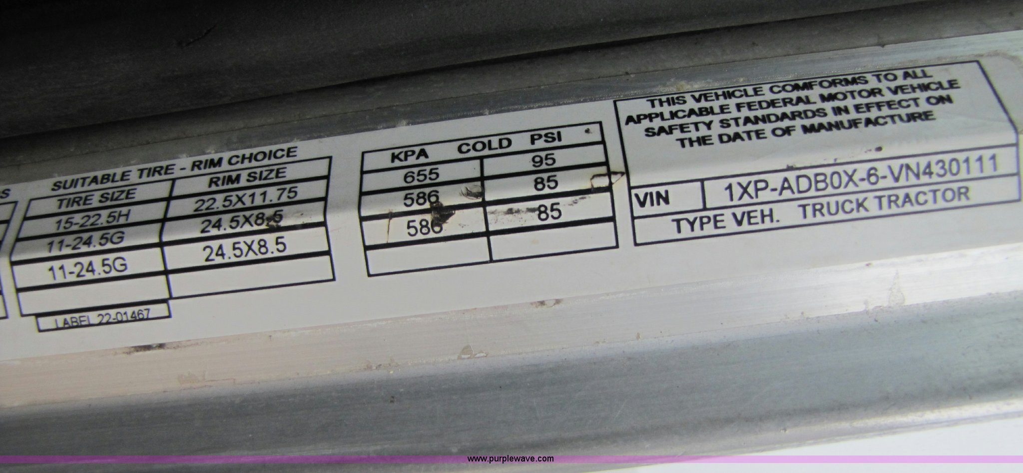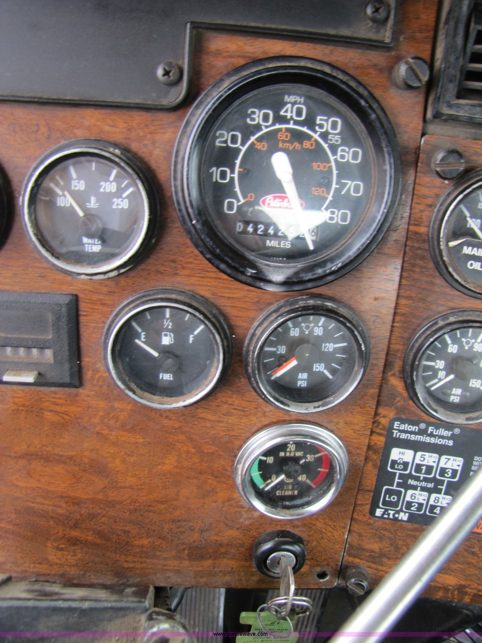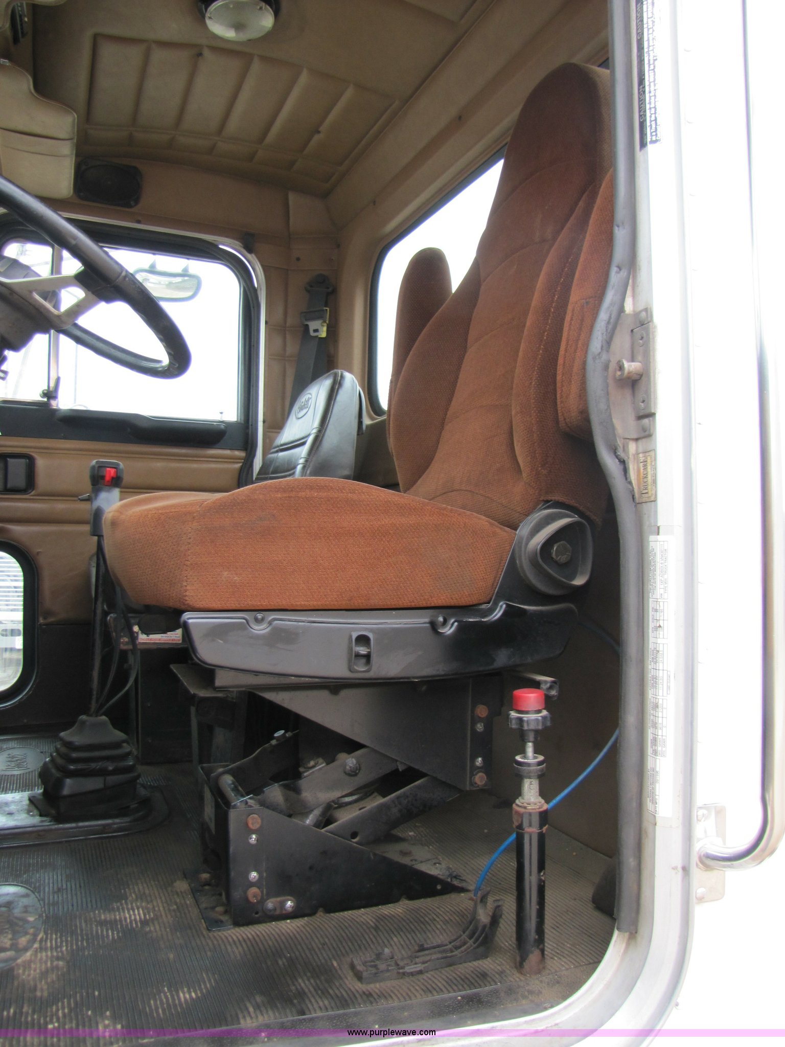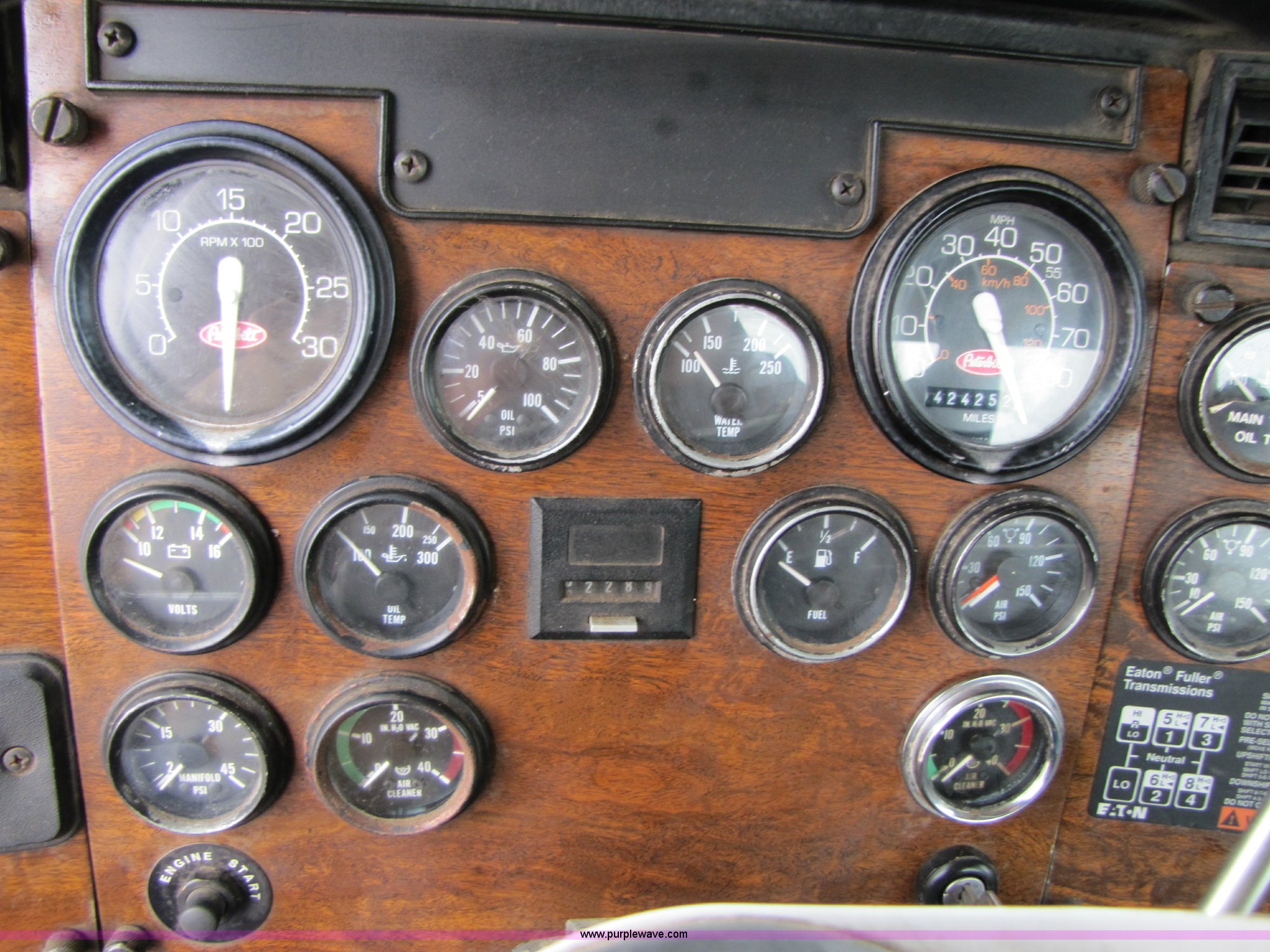 Purple Wave is selling a used Truck Tractor in Missouri. This item is a 1997 Peterbilt 357 semi truck with the following: 424,252 miles on odometer, Caterpillar 3406 14.6L diesel engine, Eaton Fuller 13 speed manual transmission, Twin screw, AC and heat, AM/FM/CD, Passenger daylight door, Heated mirrors, Air ride seat, Air ride cab, Exterior visor, Chrome bumper, Block heater, 50 and 70 gallon aluminum fuel tanks, PTO, Wet kit, Dump valves, Air suspension, Air brakes, Front pin hitch, (8) new drive tires, 11R22.5 tires, GVWR 58,000 lbs, FAWR 16,000 lbs, IAWR 21,000 lbs, RAWR 21,000 lbs, 168" wheelbase