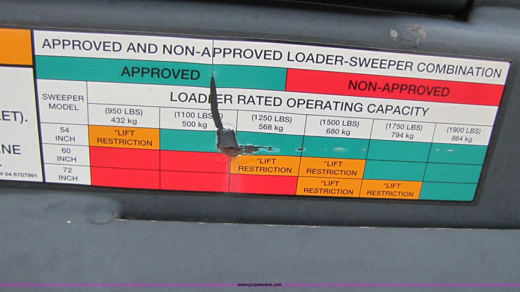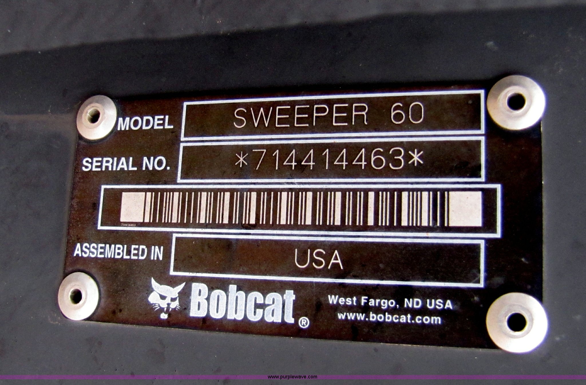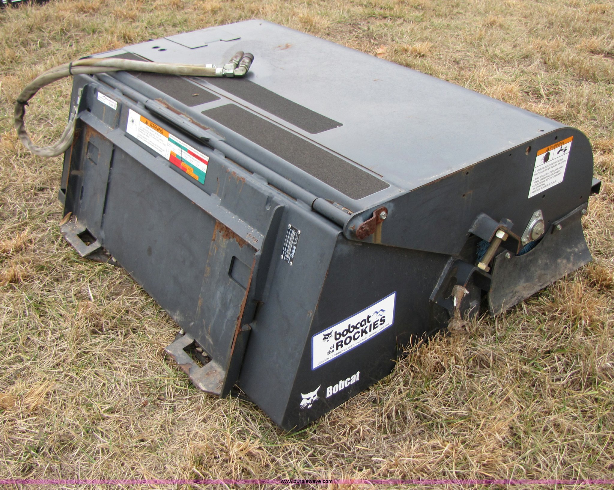 Purple Wave is selling a used Skid Steer Attach. in Missouri. This item is a Bobcat 60" sweeper broom with the following: Flat faced fittings, Serial 7144414463