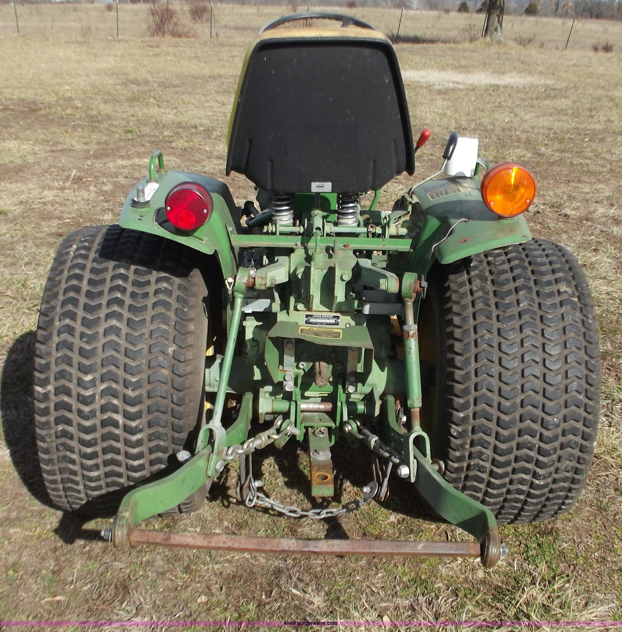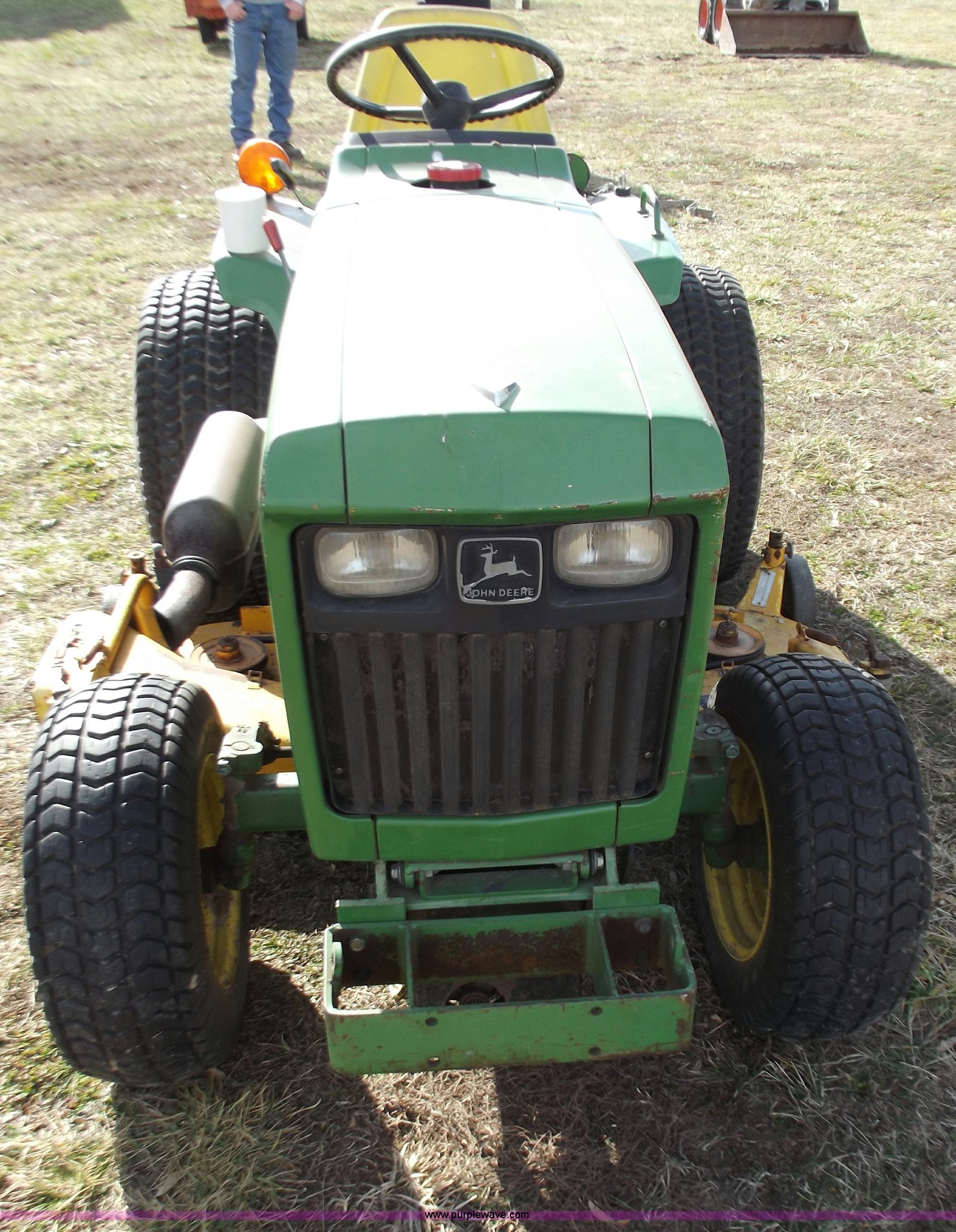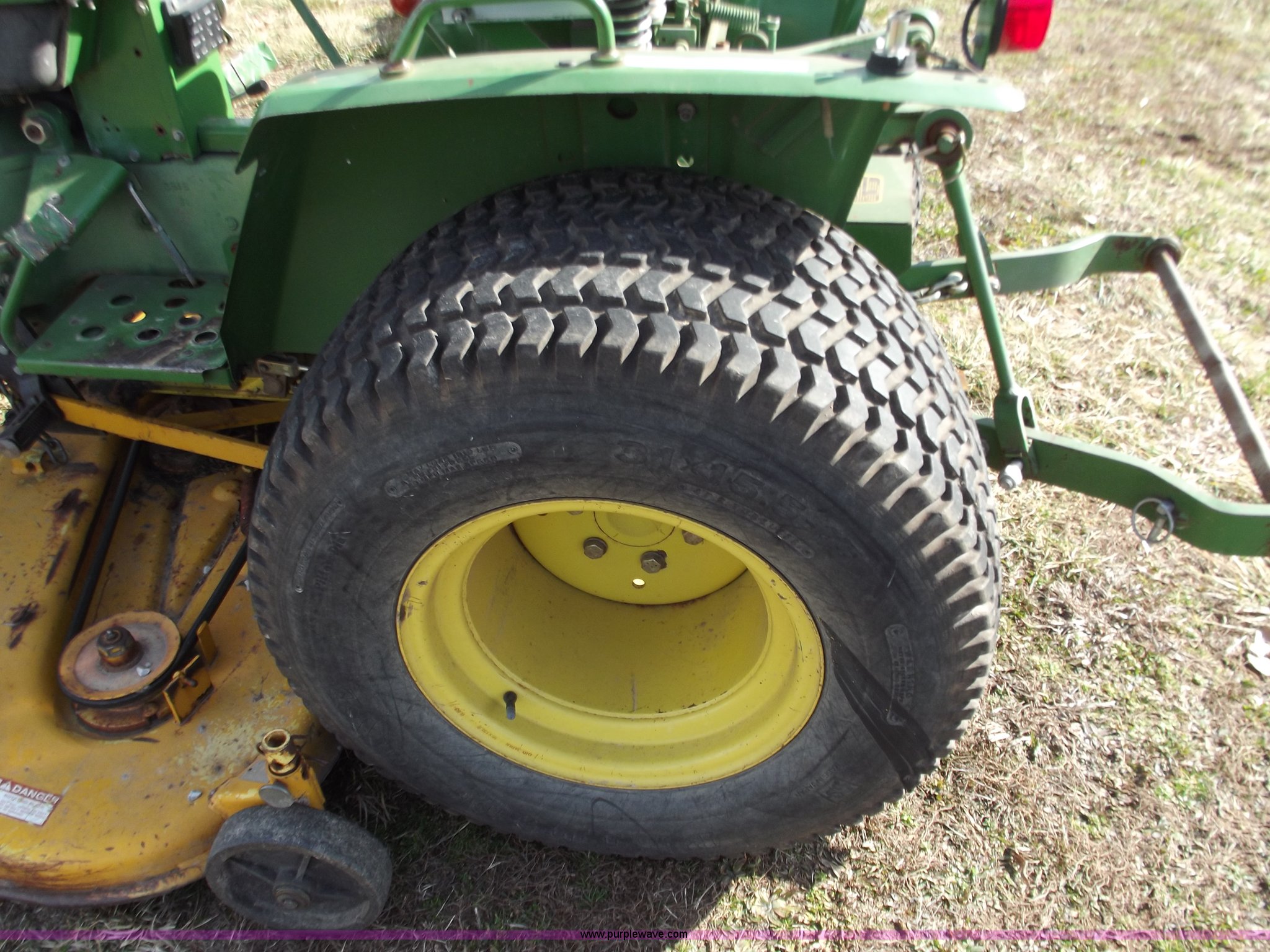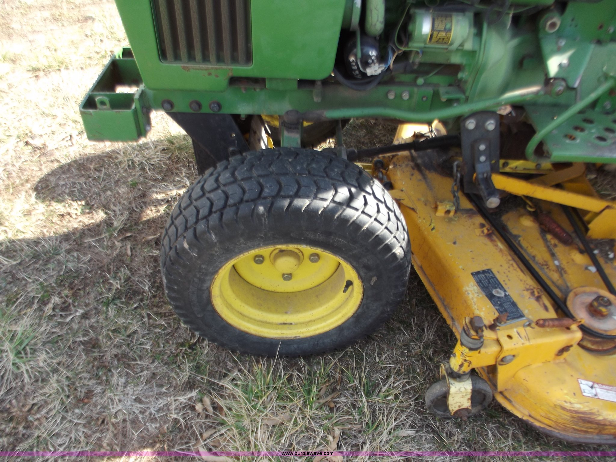 Purple Wave is selling a used Lawn Mower in Missouri. This item is a John Deere 650 lawn and garden tractor with the following: 1,310 hours on meter, Two cylinder diesel engine, Eight speed transmission, 60" mower deck, Front PTO shaft, mid and rear, Three point, Spring ride seat, 23x8.50-12 front tires, 31x15.5-15 rear tires, Serial CH0650S009866
