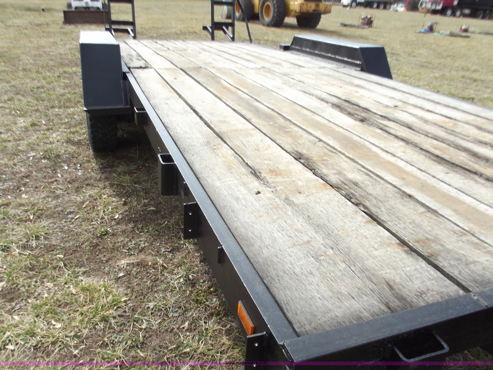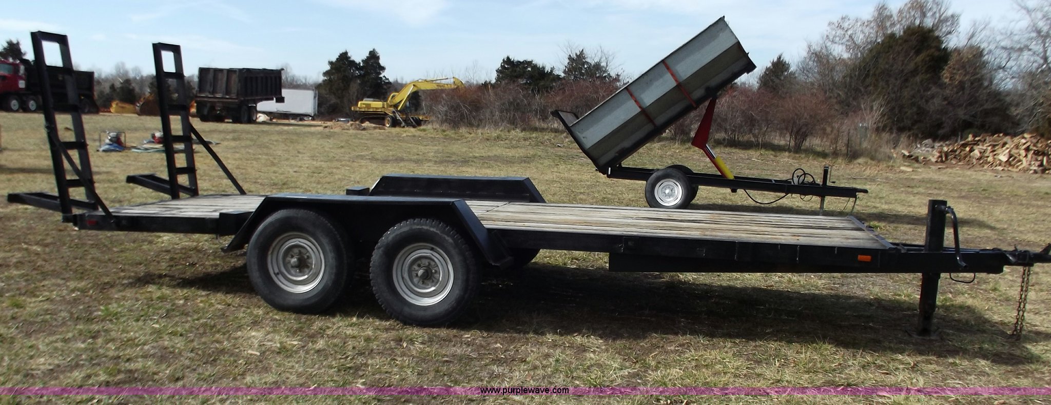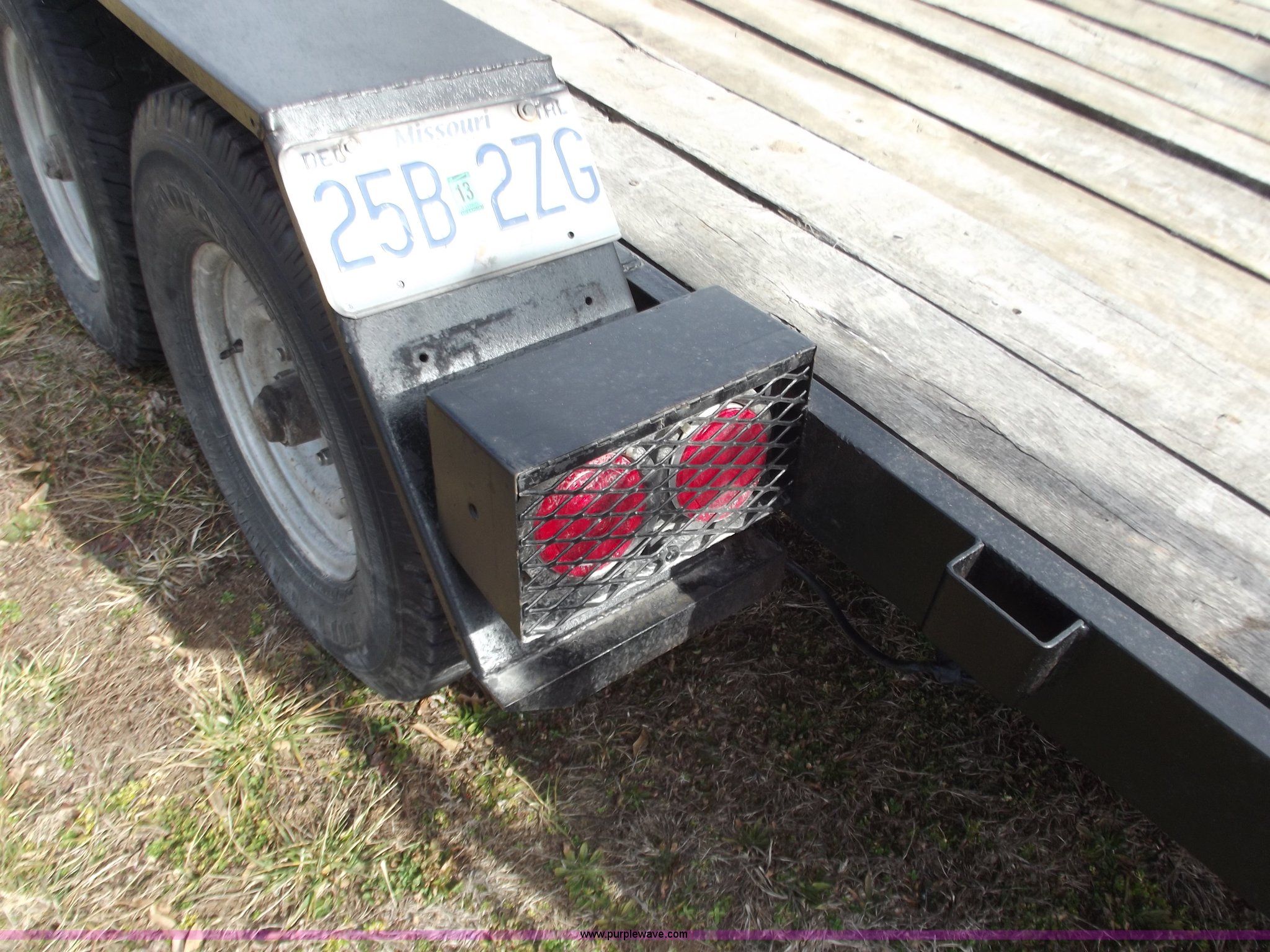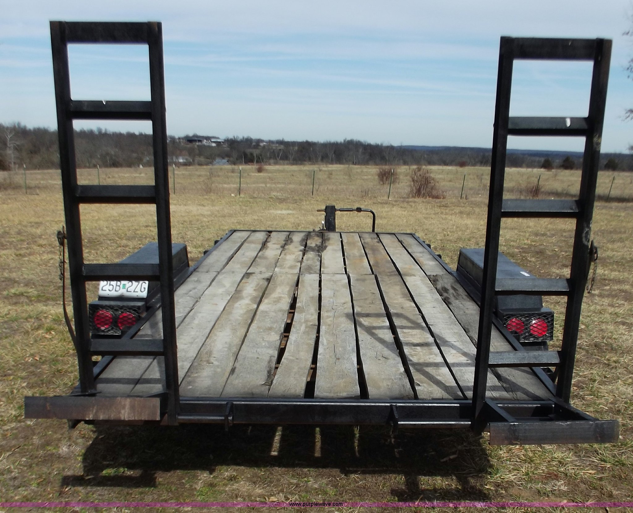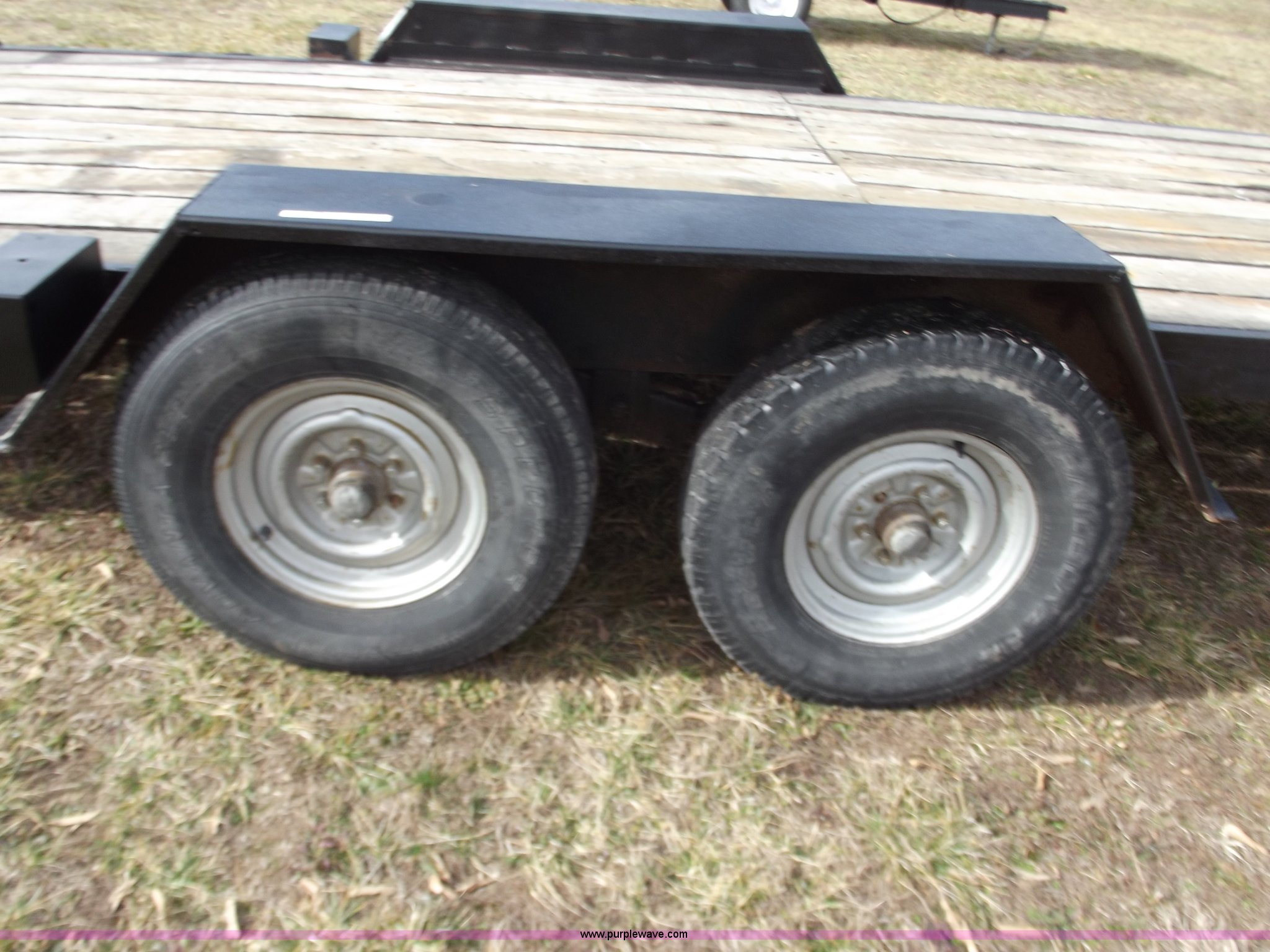 Purple Wave is selling a used Equip. Trailer in Missouri. This item is a 1995 shop built equipment trailer with the following: 20' x 7', (2) 5,000 lb axles, 5' fold down ramps, Steel fenders, Stake pockets, Electric brakes on both axles, Tongue jack, 2" ball, Spring suspension, 235/80R16 tires