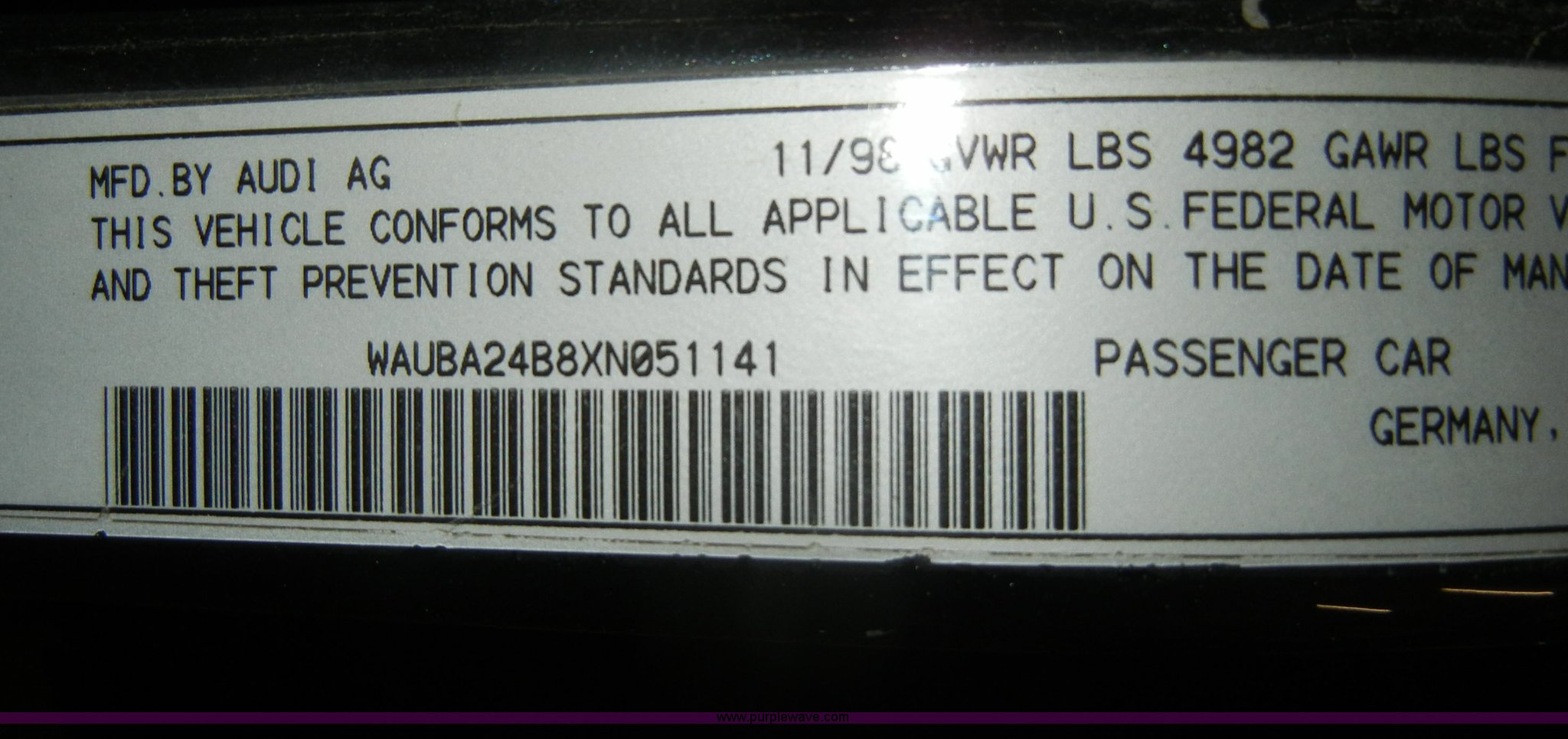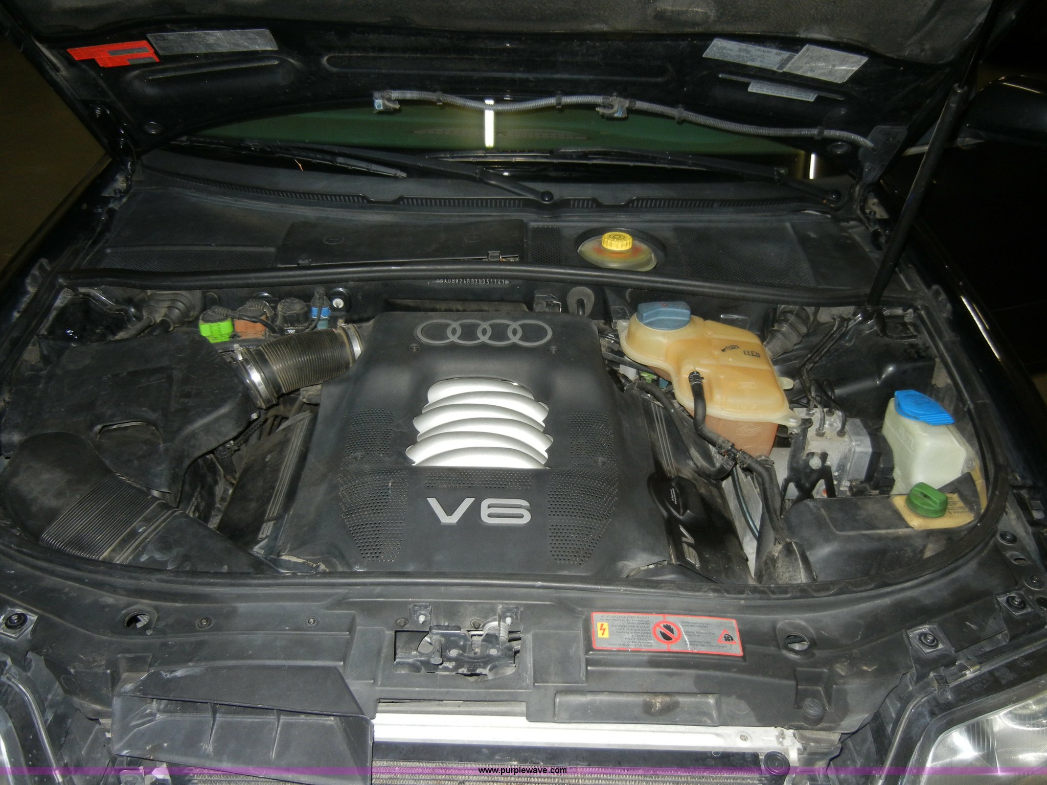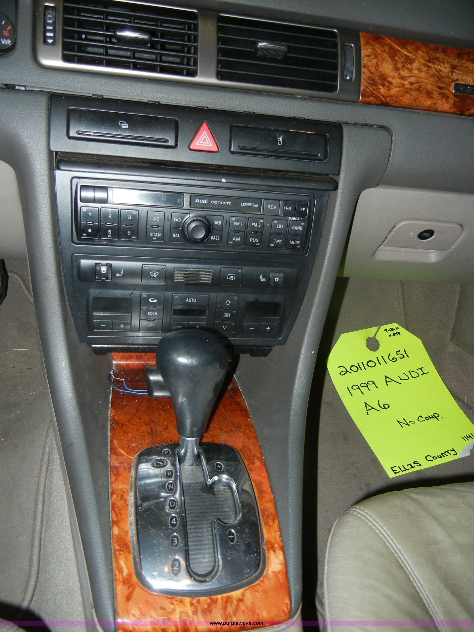 Purple Wave is selling a used Passenger Vehicle in Kansas. This item is a 1999 Audi A6 Quattro with the following: 204,535 miles on odometer, 2.8L V6 SFI engine, Automatic transmission, AC and heat, Tilt, Cruise, AM/FM/CD, Power windows, locks, mirrors, and seats, Heated seats, Vinyl interior, Sunroof, 205/55R16 tires, Interior/exterior cosmetic damage, Driver interior door panel missing, Service light on, Chipped windshield