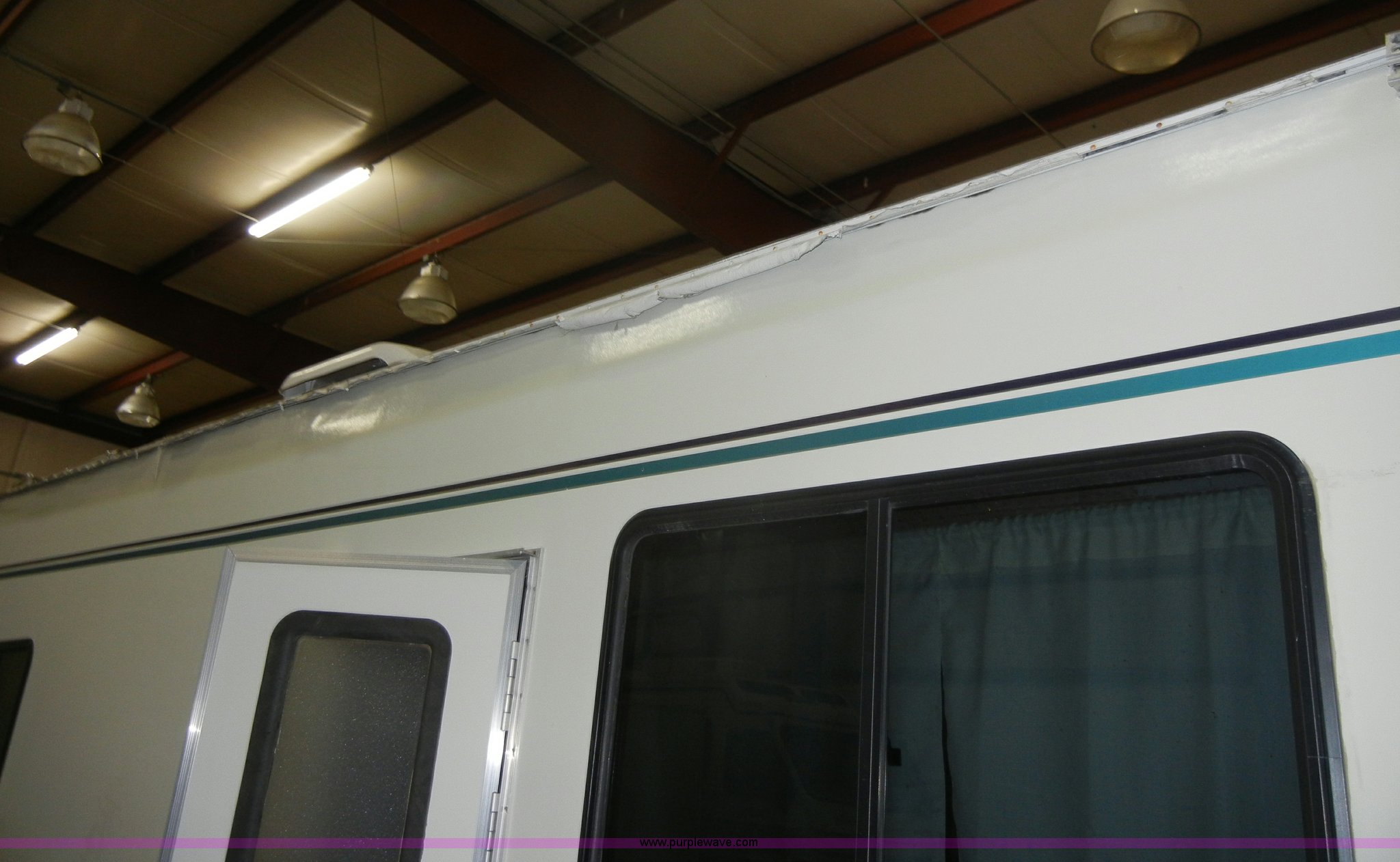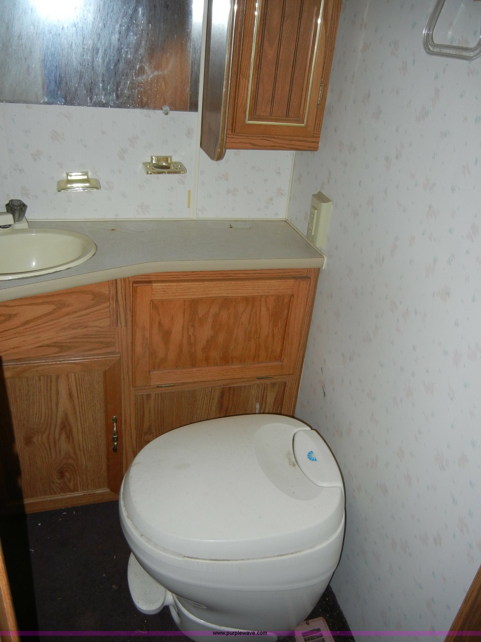 Purple Wave is selling a used RV in Kansas. This item is a 1994 Ford Shasta E350 RV with the following: 105,244 miles on odometer, 460 7.5L V8 gas engine, Automatic transmission, AC and heat, Tilt, Cruise, AM/FM/CD, Manual windows and locks, Cloth interior, (2) recliners, Table with bench seats, Overhead storage, Sink, stove, microwave, fridge/freezer, Duo Therm Brisk air unit, Toilet, sink, shower, Rear bedroom, No bed or frame, Over cab sleep area, Water connection, Bug shield, Receiver hitch, Trailer wiring, 225/75R16 tires, ABS and engine lights on, Interior/exterior cosmetic damage