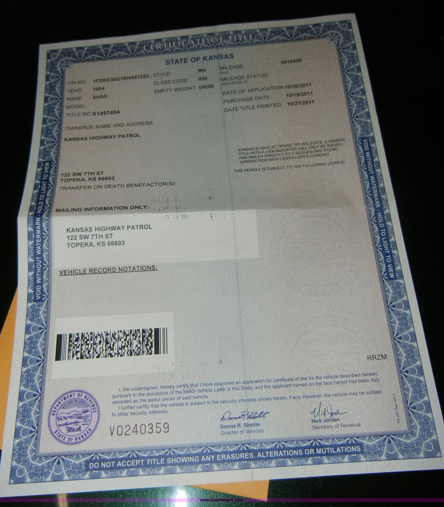 Please review KHP Disclaimer. Vehicle will be transferred with Kansas highway title.