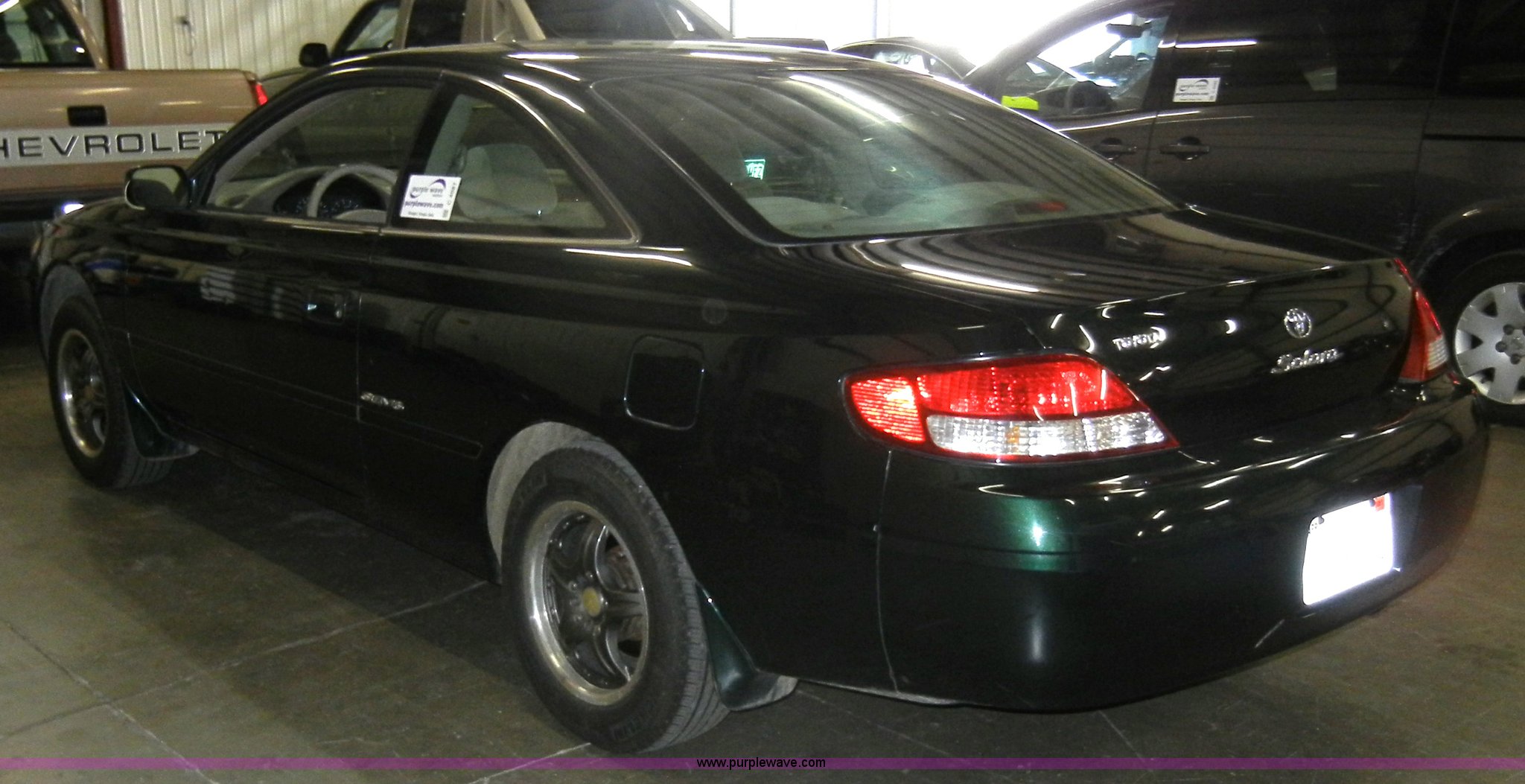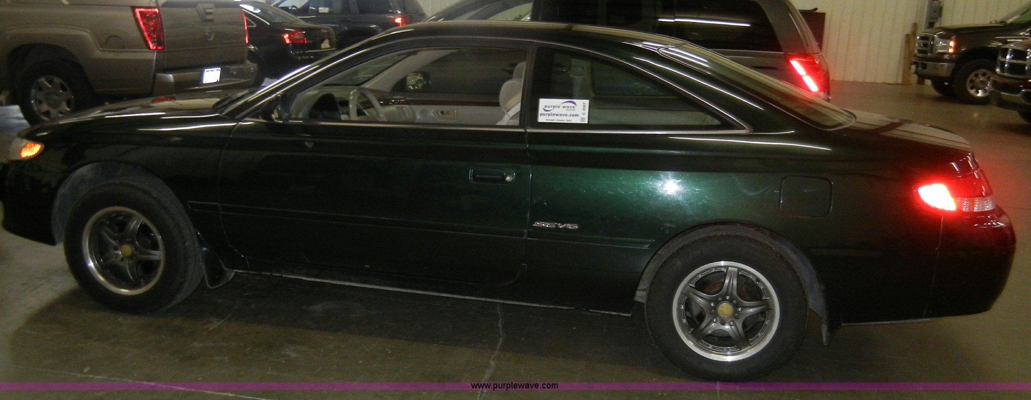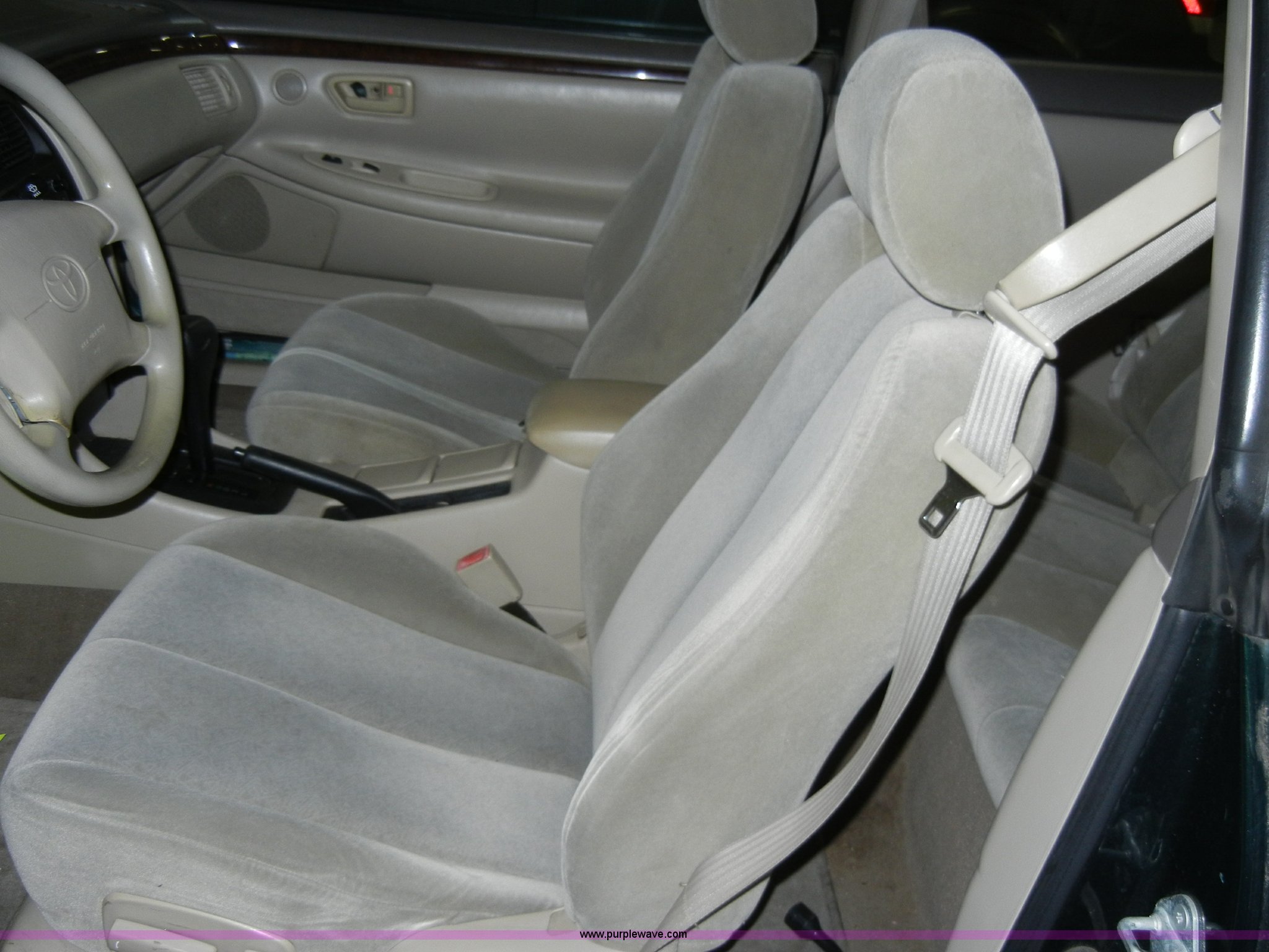 Purple Wave is selling a used Passenger Vehicle in Kansas. This item is a 1999 Toyota Solara SE Non-repairable certificate, parts only with the following: 146,994 miles on odometer, 3.0L V6 EFI engine, Automatic transmission, AC and heat, Tilt, Cruise, AM/FM/Cassette, Power windows, locks, mirrors, and seats, Cloth interior, 205/65R15 tires, Interior/exterior cosmetic damage, Dead battery