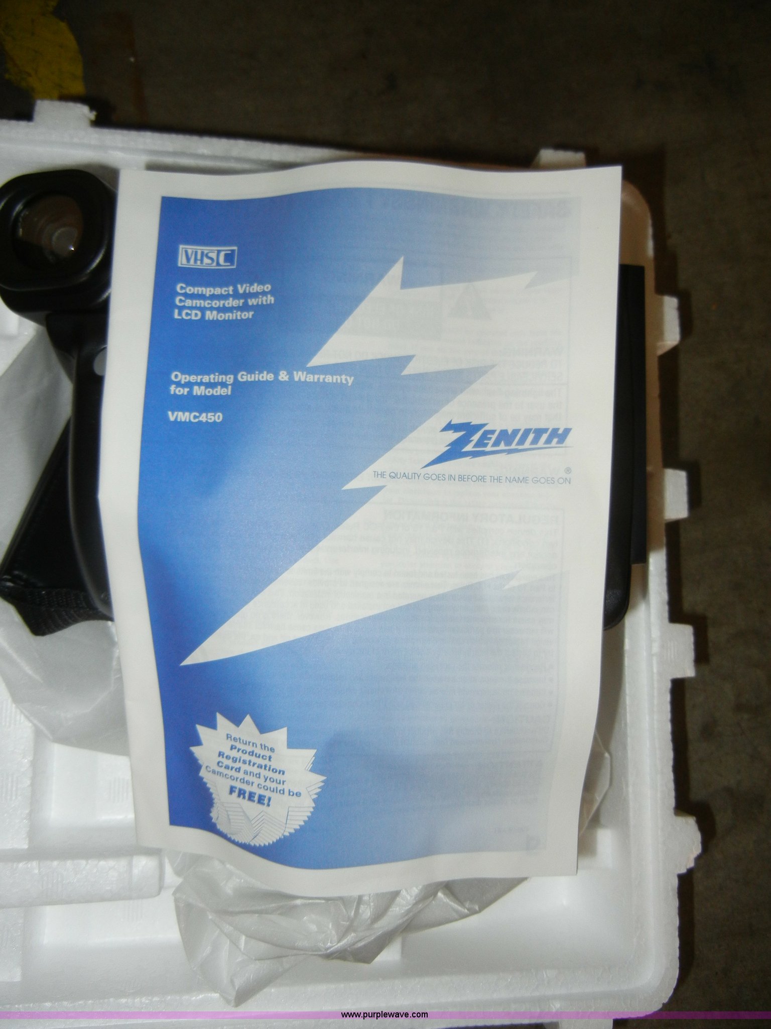 Zenith VMC450 VHS camcorder has sold in Topeka, Kansas for $93.50. Item S9375 sold on March 20th, 2012.