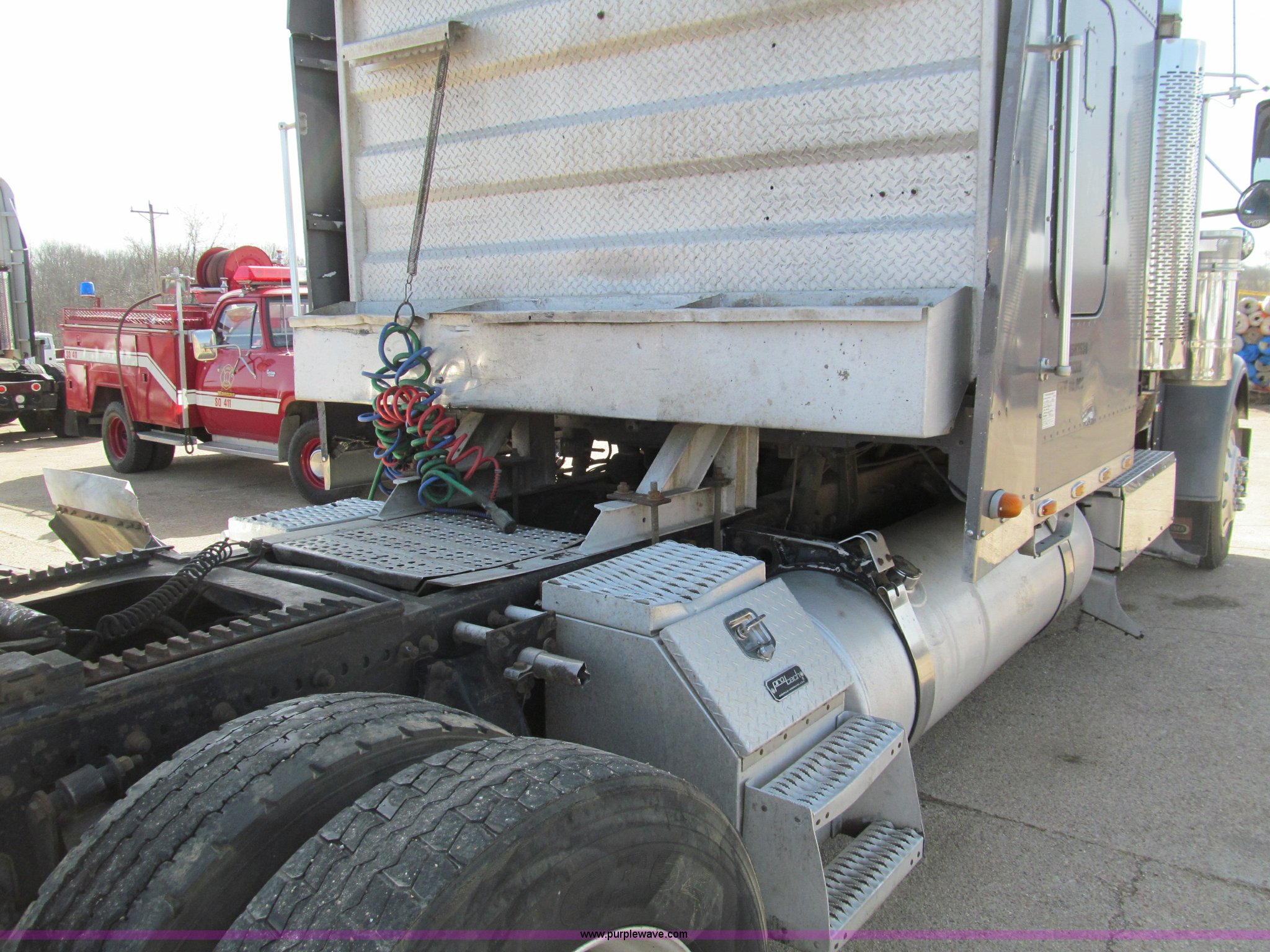 Purple Wave is selling a used Truck Tractor in Missouri. This item is a 2000 Freightliner FLD120 Classic XL semi truck with the following: 237,785 miles on odometer, Detroit Series 60 12.7L diesel engine, Eaton Fuller 13 speed manual transmission, Twin screw, AC and heat, Tilt, AM/FM/CD, Air ride seat, Power windows, High Top 60" sleeper, Dual bunks, Storage, Side and front windows, Exterior visor, Bumper, Block heater, (2) 140 gallon fuel tanks, Dual exhaust stacks, Aluminum deck plate, (2) aluminum step battery boxes, (2) aluminum side mount toolboxes, (2) chrome air breathers, Air suspension, Air brakes, Jake brake, GVWR 52,000 lbs, FAWR 12,000 lbs, IAWR 20,000 lbs, RAWR 20,000 lbs