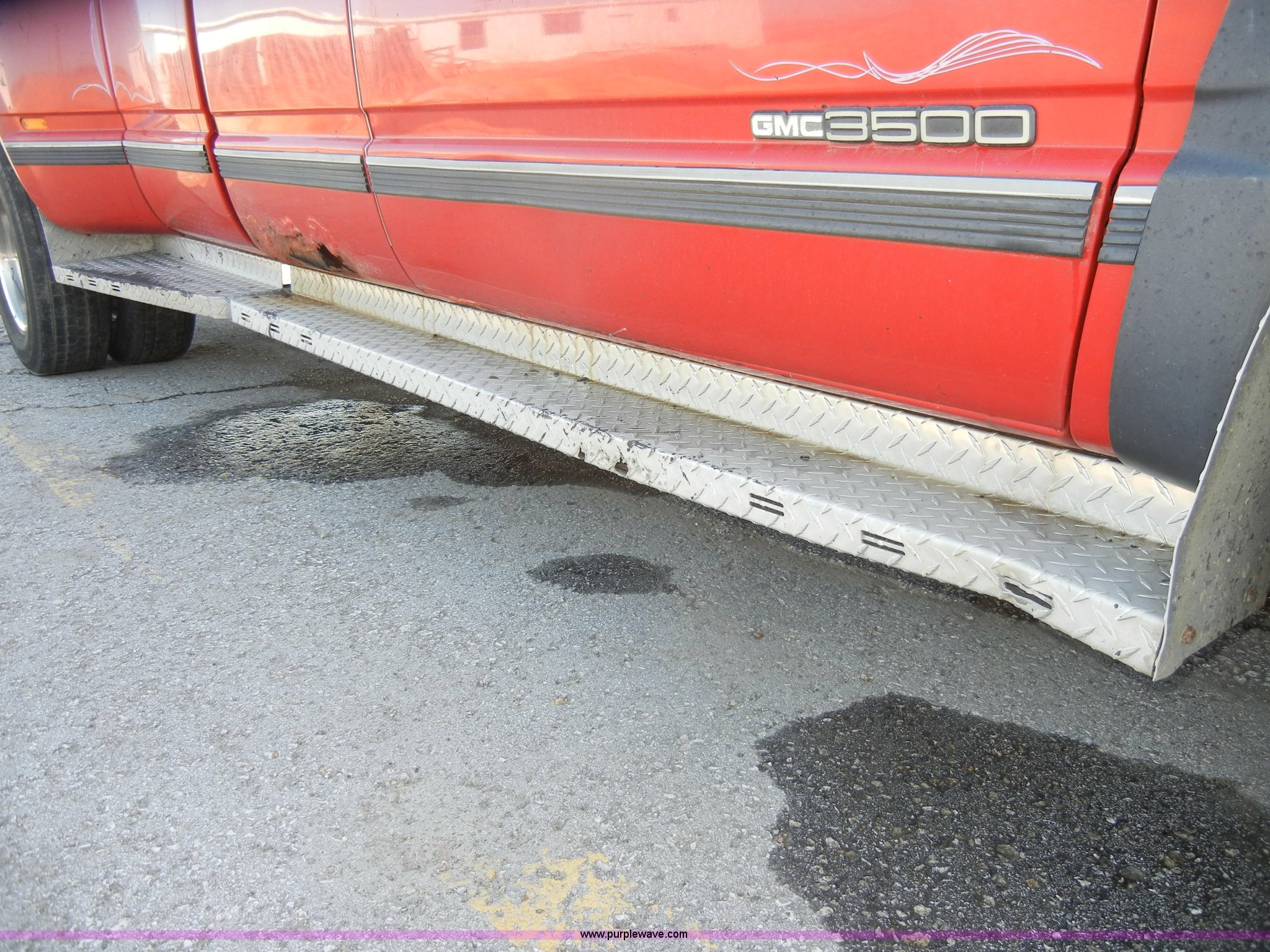 Purple Wave is selling a used Passenger Vehicle in Kansas. This item is a 1994 GMC Sierra K3500 SLE extended cab pickup truck with the following: 239,948 miles on odometer, 6.5L V8 FI diesel engine, Automatic transmission, Four wheel drive, AC and heat, Tilt, Cruise, AM/FM, Power windows and locks, Cloth interior, Front tow hooks, Running boards, Block heater, Gooseneck ball, Receiver hitch, 225/75R16 tires, Interior/exterior cosmetic damage, Body rust, Power steering leaks