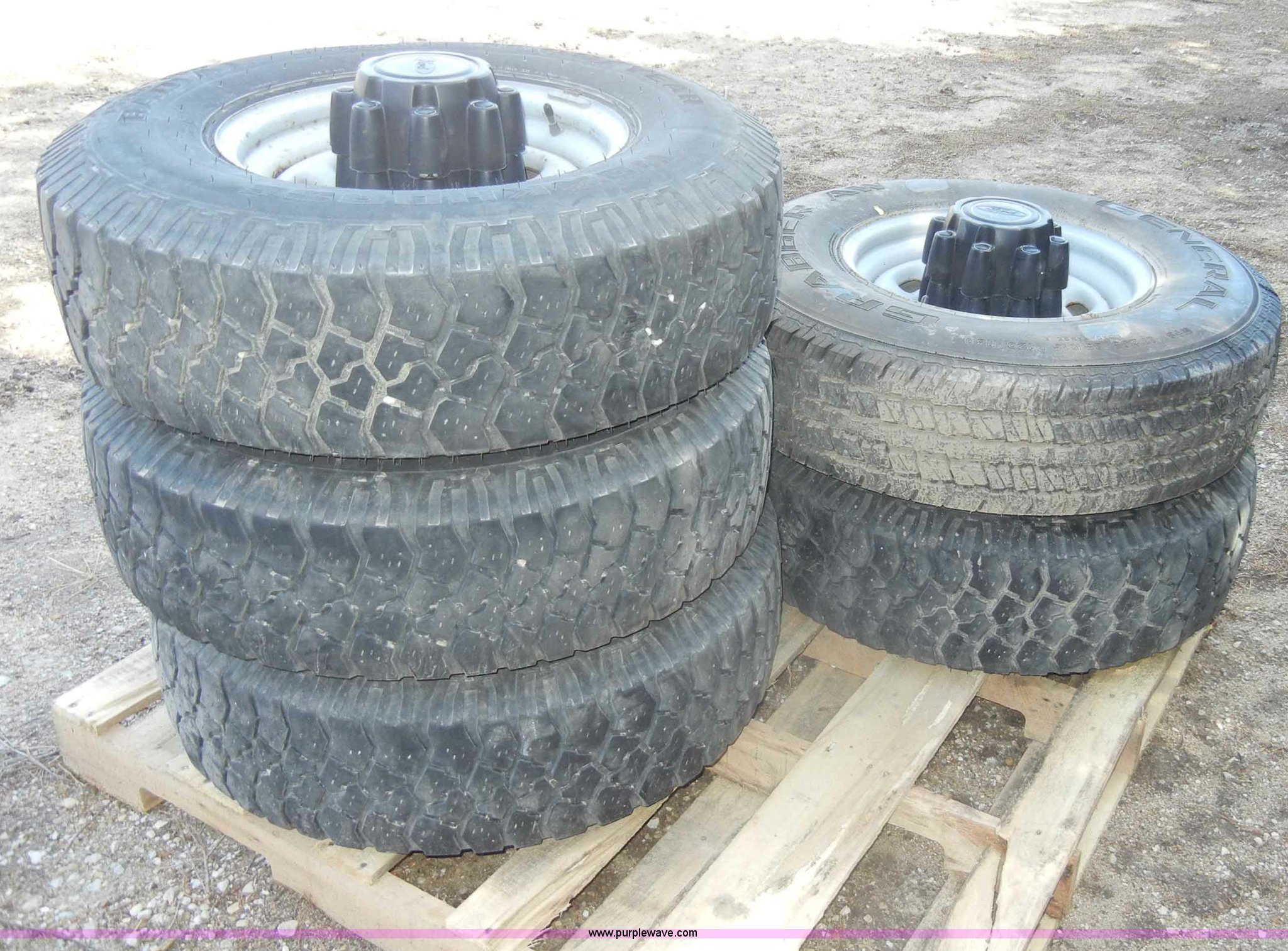Purple Wave is selling a used Automotive Parts or Acces. in Kansas. This item is a (5) used 16" tires with rims and caps with the following: General, (4) Goodyear, 8-bolt rims, Removed from 2000 Ford pickup